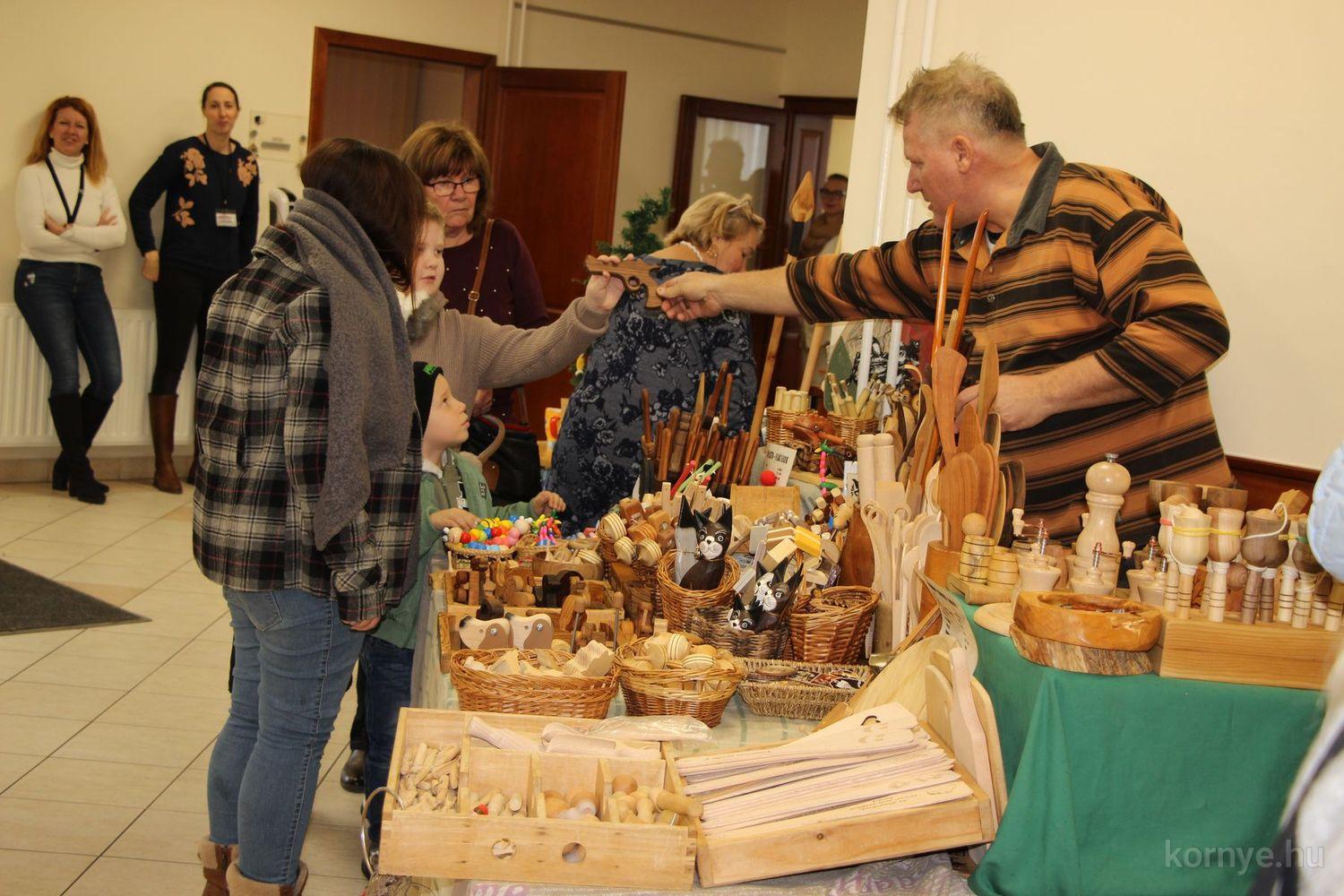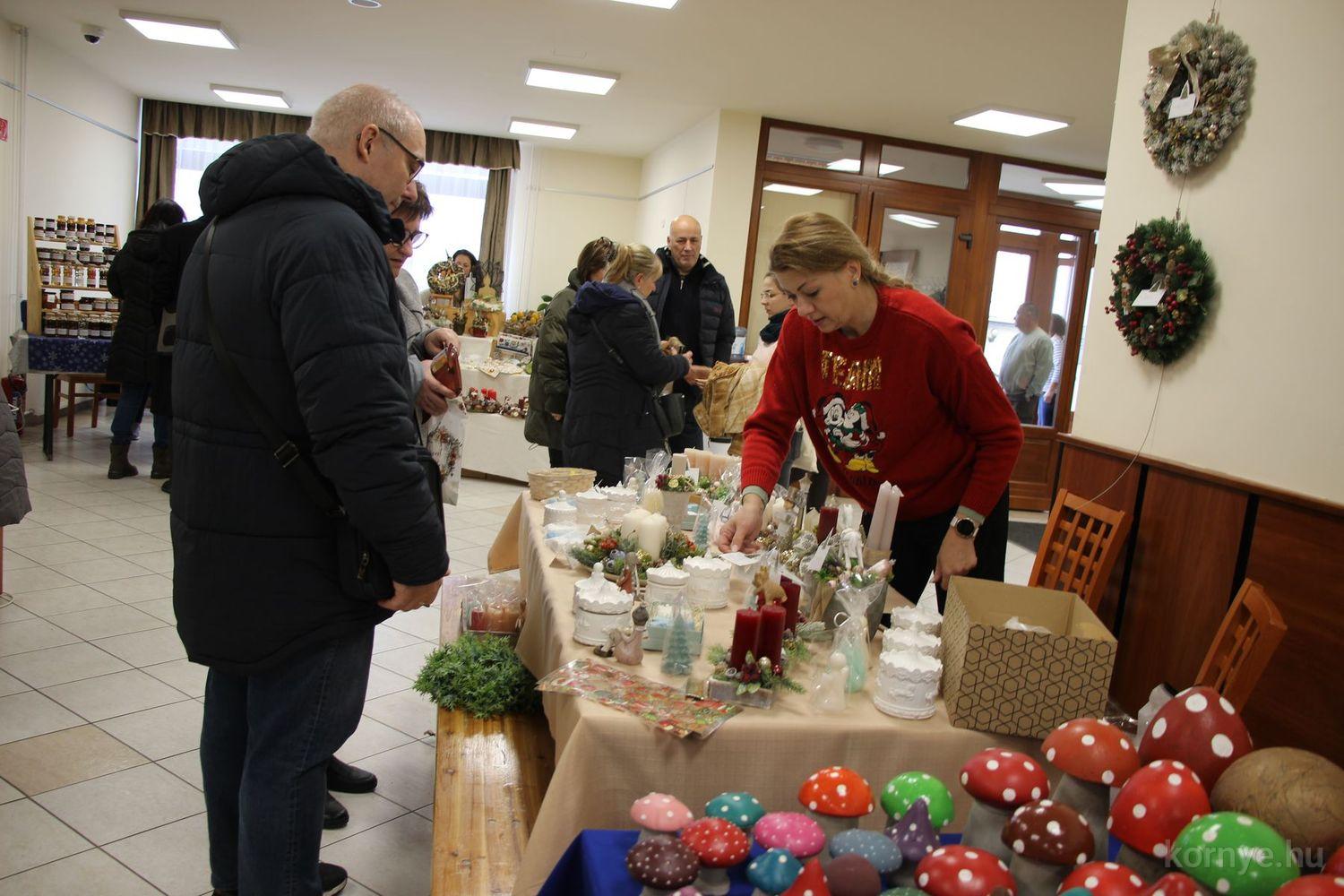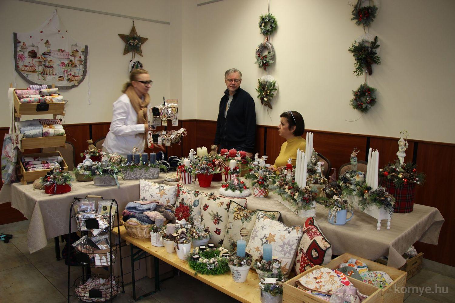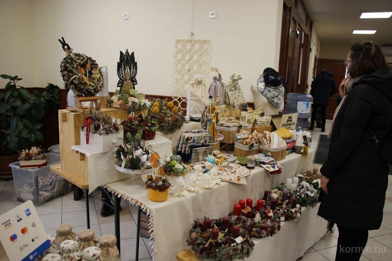 A kézművesek, őstermelők gazdag kínálatának köszönhetően egész nap válogathattak az érdeklődők a textiltermékek, párnák, táskák, díszek, különböző technikákkal készült angyalkák, karácsonyi asztali díszek, koszorúk, csuhé és horgolt termékek, méz, lekvár és chili különlegességek, szója illatviaszok, függődíszek, ásványból, gyöngyből készített ékszerek, betondísztárgyak, népi fajátékok között, s az is megtalálta a kedvére valót, aki házi sajtra, ízletes dióra vágyott. Idén már második alkalommal „kellették magukat” a környei Kovászkuckó ízletes pékárui, s olyan sikerrel, hogy a nap végére majdnem 120 péksütemény (perec, kifli, kalács, kuglóf, pannetone) és nagyjából száz kenyér lelt gazdára, miközben a parkolóban is sorra készültek a faszénen az ínycsiklandó Erdélyi-Gyergyóditrói Kürtőskalácsok.