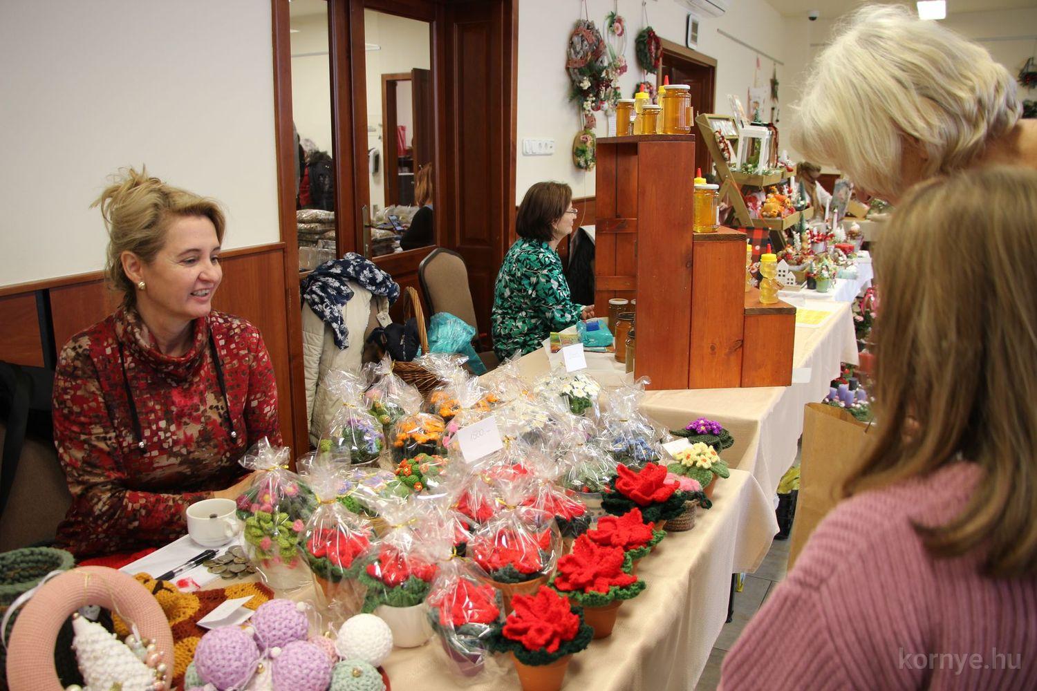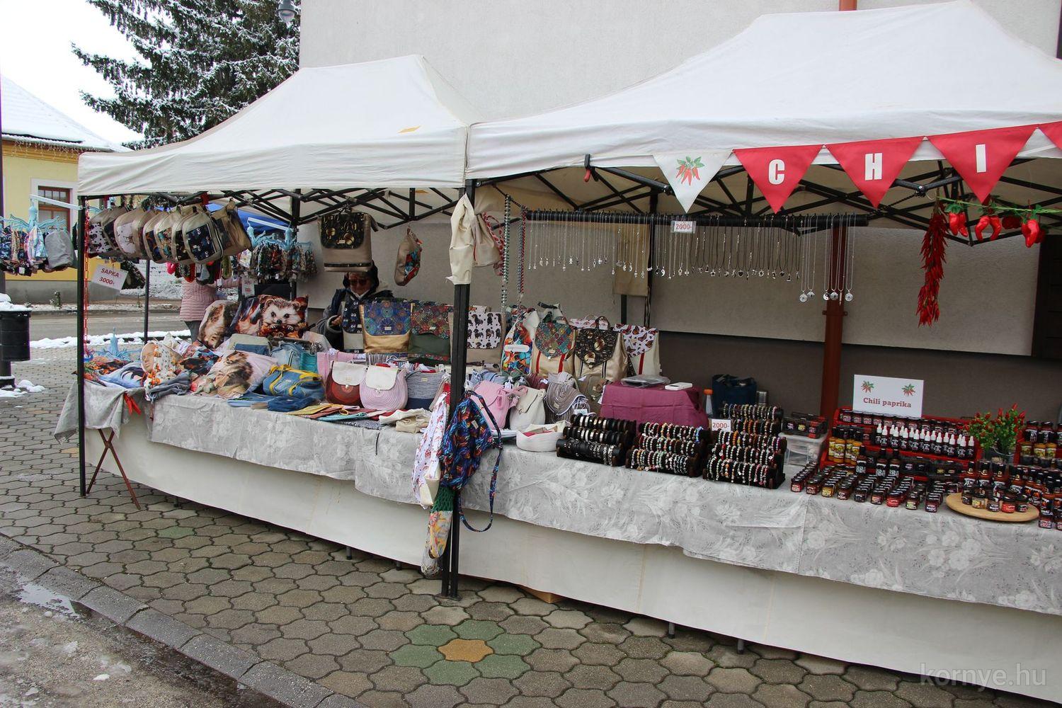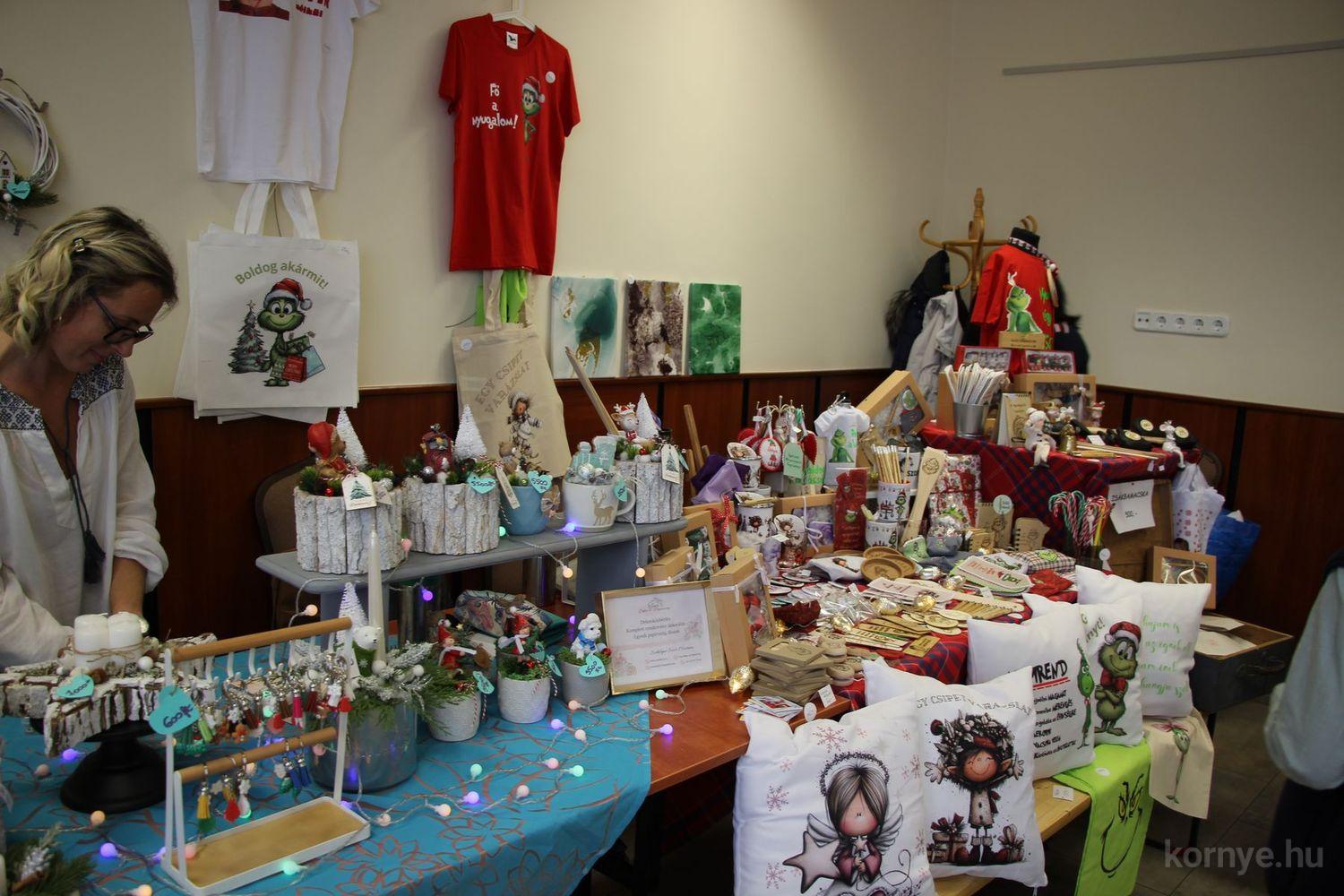 A kézművesek, őstermelők gazdag kínálatának köszönhetően egész nap válogathattak az érdeklődők a textiltermékek, párnák, táskák, díszek, különböző technikákkal készült angyalkák, karácsonyi asztali díszek, koszorúk, csuhé és horgolt termékek, méz, lekvár és chili különlegességek, szója illatviaszok, függődíszek, ásványból, gyöngyből készített ékszerek, betondísztárgyak, népi fajátékok között, s az is megtalálta a kedvére valót, aki házi sajtra, ízletes dióra vágyott. Idén már második alkalommal „kellették magukat” a környei Kovászkuckó ízletes pékárui, s olyan sikerrel, hogy a nap végére majdnem 120 péksütemény (perec, kifli, kalács, kuglóf, pannetone) és nagyjából száz kenyér lelt gazdára, miközben a parkolóban is sorra készültek a faszénen az ínycsiklandó Erdélyi-Gyergyóditrói Kürtőskalácsok.