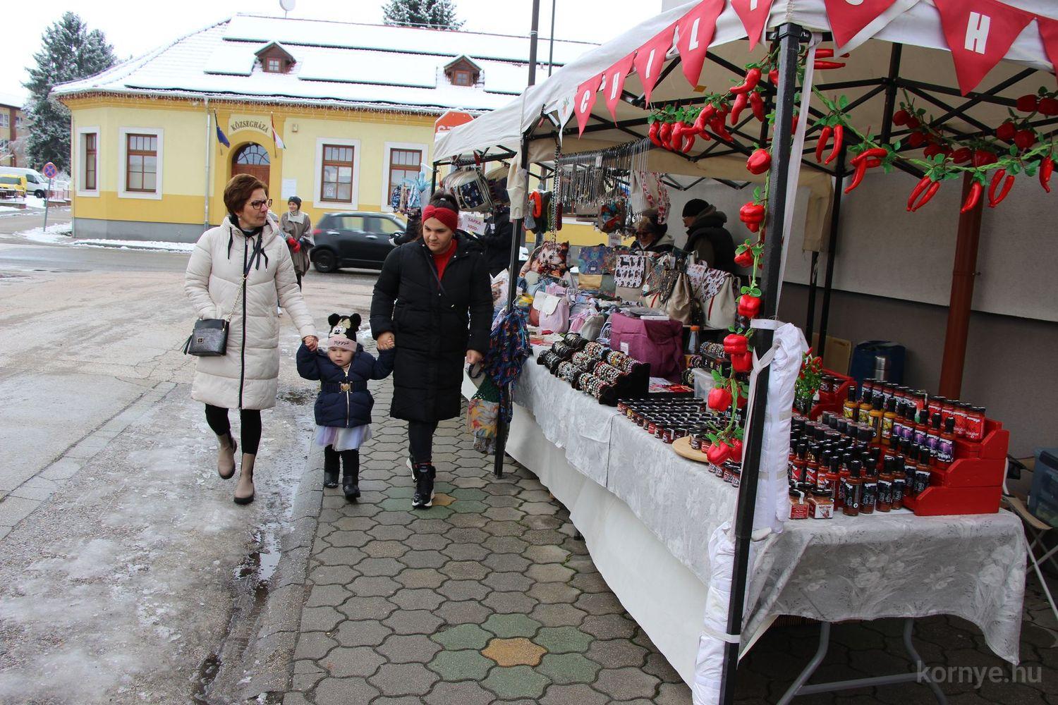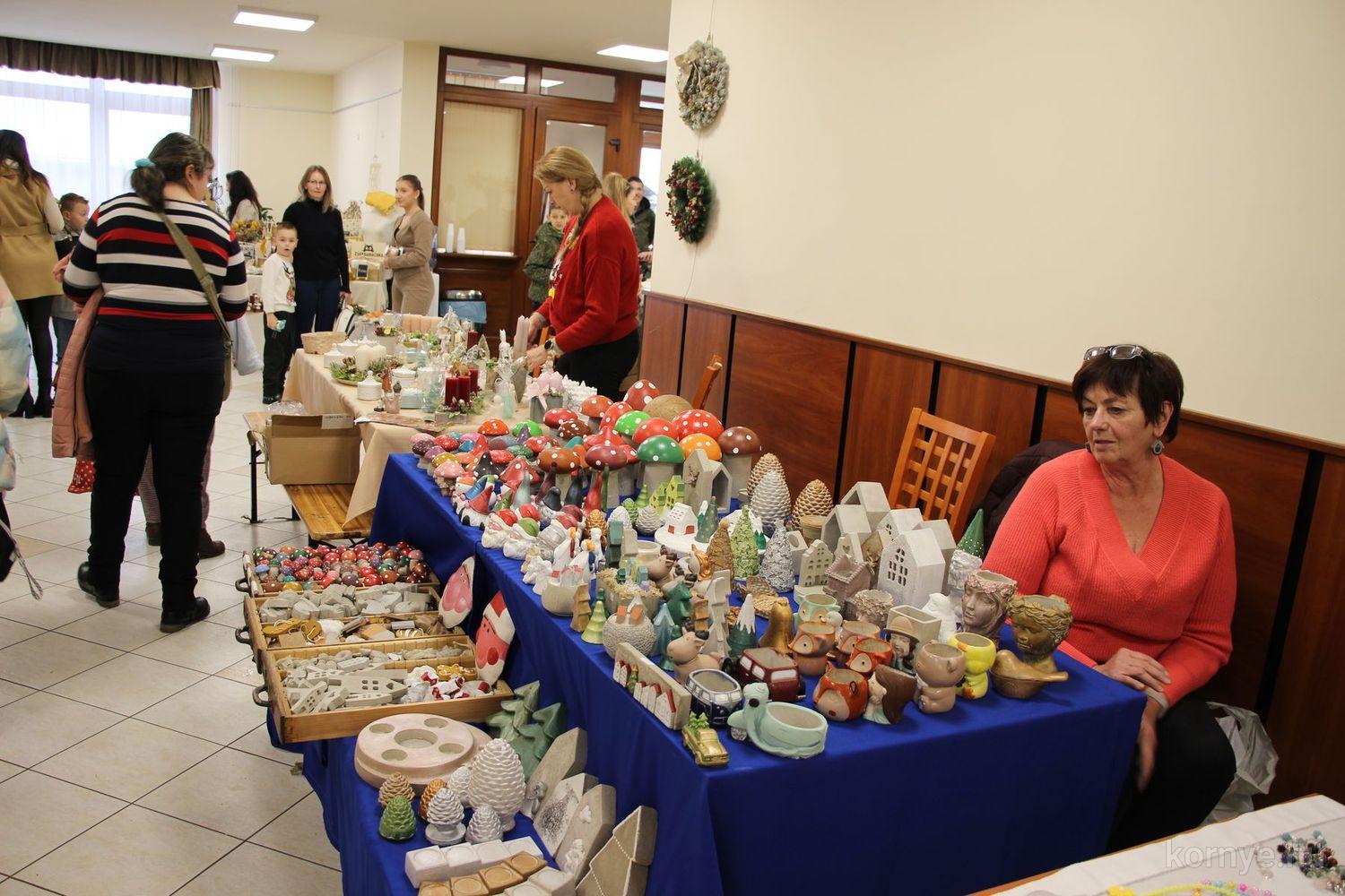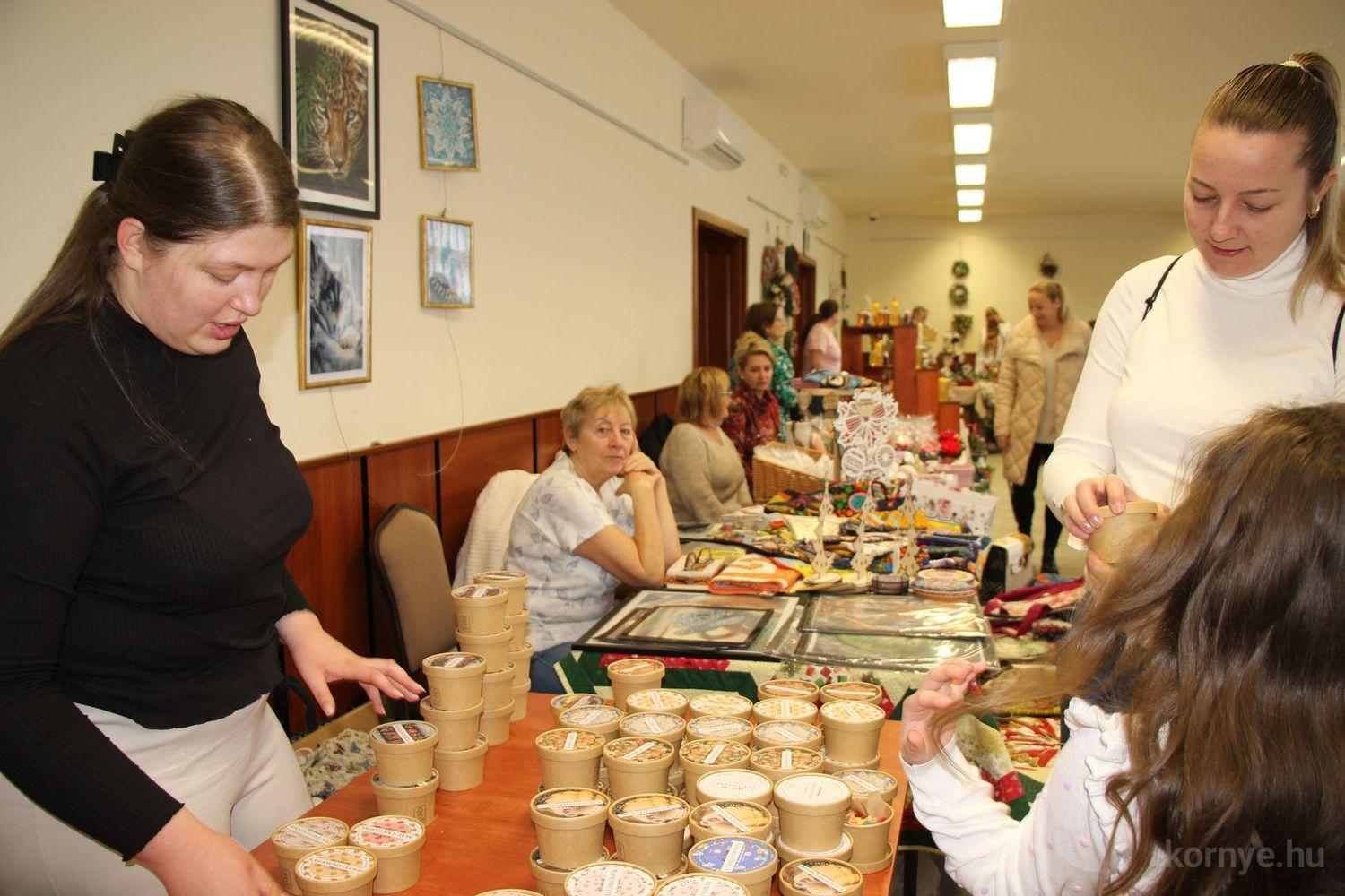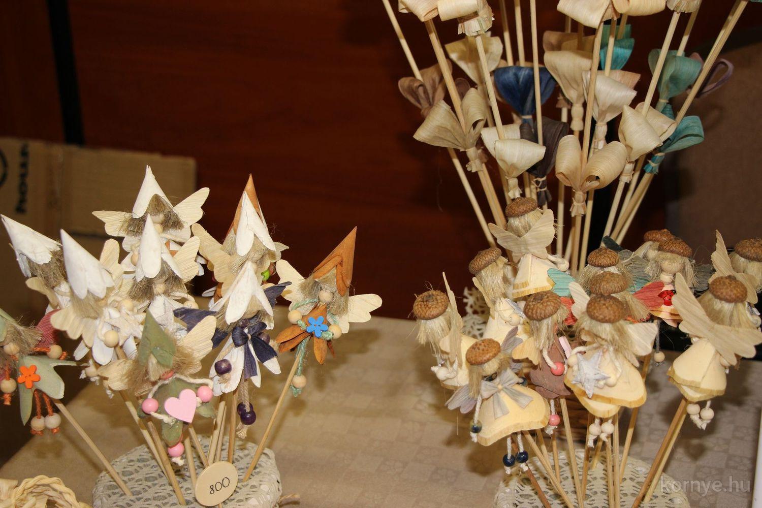 A kézművesek, őstermelők gazdag kínálatának köszönhetően egész nap válogathattak az érdeklődők a textiltermékek, párnák, táskák, díszek, különböző technikákkal készült angyalkák, karácsonyi asztali díszek, koszorúk, csuhé és horgolt termékek, méz, lekvár és chili különlegességek, szója illatviaszok, függődíszek, ásványból, gyöngyből készített ékszerek, betondísztárgyak, népi fajátékok között, s az is megtalálta a kedvére valót, aki házi sajtra, ízletes dióra vágyott. Idén már második alkalommal „kellették magukat” a környei Kovászkuckó ízletes pékárui, s olyan sikerrel, hogy a nap végére majdnem 120 péksütemény (perec, kifli, kalács, kuglóf, pannetone) és nagyjából száz kenyér lelt gazdára, miközben a parkolóban is sorra készültek a faszénen az ínycsiklandó Erdélyi-Gyergyóditrói Kürtőskalácsok.