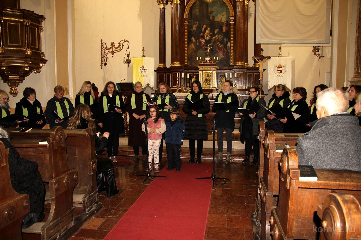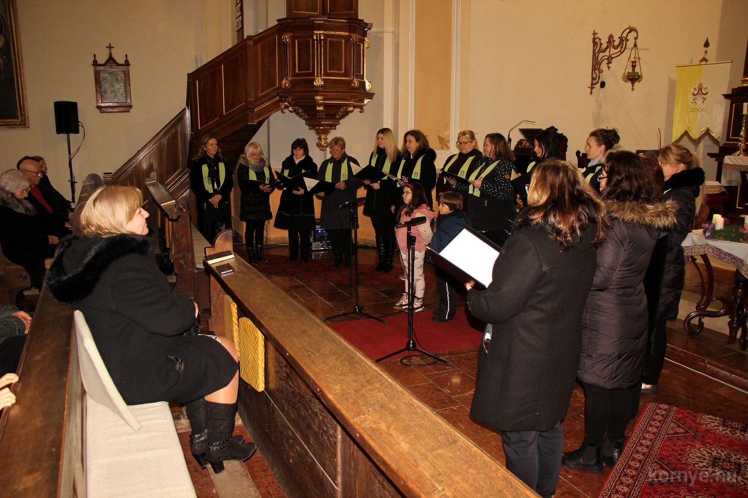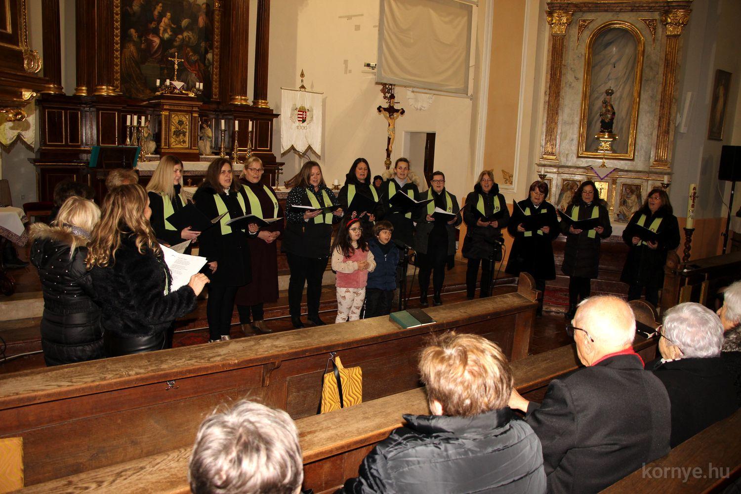 A folytatásban Saltzer Géza művészeti vezető fuvolajátékával kísért dalokkal érkezett a Német Nemzetiségi Dalkör, majd a Római Katolikus Plébánia Kórusa színezte tovább Advent csendes, békés hangulatát. Az együttes 2018-ban alakult azzal a céllal, hogy énekükkel emelkedettebbé tegyék az egyházi ünnepeket. Az azóta eltelt években számos helyi és környékbeli rendezvényen léptek fel. A kórust Cseh-Molnár Johanna és dr. Molnár András irányítja.