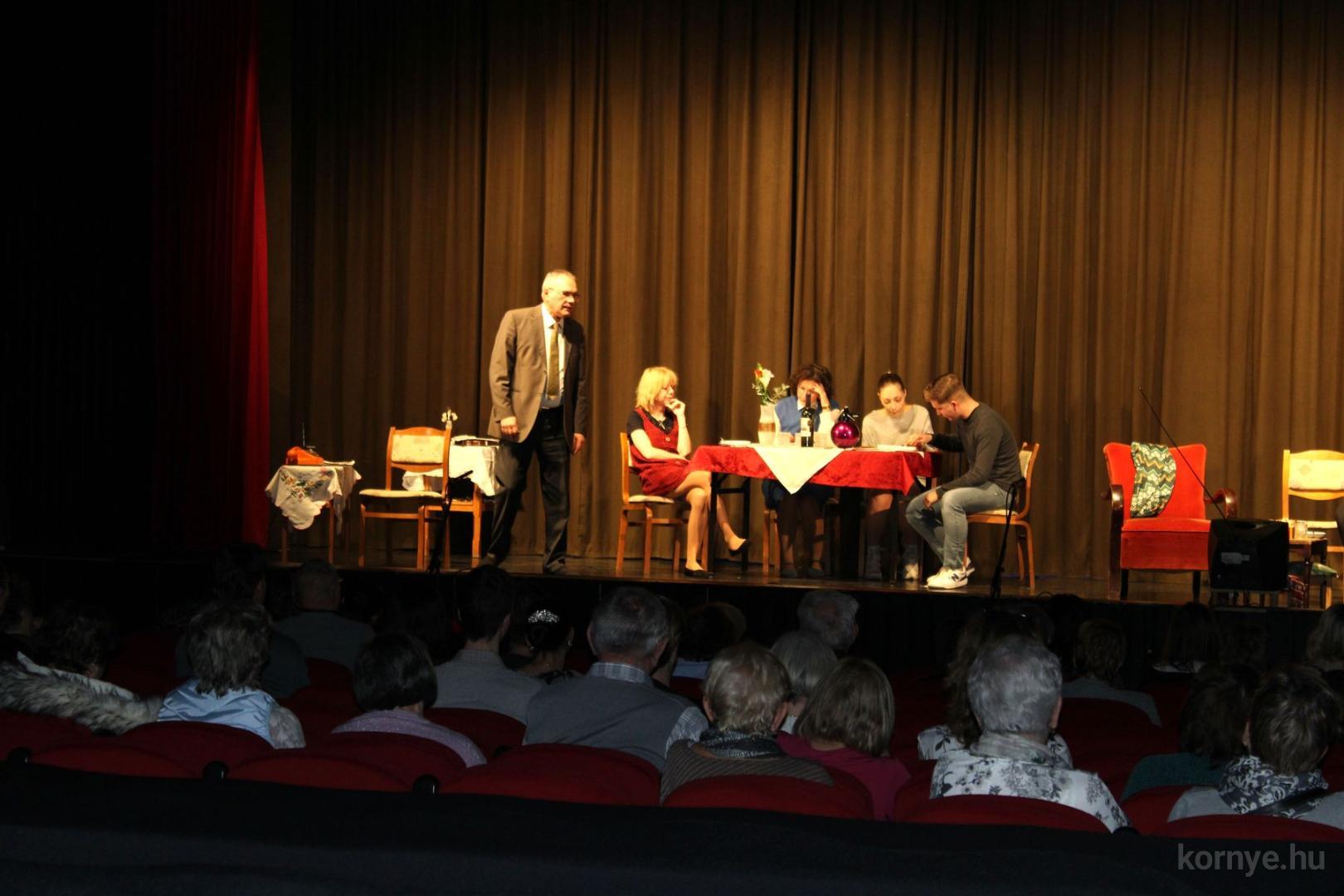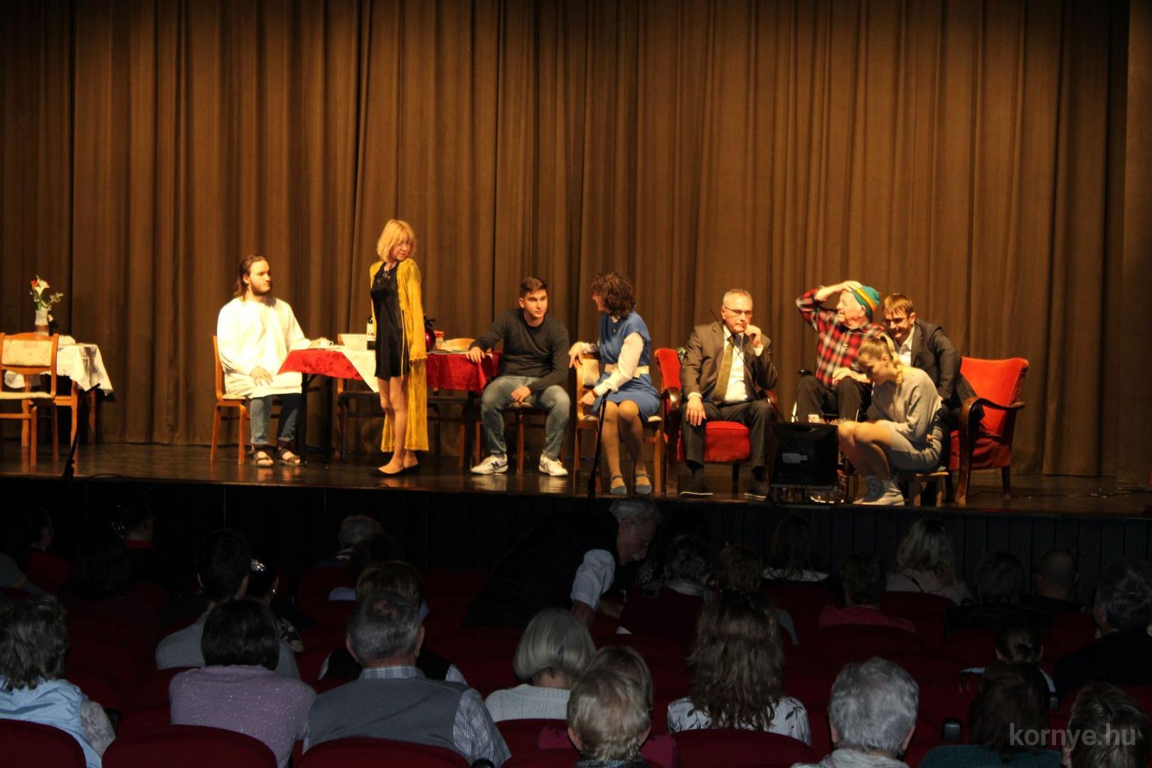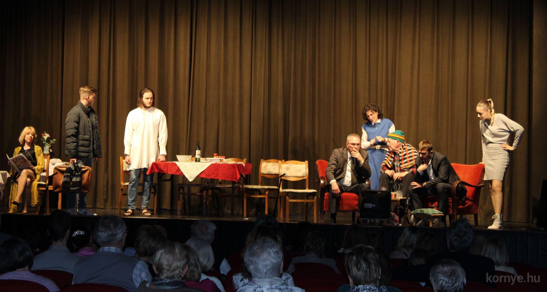 Ez a darab 1969-ben keletkezett, és azóta szinte valamennyi színház színpadát, sőt Európa jó néhány színpadát is megjárta. Merthogy nagyon aktuális. Műfaját Szakonyi Károly komédiának határozta meg, de én úgy gondolom, hogy inkább tragikomédia. Mert – meg fogják látni – bosszantóan nevetséges, ahogyan az emberek viselkednek a színpadon, és tragédia is, hiszen nagyon-nagyon a valóságból vette a helyzeteket, a figurákat, a párbeszédeket. Tulajdonképpen minden jó dráma kérdez valamit. Szakonyi Károly nagyon is aktuális, és most, Advent időszakában különösen az. A szerző azt kérdi tőlünk, hogy tudunk-e egymásra igazán figyelni? Nem felszínesek-e még a legközelebbi kapcsolataink is? És vesszük-e Istennek a jelzéseit, tudunk-e arra is gondolni, arra is figyelni, vagy csak verjük a mellünket, hogy mi aztán igazán hiszünk. Azt hiszem, hogy az előadás után azért hazavisznek valamennyien egy kis elgondolkodni valót, hiszen önmagunkkal szembesít bennünket – köszöntötte a vendégeket Bognár Istvánné, majd a következő két órában a szereplők a Bódog családhoz kalauzolták a nézőt, de – az eseményeket látva – szinte bármely mai család otthonába bekopogtathattunk volna. A történet szerint Bódogék a legkisebb fiuk, Imrus születésnapját ünneplik, de valójában senkit sem érdekel maga az ünnepelt, édesapja még azzal sincs tisztában, hogy 18, vagy 19 éves? A család tagjai leginkább a televízió előtt ülnek, mindenki beszél, de senki sem figyel a másikra. A darab egyik kulcsfigurája egy különös albérlő, Emberfi, aki Krisztus-szerű „figura”: csodákat tesz, vízből bort csinál, meggyógyítja a béna szomszédot, Szűcs urat, de Imruson kívül senki sem figyel rá.