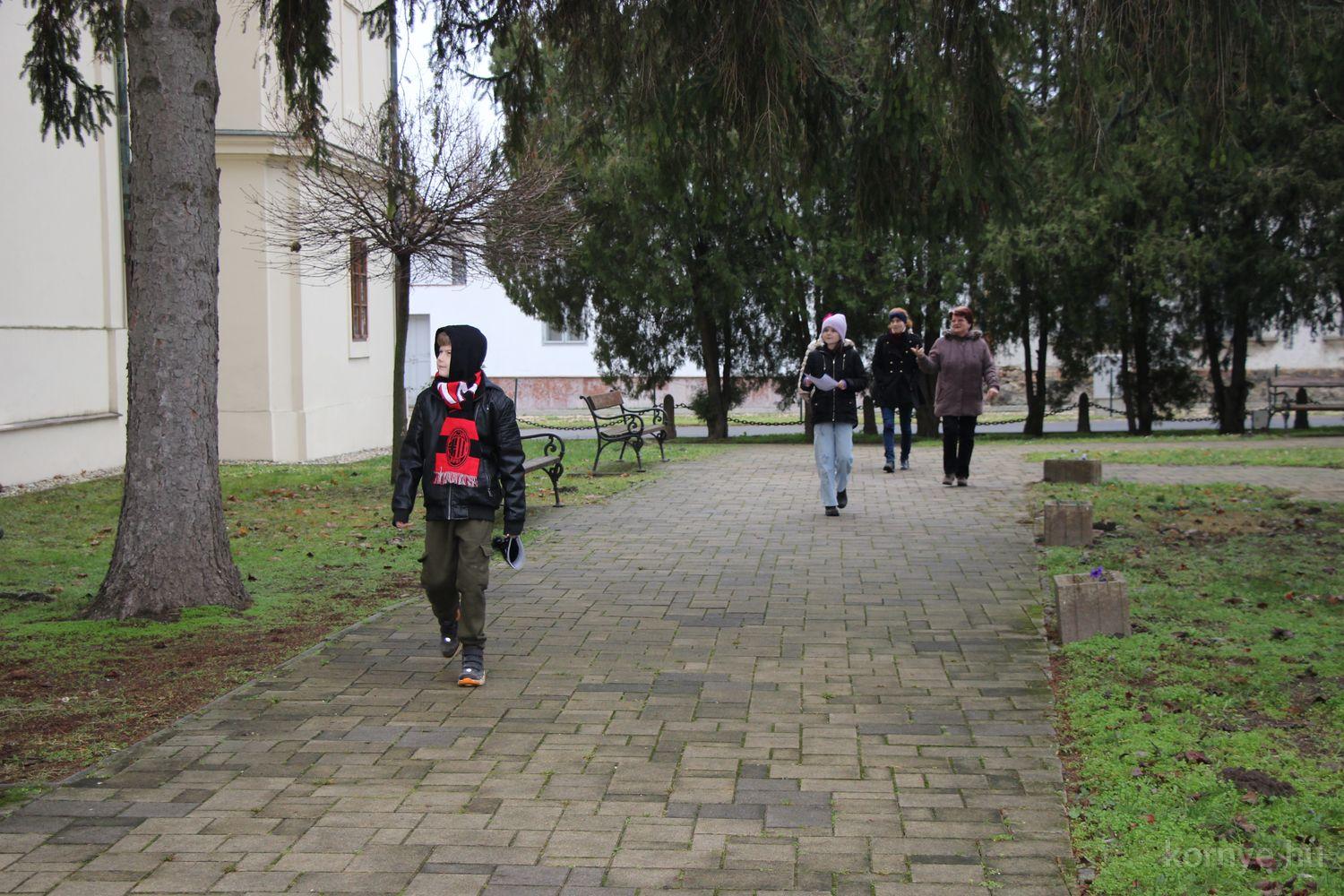 József Attila Betlehemi királyok versszakait kellett helyes sorrendbe tenni. Helyesen tudni, hogy miért tett meg a várandós Mária férjével Názáretből 150 km-t, hogy Betlehembe jusson. A helyes választ még a legkisebbek is jól tudták: mert népszámlálás volt. Egy tíz év körüli fiú azt is hozzátette: nehogy Jézust „kinyírják”. Fény derült Sisi és a karácsony kapcsolatára, ugyanis december 24-én született a királyné. Három eszperente találós kérdés után igazi logikai fejtörő várta a játékosokat. Az elkeveredett ajándékok feladatban néhány állítás segítségével kellett kibogozni, hogy ki, mit, kitől és milyen csomagolásban kapott karácsonyra. Nem feledkeztünk meg a karácsonyi süteményekről sem. A mákos bejgli receptjét biztosan minden háziasszony és ínyenc felismerte. A gyakori és jellegzetes decemberi névnapokat is érdemes volt tudni, hogy a betűrácsban elrejtett nevek kigyűjtése után megtalálják a kakukktojást, a márciusi Józsefet. A feladatok megoldásának kódolásához és így a cím megfejtéséhez az Április utcában várakozó „beépített emberünk” számzáras ládáját kellett kinyitni. Akinek ez sikerült, betűkké alakította a karácsonyi jeleket, s bátran indulhatott Ráczné Wiszt Vilmához és családjához, akik vállalták, hogy az összefagyott, megdermedt adventi gyertyakeresőket nagy szeretettel, finom süteményekkel, forró teával, forralt borral és adventi gyertyával várják, no meg a játékos házi kedvenccel, Milóval.