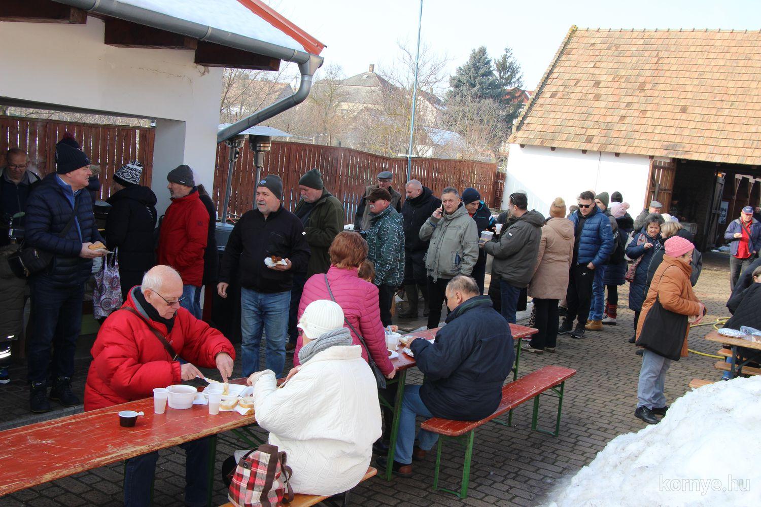 A hagyományőrző disznóvágás és finomságok hírére nem csupán helyből, de a szomszédos településekről, Tatabányáról, Oroszlányból, Vértessomlóról, Várgesztesről, Bokodról is érkeztek, többen rutinosan éthordókkal, tároló edényekkel, hiszen – mint mondták – így már „meg is főzték” a vasárnapi ízletes ebédet.