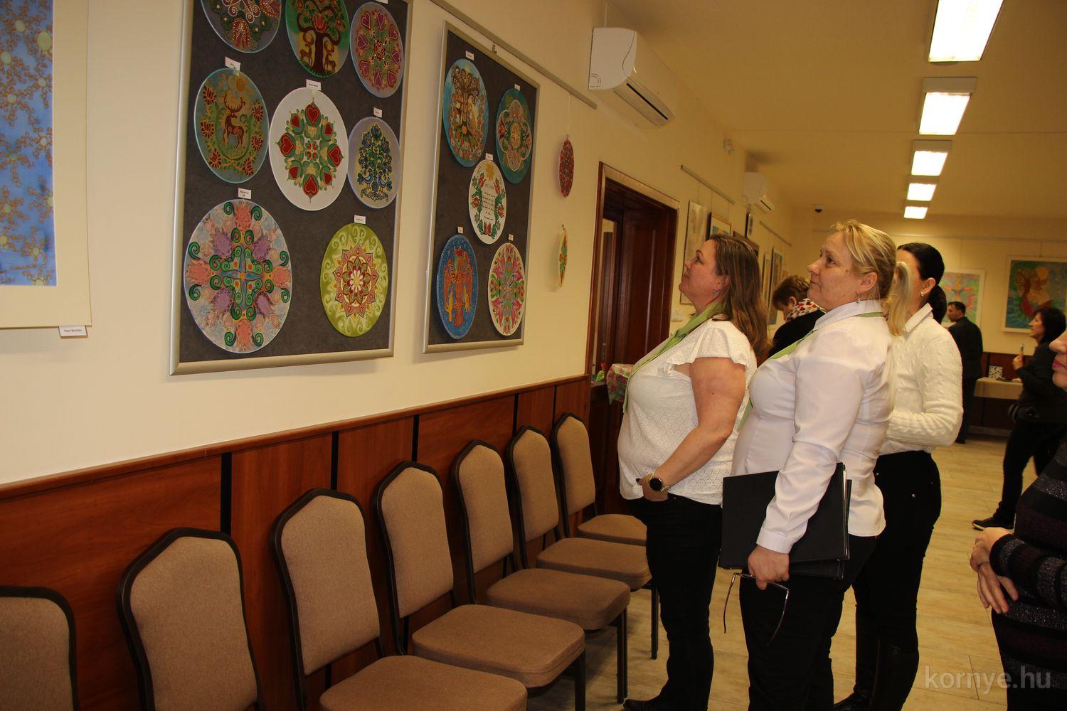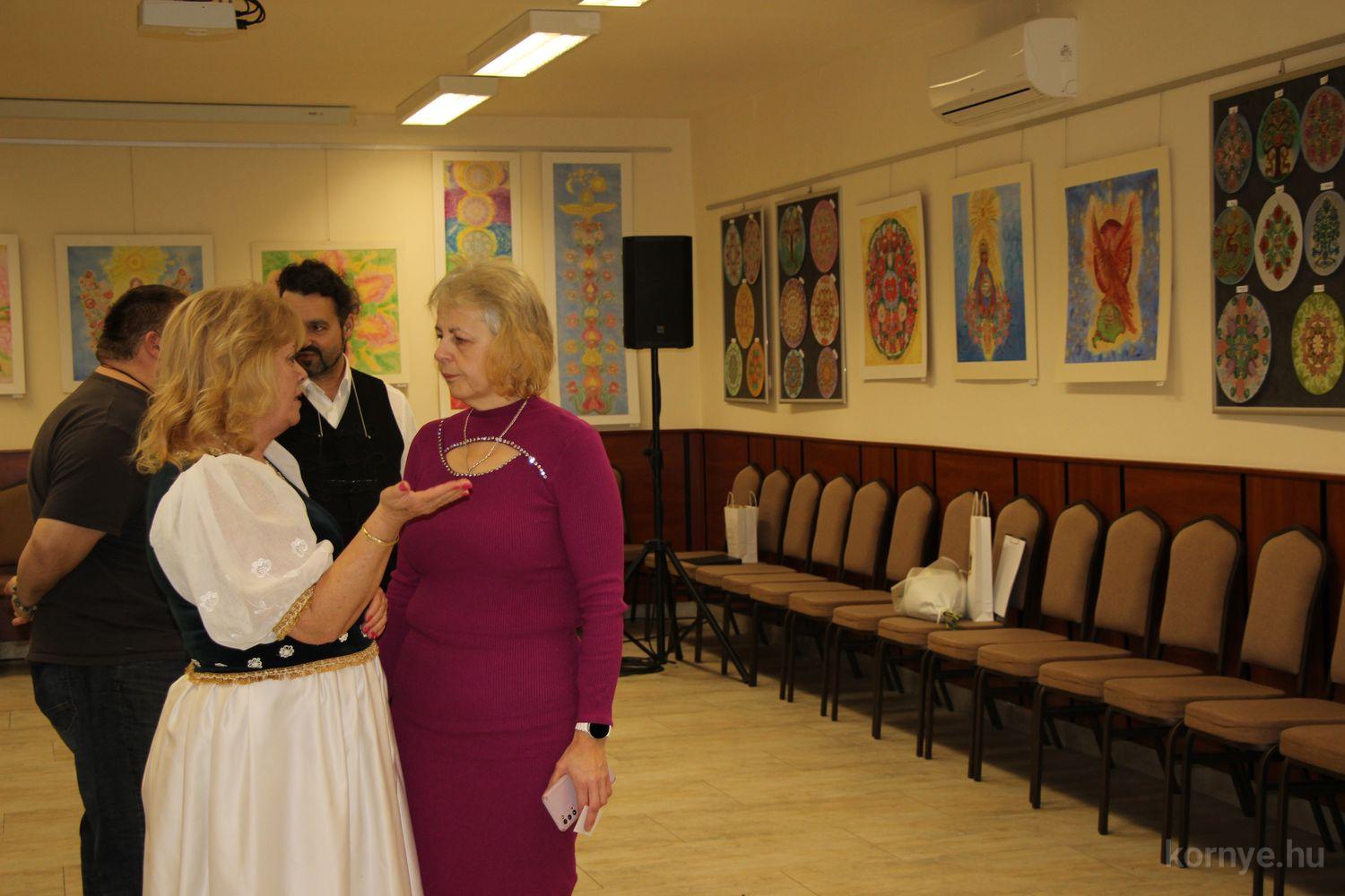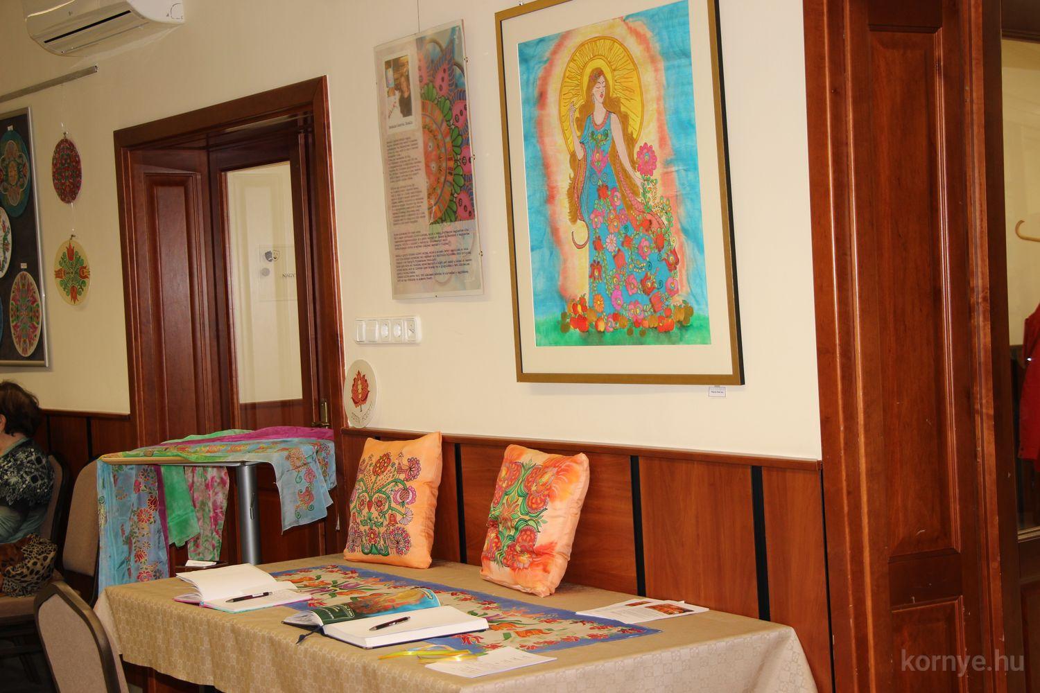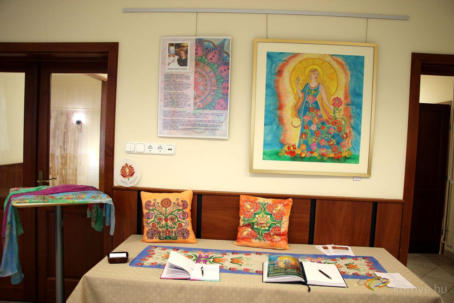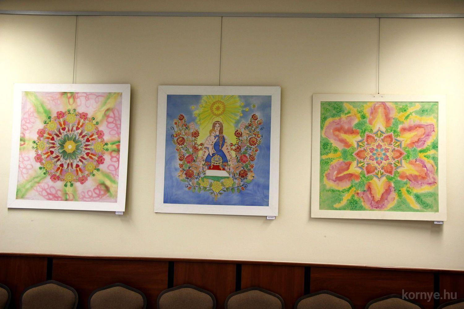 Lélekgyógyász és selyemfestő. Ez sok mindent elárul. A gyógyító és művészeti tevékenységet is, ami a selyemfestéseknek a megalkotása, legyen szó mandaláról, vagy képekről, amelyek valamit levetítenek, megjelenítenek, árasztanak az emberek felé. Ezekben gyógyító kódok vannak, de hogyan jut el odáig egy ember, hogy ilyeneket készítsen? – tette fel a kérdést az alkotásokat ajánló Szokolai Tibor, majd a választ így osztotta meg a jelenlévőkkel: a Kedvesemnek az 1990-es évek elején volt egy műtéti beavatkozást követő halál közeli élménye, amely során olyan szeretetet, olyan békét, olyan harmóniát tapasztalt meg, amit nem lehet szavakkal kifejezni. Akkor indult el ez a lélek állapotváltozás. Mindig is nagyon jó volt a kézügyessége, korábban mesterfodrászként versenyeket nyert, és elindult egy úton, a fény kiárasztásának az útján. Sokat képezte magát, reiki és agykontroll, angyal tanfolyamokat végzett, táltos iskolába járt, mindezeket azért, hogy a szívét, a lelkét felkészítve még magasabb tudással, még nagyobb alázattal és szeretettel áraszthassa a fényt, Isten fényét. Ezek az alkotások, amelyek 2012-től születtek, az egyediségük, a színviláguk, az ősképek, az őskódok által olyan erővel bírnak, amit szavakkal nem lehet kifejezni, de ha odaáll az ember egy kép elé, akkor megszólítja őt, és áthatja a szívét, a lelkét.