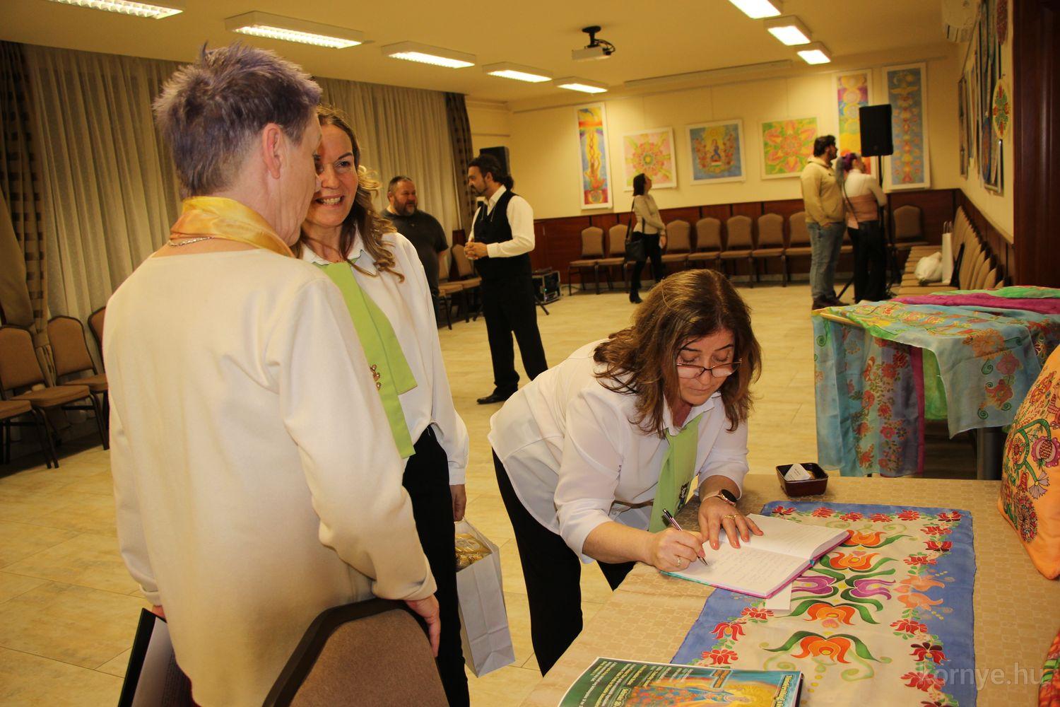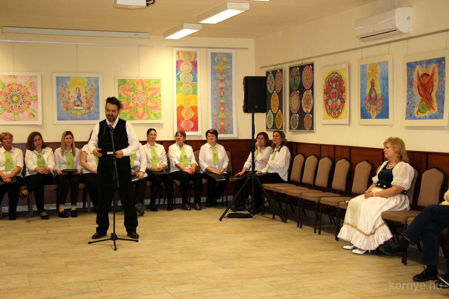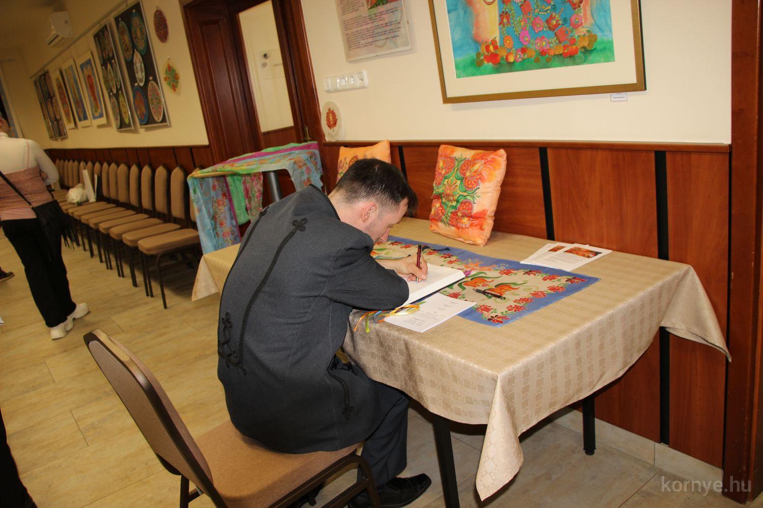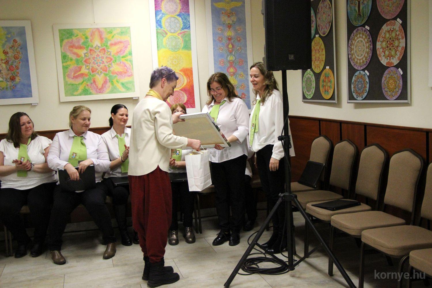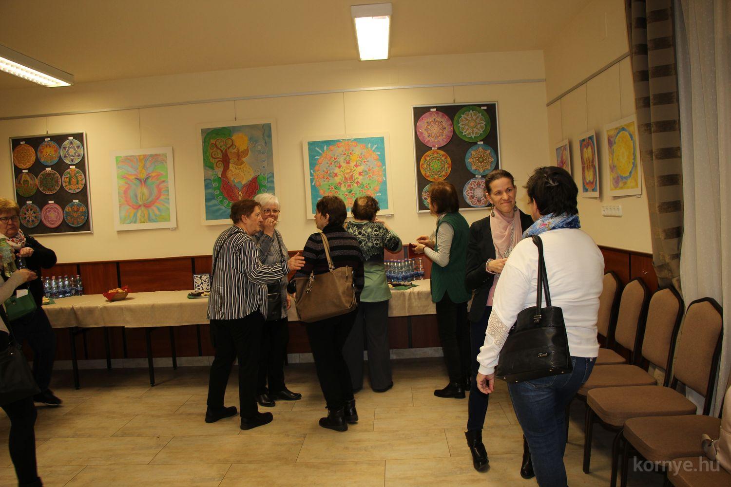 Lélekgyógyász és selyemfestő. Ez sok mindent elárul. A gyógyító és művészeti tevékenységet is, ami a selyemfestéseknek a megalkotása, legyen szó mandaláról, vagy képekről, amelyek valamit levetítenek, megjelenítenek, árasztanak az emberek felé. Ezekben gyógyító kódok vannak, de hogyan jut el odáig egy ember, hogy ilyeneket készítsen? – tette fel a kérdést az alkotásokat ajánló Szokolai Tibor, majd a választ így osztotta meg a jelenlévőkkel: a Kedvesemnek az 1990-es évek elején volt egy műtéti beavatkozást követő halál közeli élménye, amely során olyan szeretetet, olyan békét, olyan harmóniát tapasztalt meg, amit nem lehet szavakkal kifejezni. Akkor indult el ez a lélek állapotváltozás. Mindig is nagyon jó volt a kézügyessége, korábban mesterfodrászként versenyeket nyert, és elindult egy úton, a fény kiárasztásának az útján. Sokat képezte magát, reiki és agykontroll, angyal tanfolyamokat végzett, táltos iskolába járt, mindezeket azért, hogy a szívét, a lelkét felkészítve még magasabb tudással, még nagyobb alázattal és szeretettel áraszthassa a fényt, Isten fényét. Ezek az alkotások, amelyek 2012-től születtek, az egyediségük, a színviláguk, az ősképek, az őskódok által olyan erővel bírnak, amit szavakkal nem lehet kifejezni, de ha odaáll az ember egy kép elé, akkor megszólítja őt, és áthatja a szívét, a lelkét.
