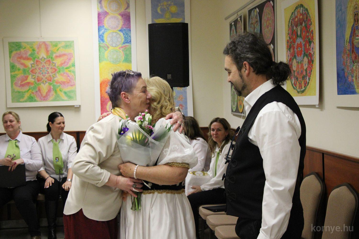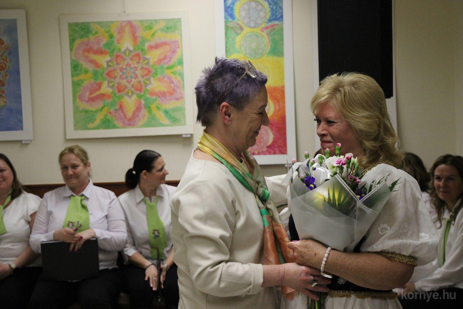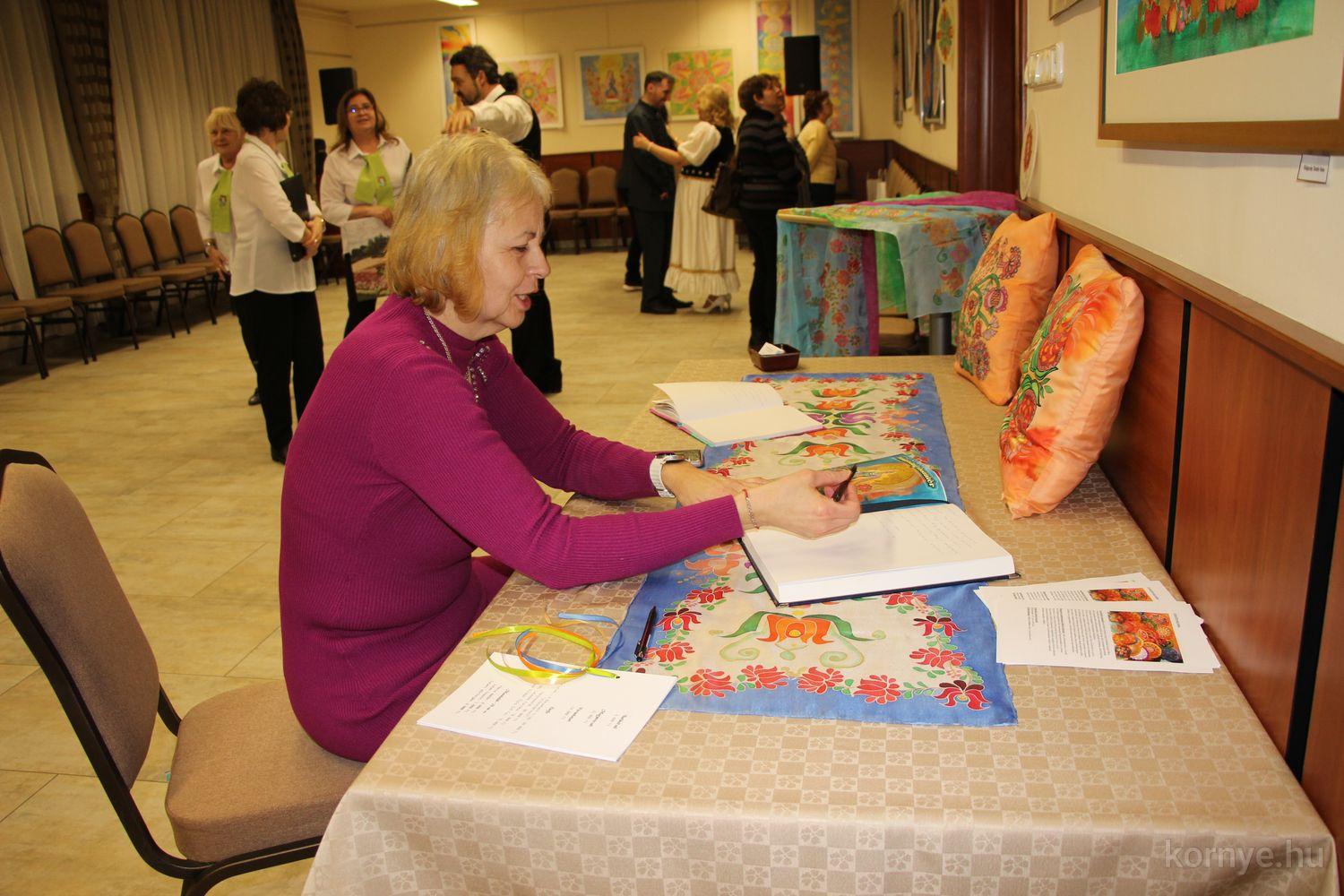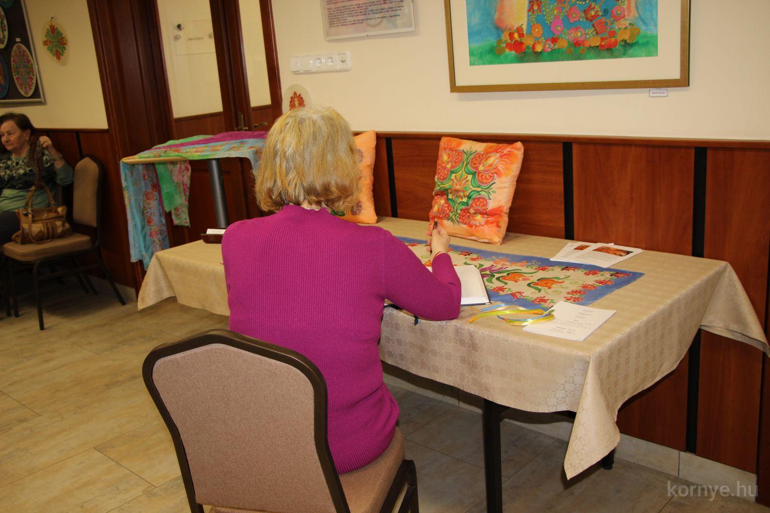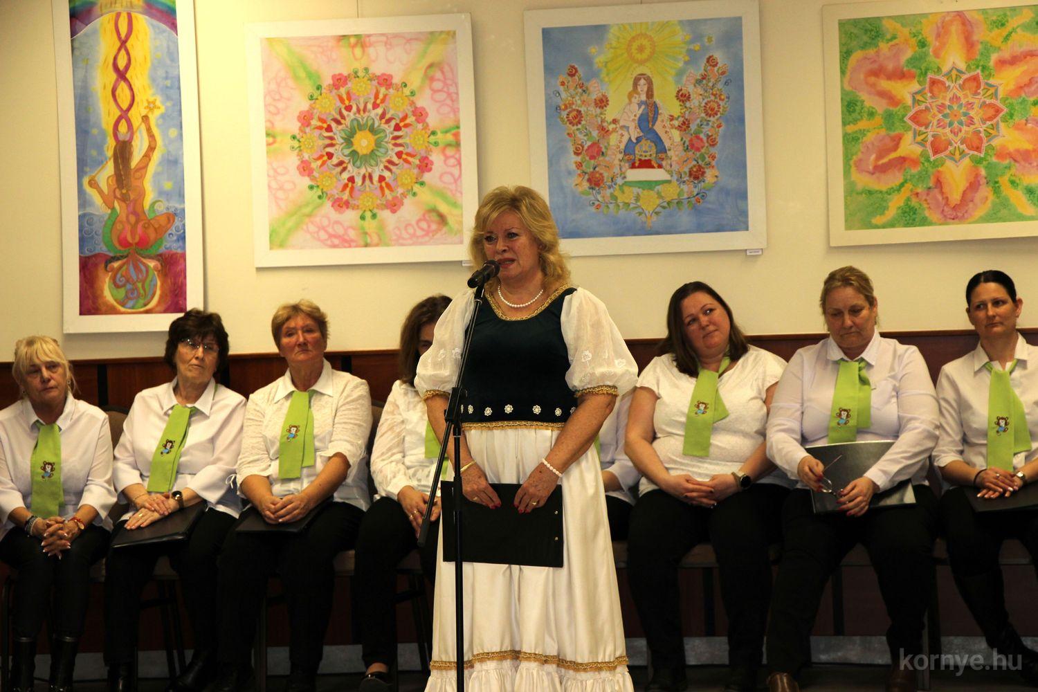 Lélekgyógyász és selyemfestő. Ez sok mindent elárul. A gyógyító és művészeti tevékenységet is, ami a selyemfestéseknek a megalkotása, legyen szó mandaláról, vagy képekről, amelyek valamit levetítenek, megjelenítenek, árasztanak az emberek felé. Ezekben gyógyító kódok vannak, de hogyan jut el odáig egy ember, hogy ilyeneket készítsen? – tette fel a kérdést az alkotásokat ajánló Szokolai Tibor, majd a választ így osztotta meg a jelenlévőkkel: a Kedvesemnek az 1990-es évek elején volt egy műtéti beavatkozást követő halál közeli élménye, amely során olyan szeretetet, olyan békét, olyan harmóniát tapasztalt meg, amit nem lehet szavakkal kifejezni. Akkor indult el ez a lélek állapotváltozás. Mindig is nagyon jó volt a kézügyessége, korábban mesterfodrászként versenyeket nyert, és elindult egy úton, a fény kiárasztásának az útján. Sokat képezte magát, reiki és agykontroll, angyal tanfolyamokat végzett, táltos iskolába járt, mindezeket azért, hogy a szívét, a lelkét felkészítve még magasabb tudással, még nagyobb alázattal és szeretettel áraszthassa a fényt, Isten fényét. Ezek az alkotások, amelyek 2012-től születtek, az egyediségük, a színviláguk, az ősképek, az őskódok által olyan erővel bírnak, amit szavakkal nem lehet kifejezni, de ha odaáll az ember egy kép elé, akkor megszólítja őt, és áthatja a szívét, a lelkét.