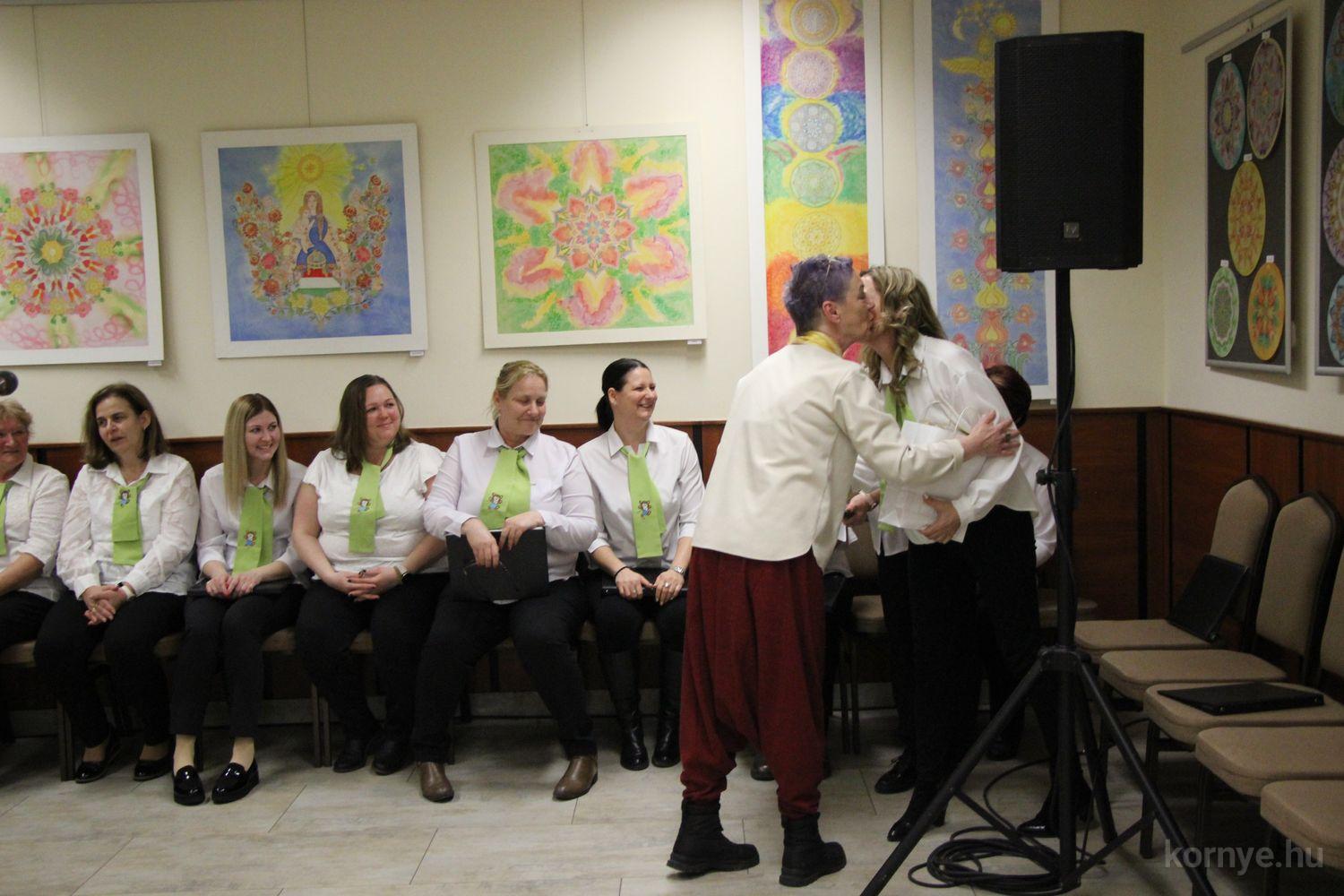 Isten áldja meg a magyart, tartson élted míg, e föld tart. Paradicsom hazájában, éljen, mint hal a Dunában. Magyarország az én hazám, neked szült és nevelt anyám. 100 esztendő nem a világ - éljen a magyar szabadság! – csendült fel a Vackor Óvoda és Bölcsőde kamarakórusának csodálatos előadásában a Csík zenekar „Hazám, hazám” című dala február 20-án a környei Művelődési Házban Szokolai-Lendvai Katalin „Tündérvilág visszatér” című kiállításának a megnyitóján.