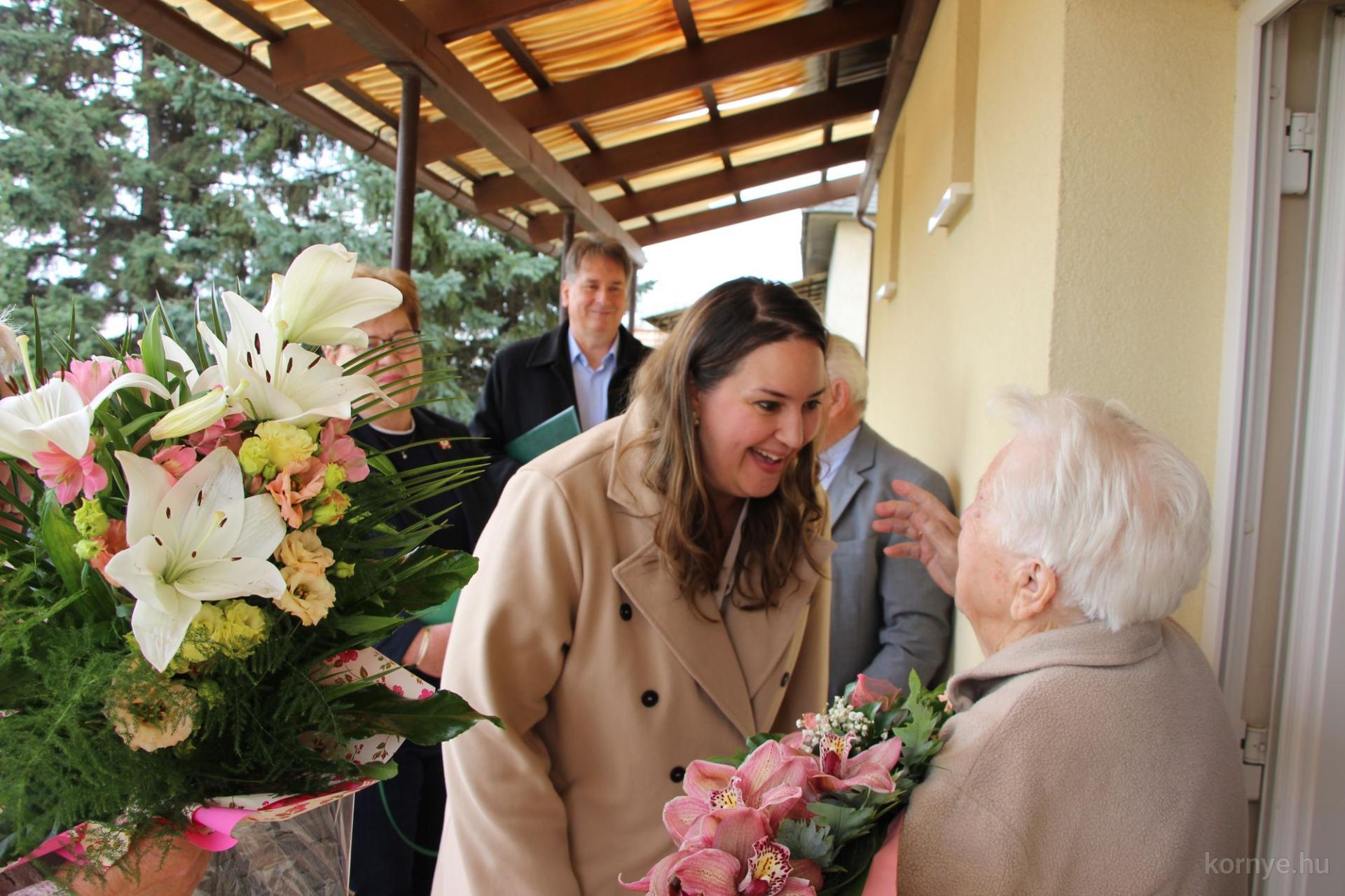 A polgármester mellett Varga Katalin, a Kulturális, Oktatási, Sport és Nemzetiségi Bizottság elnöke, Wéber István, a Német Nemzetiségi Önkormányzat Környe elnökhelyettese, és Nagyné Rácz Dia anyakönyvvezető is köszöntötte az ünnepeltet, hiszen – ahogy Beke László polgármester fogalmazott – teljesen magától értetődő az önkormányzatok, a polgármesteri hivatal jelenléte, mivel Annus néni mindig is aktív résztvevője, alakítója volt a falu közösségi életének, sőt a mai napig aktív szereplője. Elegendő csak a bő egy hónappal ezelőtti tollfosztásra gondolni, ahol Annus nénitől első kézből hallhatták a legfiatalabbak, hogy milyen csodás esemény volt hajdanán egy-egy ilyen alkalom, mennyi mindent tanulhattak a kicsik az idősebbektől.
