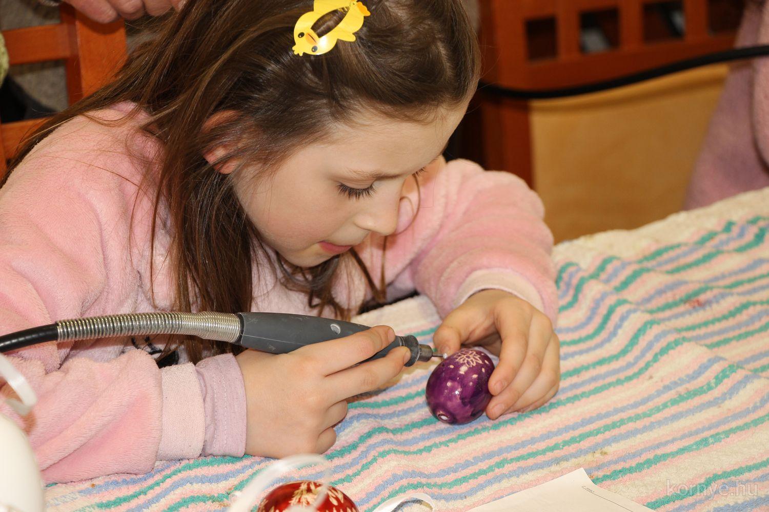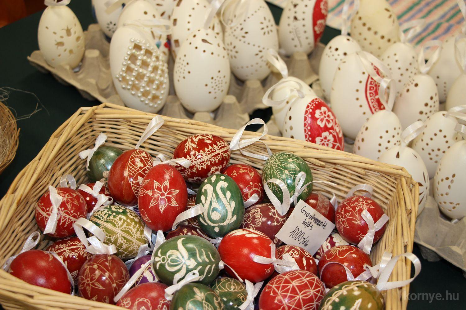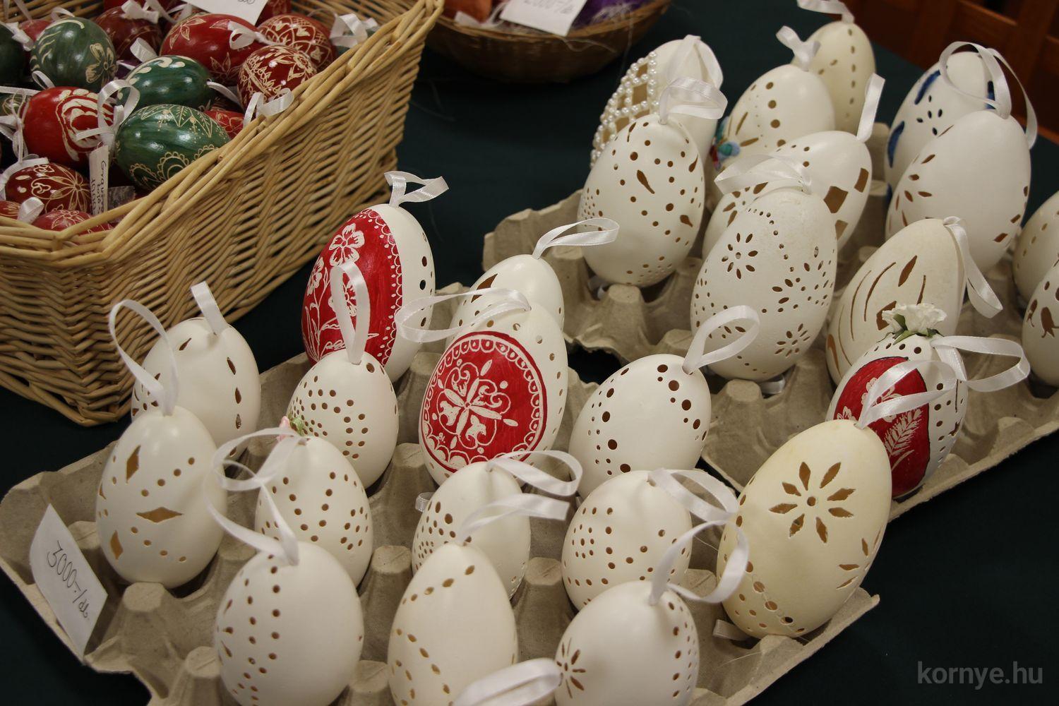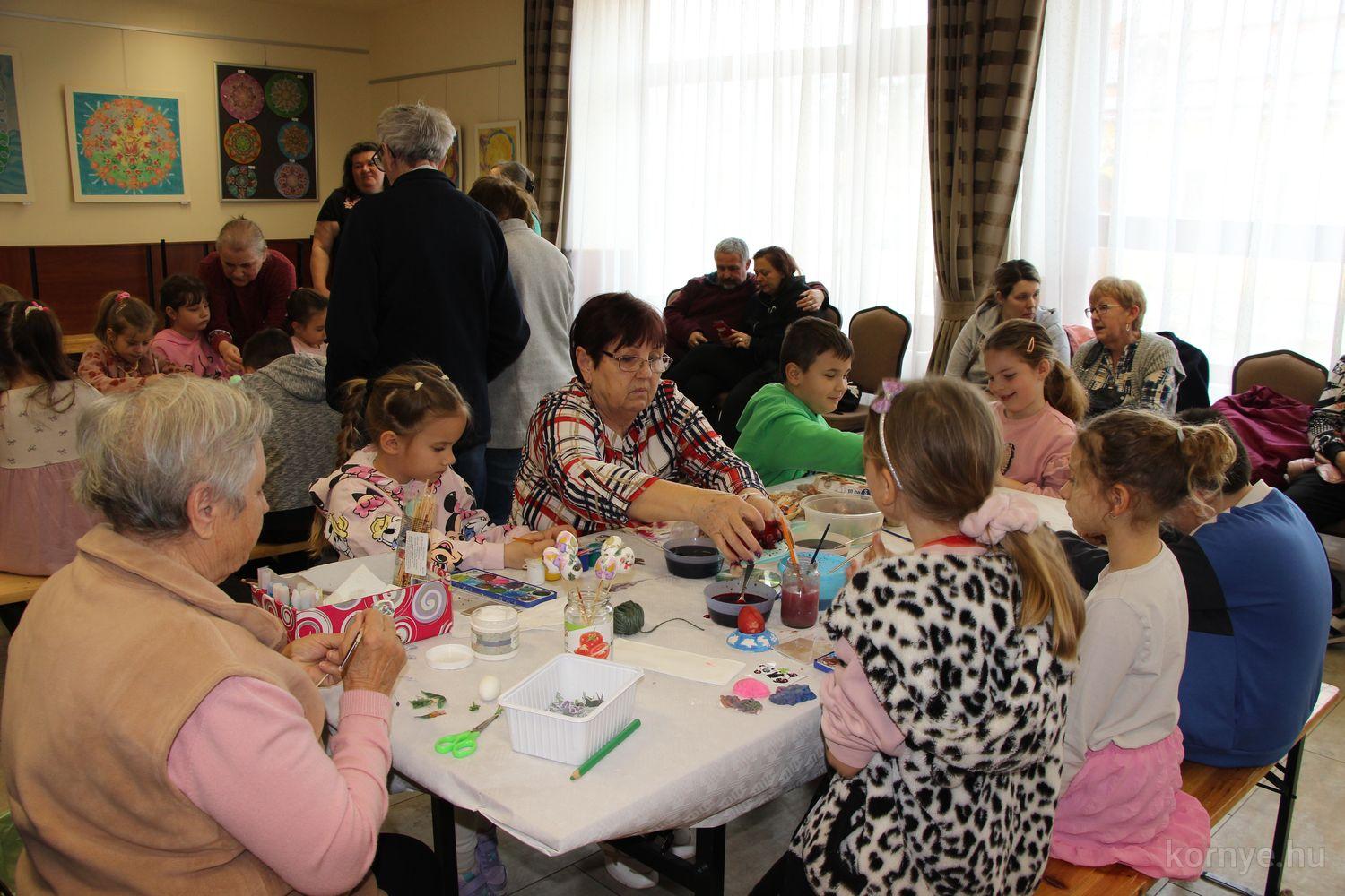Mindeközben Földesné Bálint Ilona Népi kézművesnél, a rendezvény visszatérő vendégénél is díjtalanul gravírozhatták a színezett tyúktojásokat a gyerekek, felnőttek, és falatozhattak a „Süssünk, főzzünk valamit!” Klub finomságaiból.