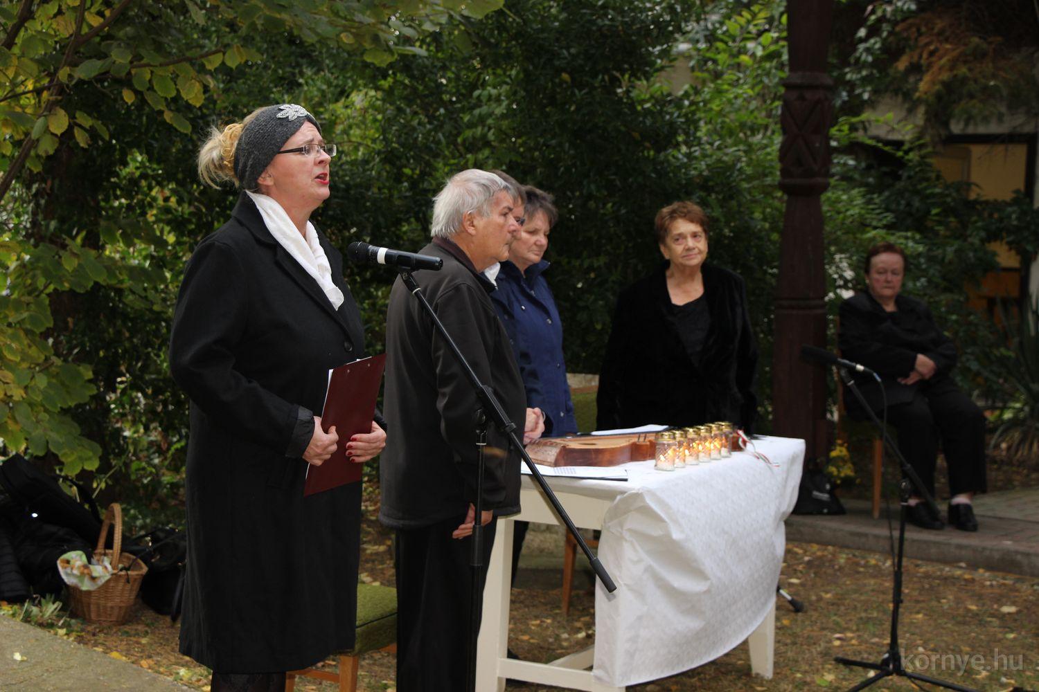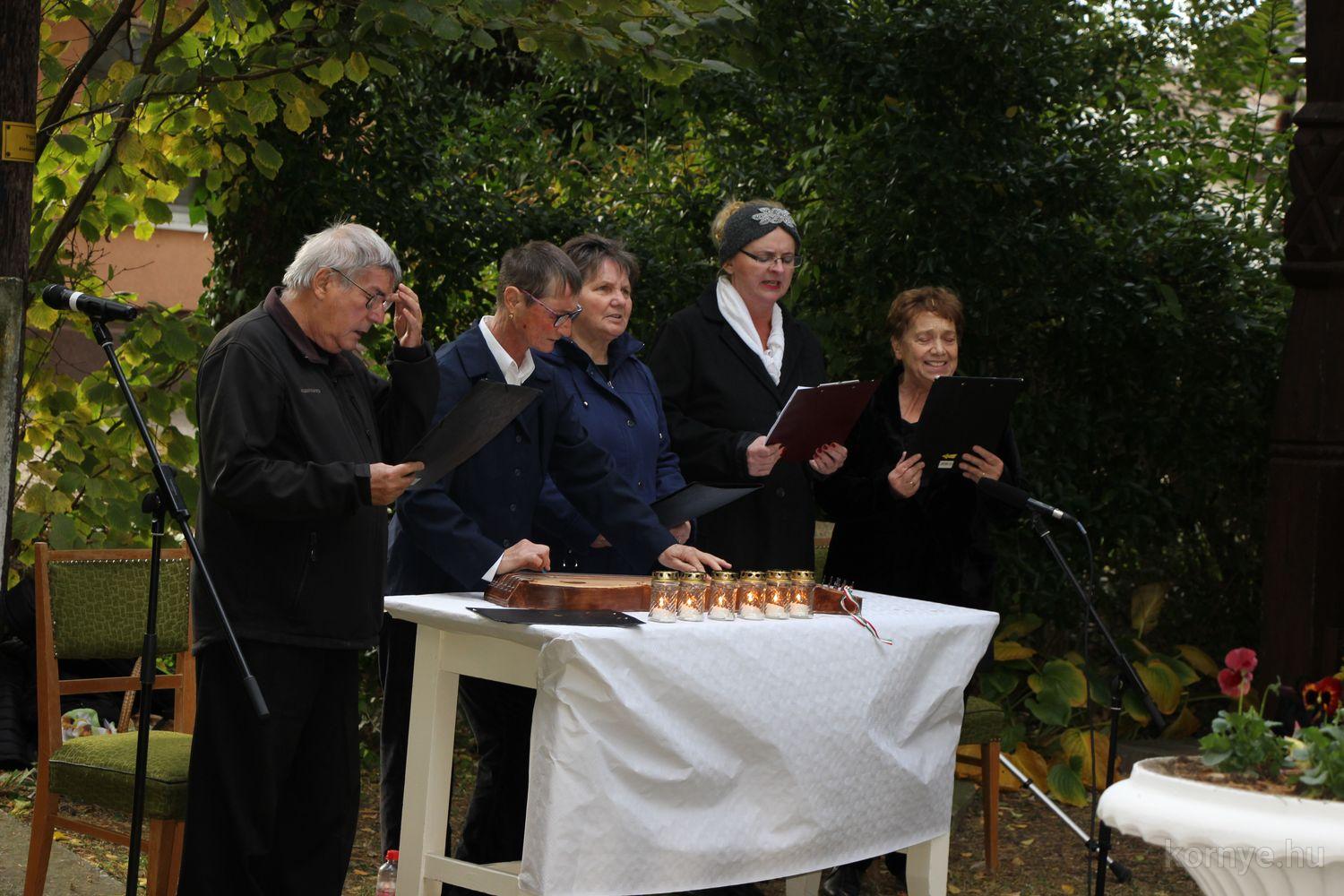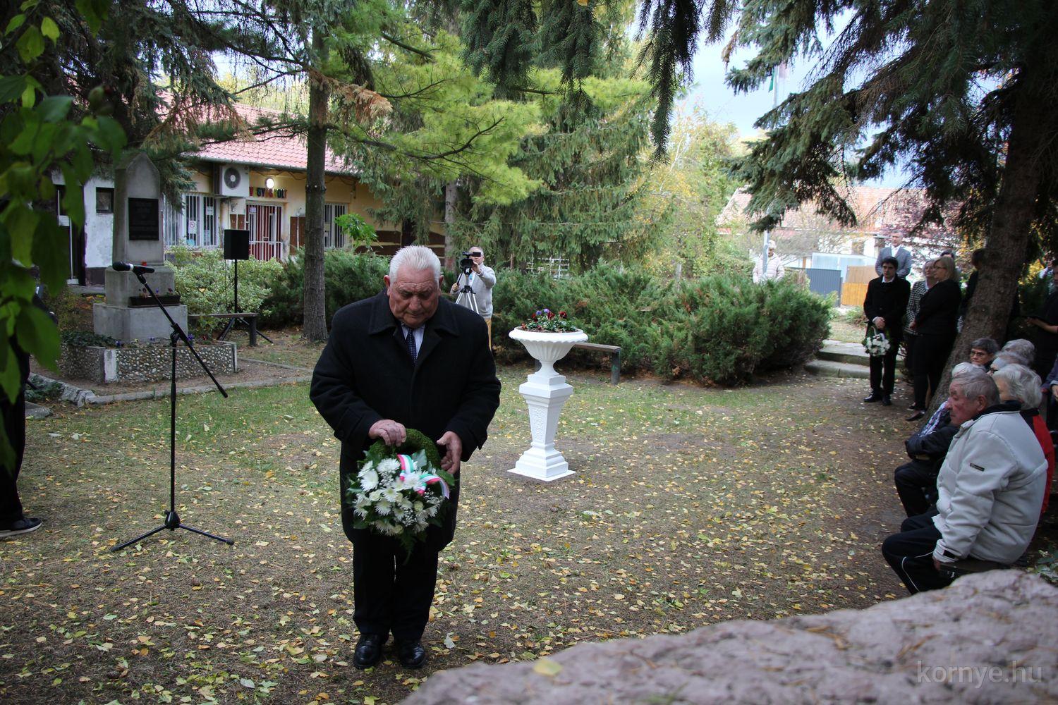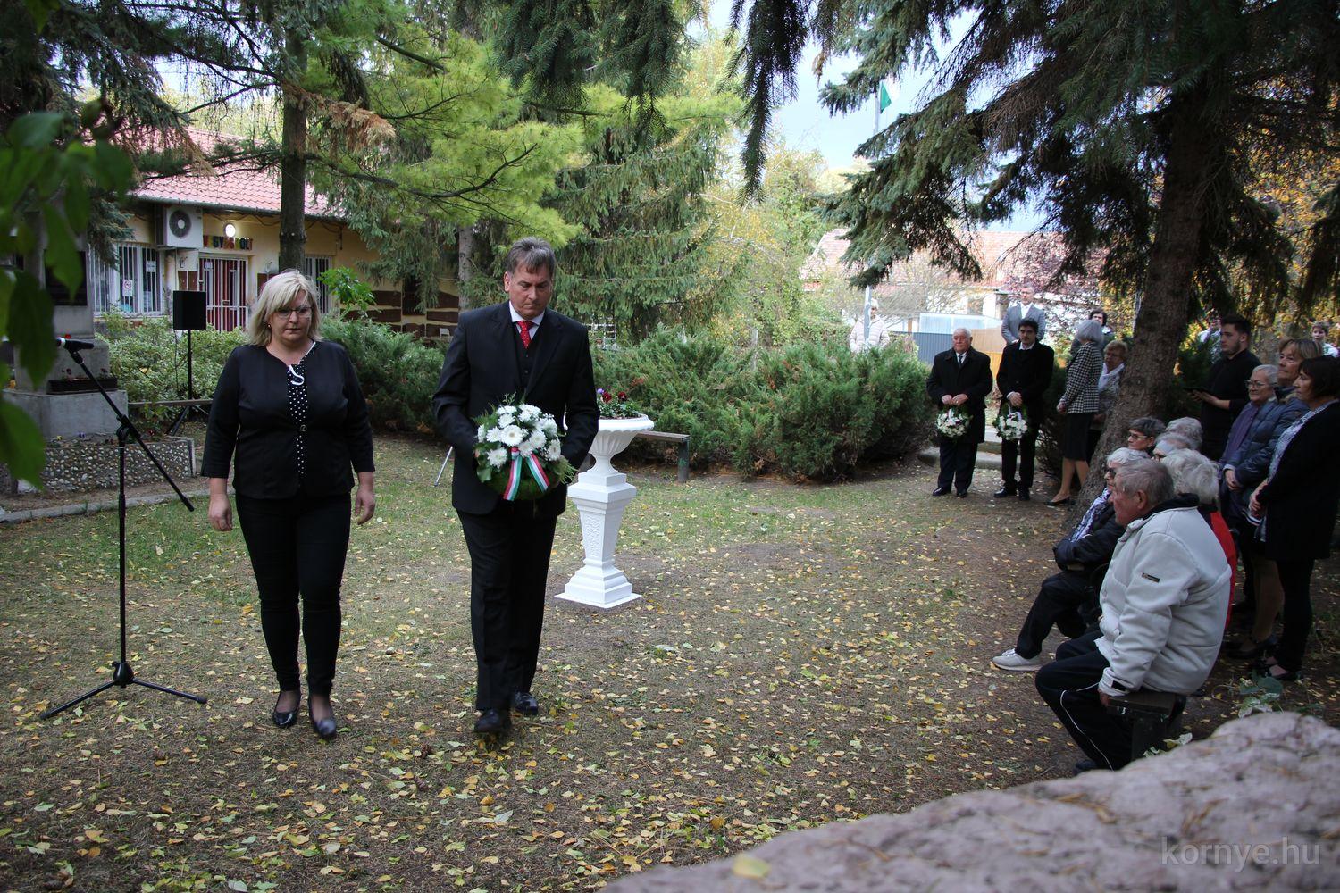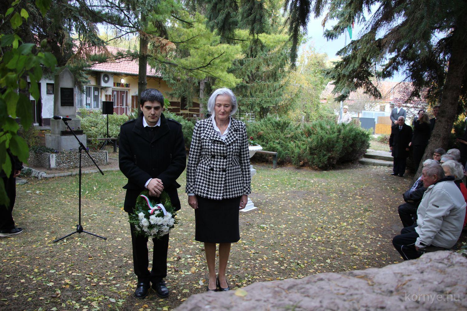 A Környei Magyar Dalkör tagjai Bozó Kucskár Anikó felkészítésében citeramuzsikával, énekekkel, Domina József szavalatával tisztelgett 1956 hősei előtt, Bolemányi Magdolna a 22 évesen elhunyt fiatalember alakját idézte fel, majd az emlékezők az emlékműnél helyezték el a kegyelet virágait, mécseseit.