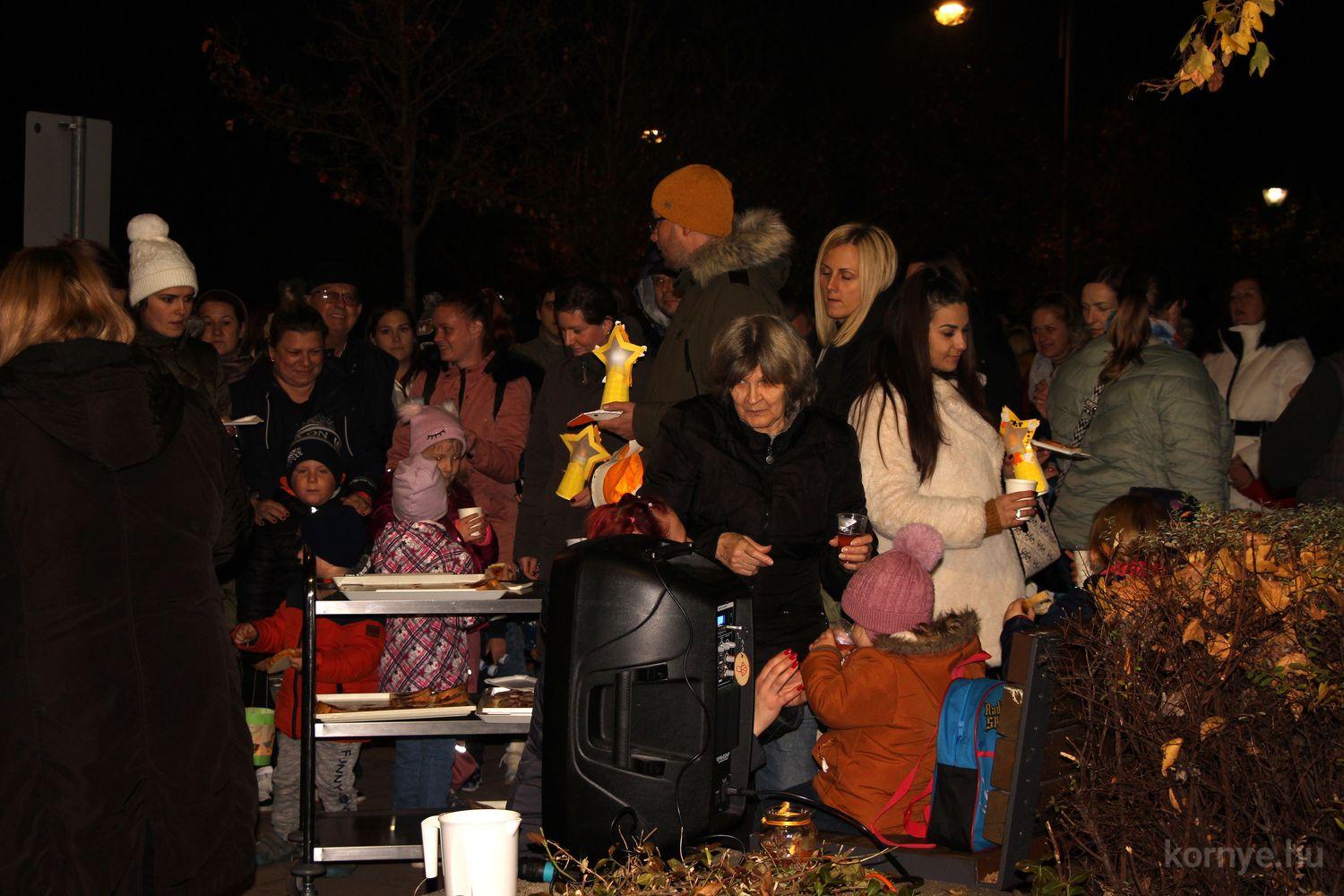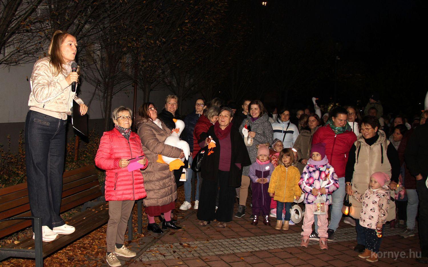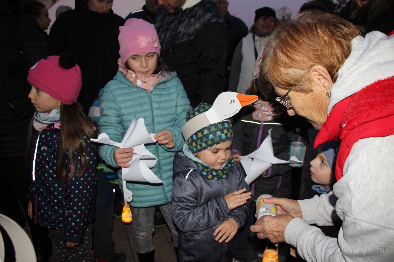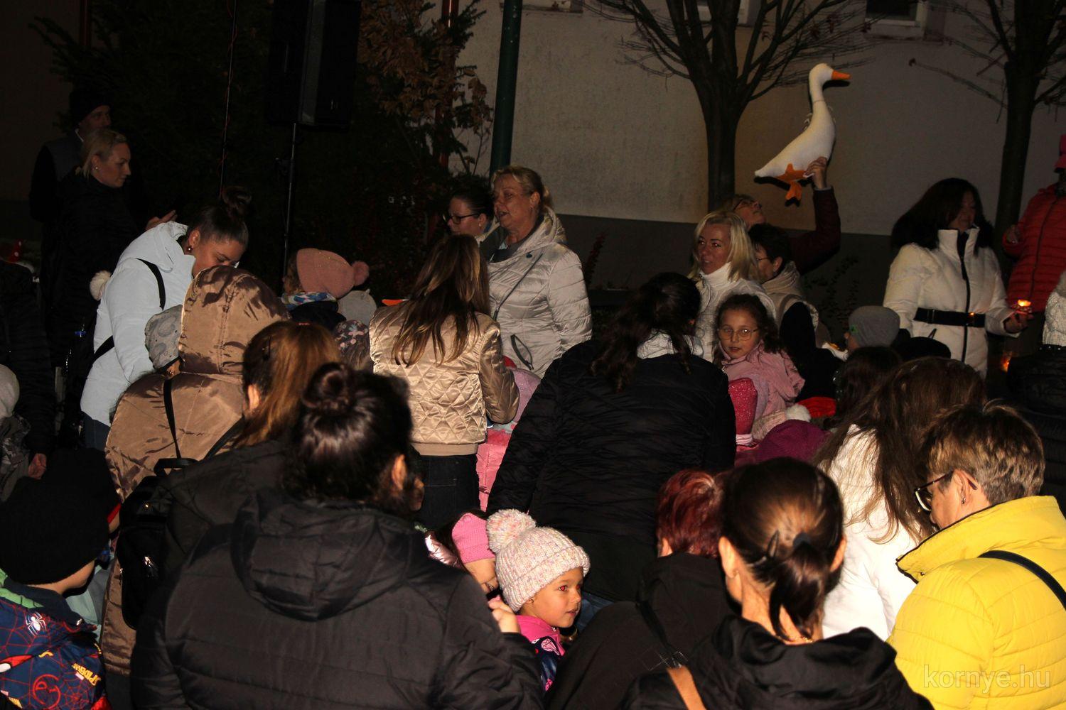 A rendezvény záró programjaként érkezett el november 11-e, amikor a csoportok gyermekei, anyukák, apukák, testvérek, nagyszülők, dalcsokrokkal, mondókákkal és a szebbnél-szebb lámpácskákkal indultak el a térre a szeretet lángjaival, ahol több száz fénypont jelezte a hatalmas érdeklődést, a közös együttlét örömét. A téren Troll Kriszti óvónéni mesélte el Márton legendáját, aki egy jóságos katonából lett püspökké, mert a libák gágogása elárulta a hollétét az embereknek. A családokat a Márton napi népi hiedelmekkel is megismertette, hiszen ez a nap volt a téli pihenő kezdete, libalakomákkal ünnepelték. Úgy tartották, ha november 11-én száraz az idő, akkor hosszú lesz a tél, és ezen a napon nem volt szabad takarítani, mosni, teregetni, az állatok pusztulását okozni.