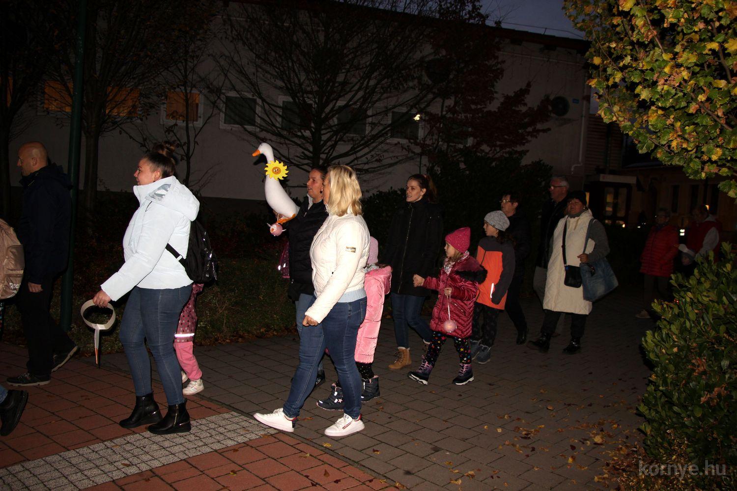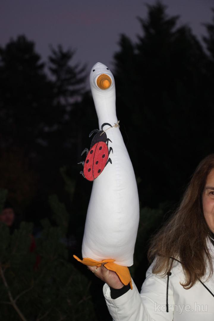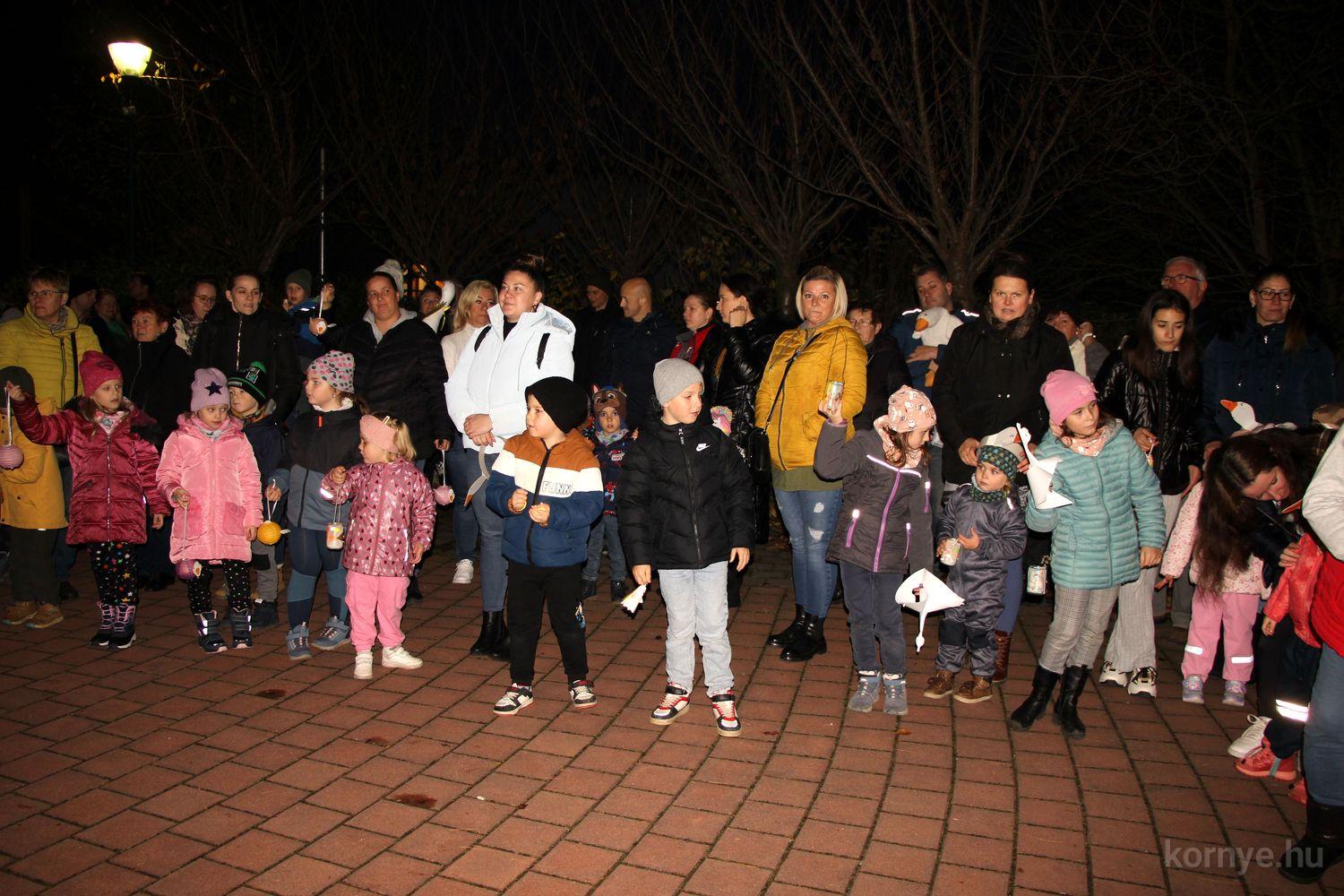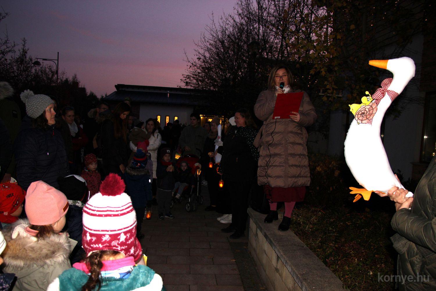 A rendezvény záró programjaként érkezett el november 11-e, amikor a csoportok gyermekei, anyukák, apukák, testvérek, nagyszülők, dalcsokrokkal, mondókákkal és a szebbnél-szebb lámpácskákkal indultak el a térre a szeretet lángjaival, ahol több száz fénypont jelezte a hatalmas érdeklődést, a közös együttlét örömét. A téren Troll Kriszti óvónéni mesélte el Márton legendáját, aki egy jóságos katonából lett püspökké, mert a libák gágogása elárulta a hollétét az embereknek. A családokat a Márton napi népi hiedelmekkel is megismertette, hiszen ez a nap volt a téli pihenő kezdete, libalakomákkal ünnepelték. Úgy tartották, ha november 11-én száraz az idő, akkor hosszú lesz a tél, és ezen a napon nem volt szabad takarítani, mosni, teregetni, az állatok pusztulását okozni.
