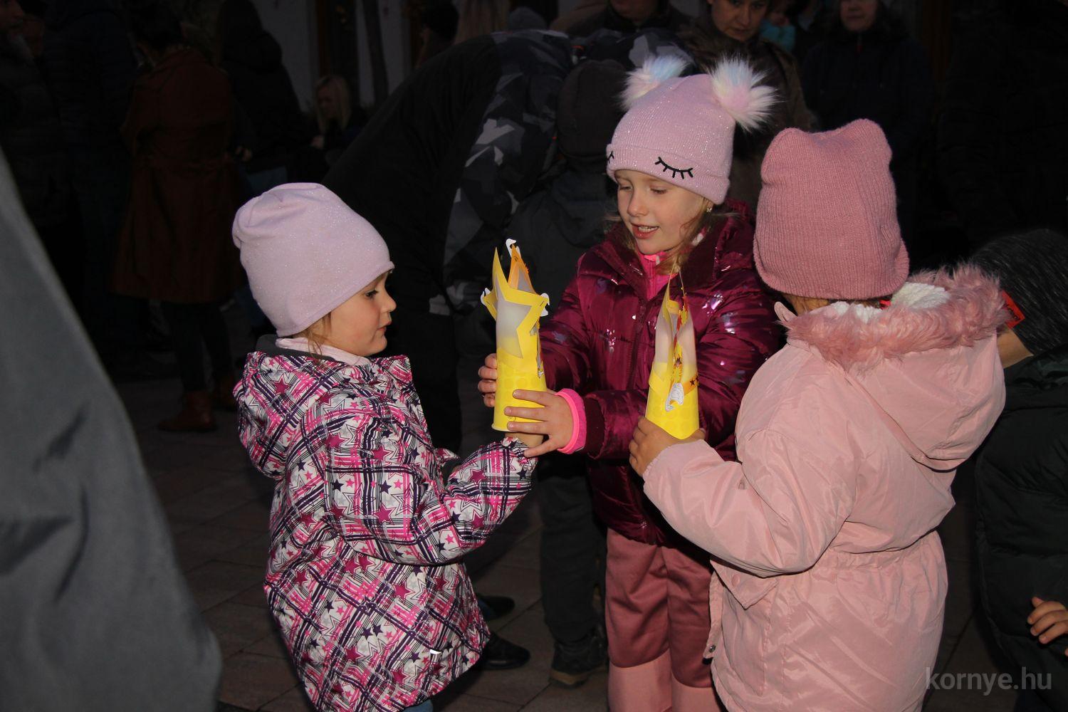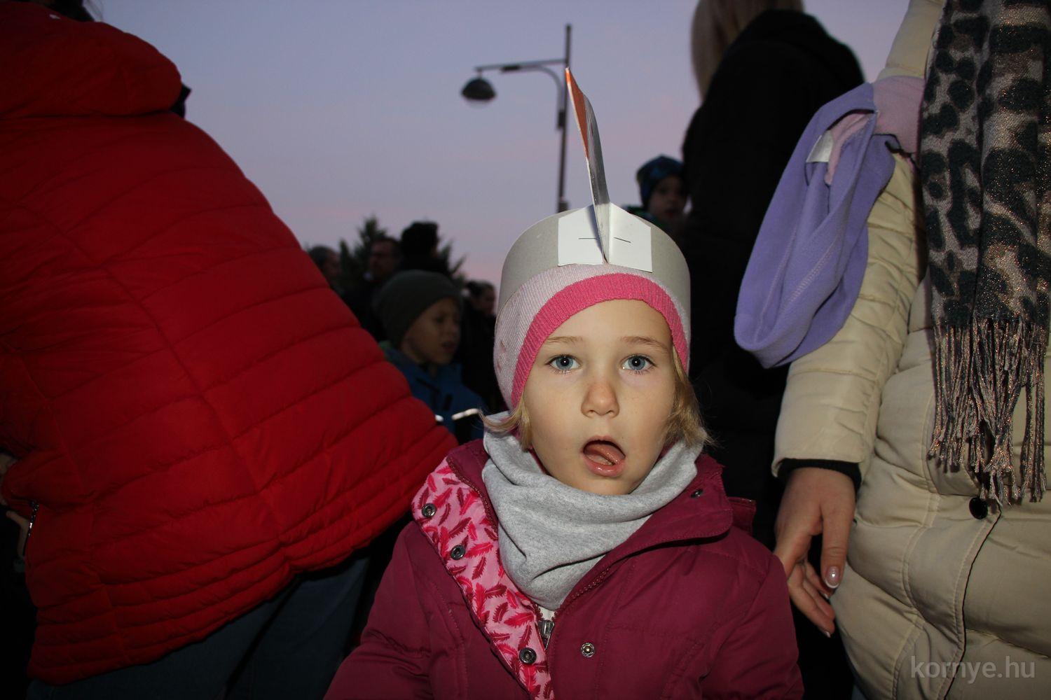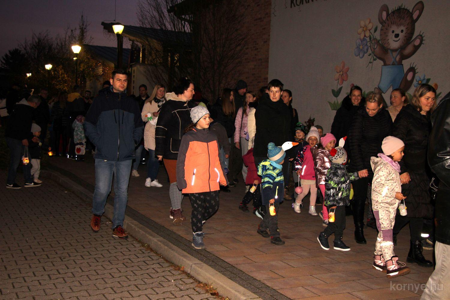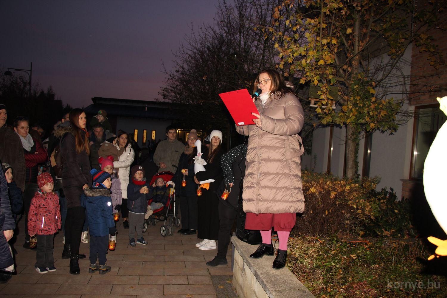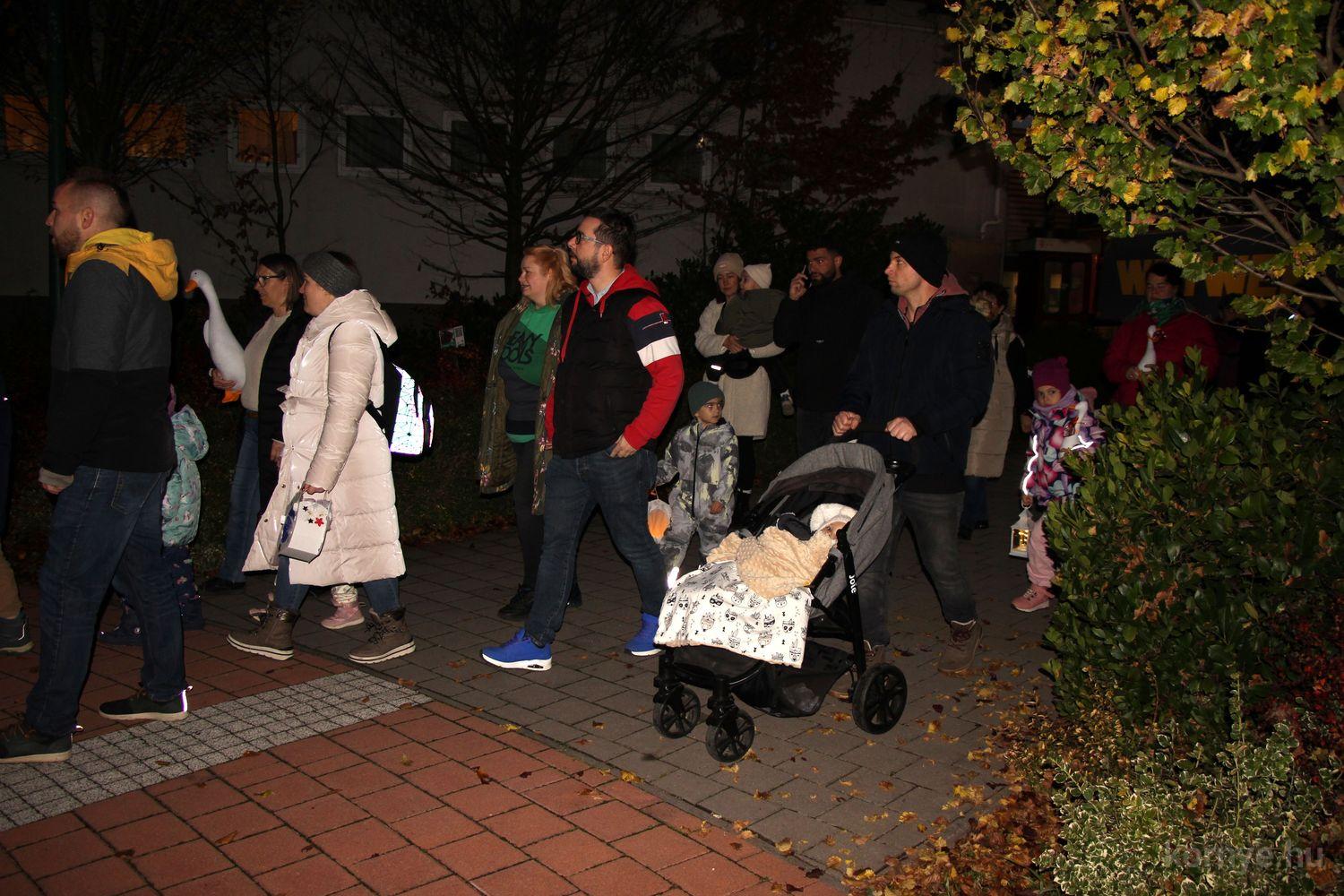 A rendezvény záró programjaként érkezett el november 11-e, amikor a csoportok gyermekei, anyukák, apukák, testvérek, nagyszülők, dalcsokrokkal, mondókákkal és a szebbnél-szebb lámpácskákkal indultak el a térre a szeretet lángjaival, ahol több száz fénypont jelezte a hatalmas érdeklődést, a közös együttlét örömét. A téren Troll Kriszti óvónéni mesélte el Márton legendáját, aki egy jóságos katonából lett püspökké, mert a libák gágogása elárulta a hollétét az embereknek. A családokat a Márton napi népi hiedelmekkel is megismertette, hiszen ez a nap volt a téli pihenő kezdete, libalakomákkal ünnepelték. Úgy tartották, ha november 11-én száraz az idő, akkor hosszú lesz a tél, és ezen a napon nem volt szabad takarítani, mosni, teregetni, az állatok pusztulását okozni.