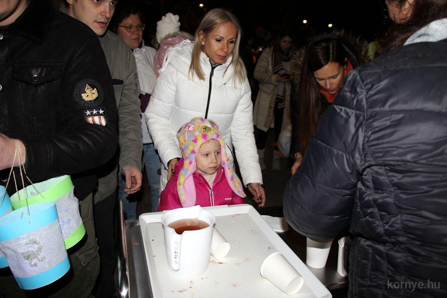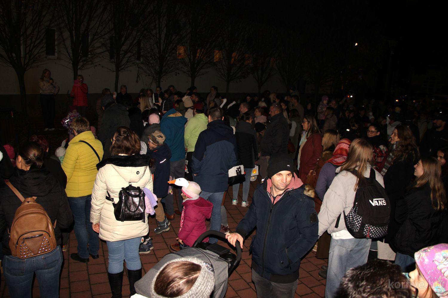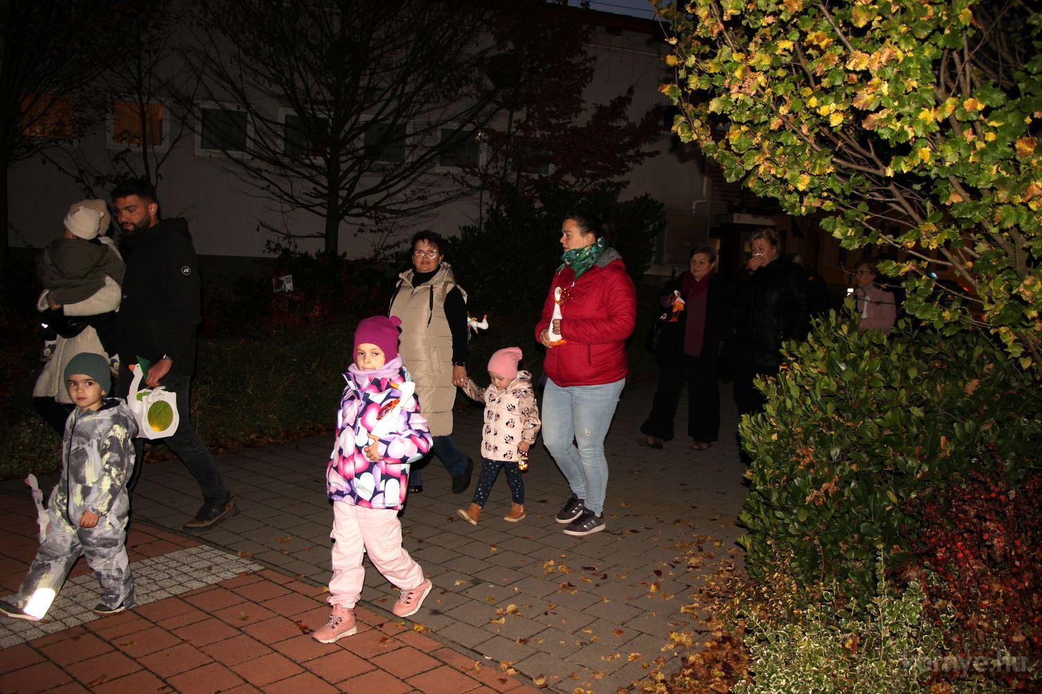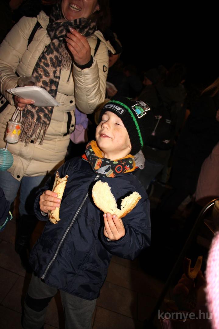 A rendezvény záró programjaként érkezett el november 11-e, amikor a csoportok gyermekei, anyukák, apukák, testvérek, nagyszülők, dalcsokrokkal, mondókákkal és a szebbnél-szebb lámpácskákkal indultak el a térre a szeretet lángjaival, ahol több száz fénypont jelezte a hatalmas érdeklődést, a közös együttlét örömét. A téren Troll Kriszti óvónéni mesélte el Márton legendáját, aki egy jóságos katonából lett püspökké, mert a libák gágogása elárulta a hollétét az embereknek. A családokat a Márton napi népi hiedelmekkel is megismertette, hiszen ez a nap volt a téli pihenő kezdete, libalakomákkal ünnepelték. Úgy tartották, ha november 11-én száraz az idő, akkor hosszú lesz a tél, és ezen a napon nem volt szabad takarítani, mosni, teregetni, az állatok pusztulását okozni.