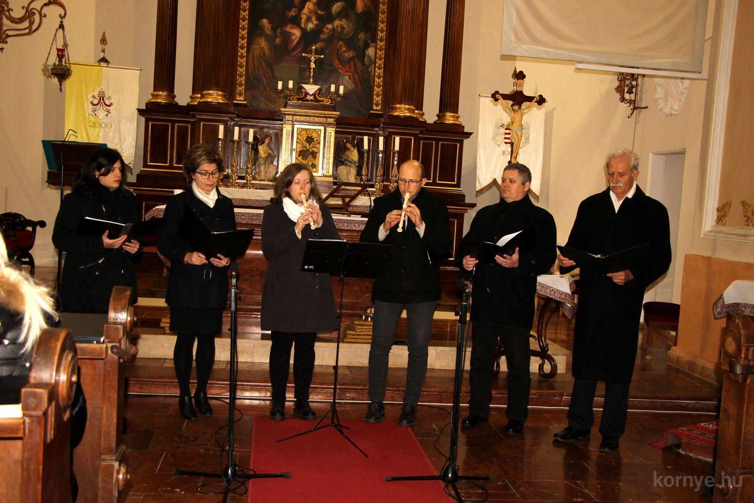 A folytatásban Saltzer Géza művészeti vezető fuvolajátékával kísért dalokkal érkezett a Német Nemzetiségi Dalkör, majd a Római Katolikus Plébánia Kórusa színezte tovább Advent csendes, békés hangulatát. Az együttes 2018-ban alakult azzal a céllal, hogy énekükkel emelkedettebbé tegyék az egyházi ünnepeket. Az azóta eltelt években számos helyi és környékbeli rendezvényen léptek fel. A kórust Cseh-Molnár Johanna és dr. Molnár András irányítja.