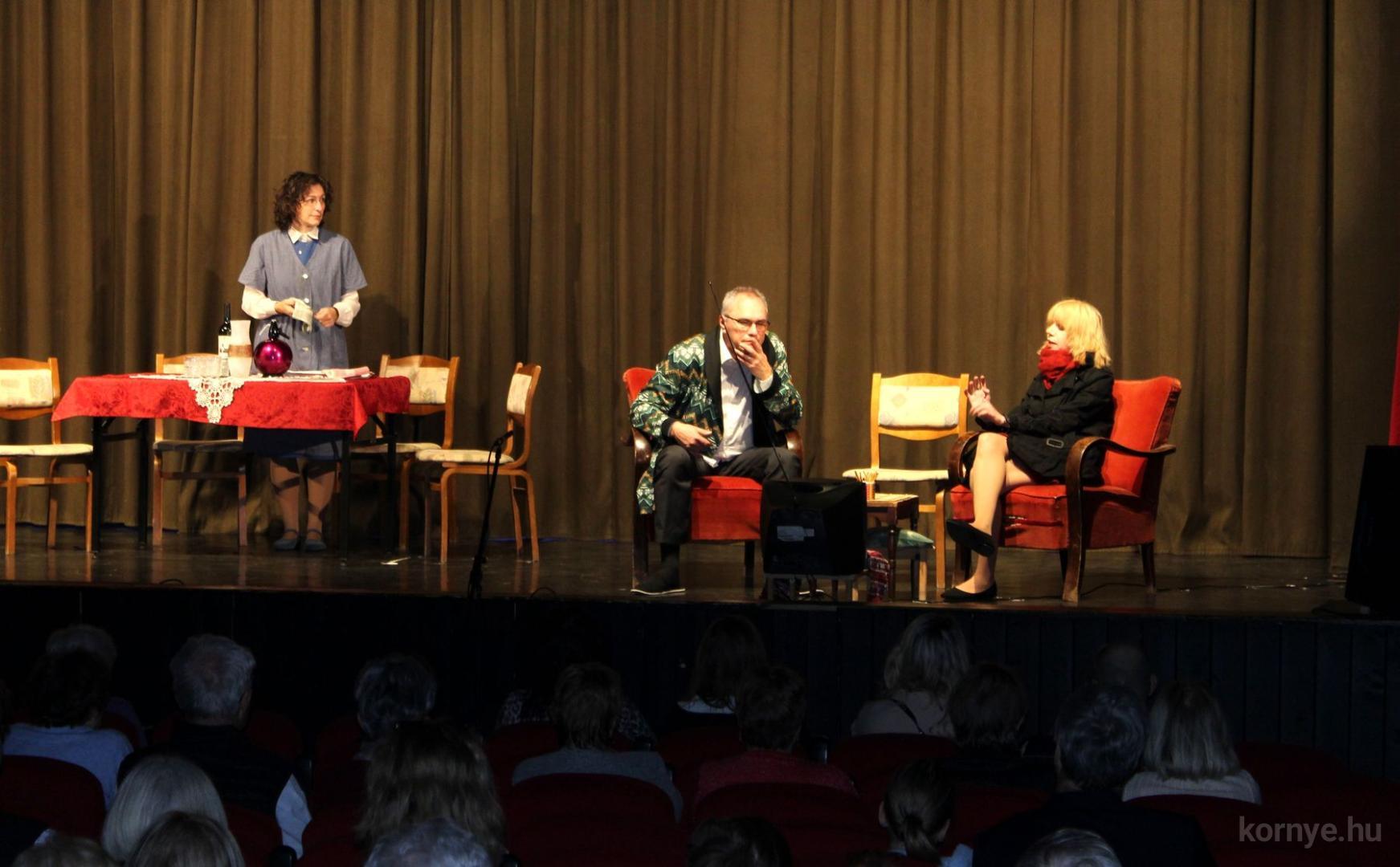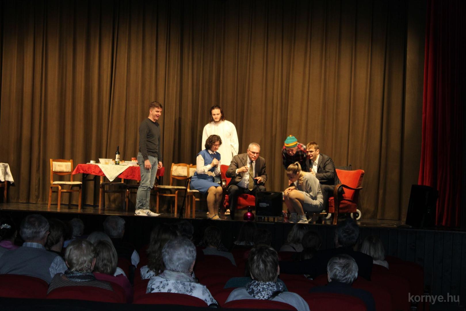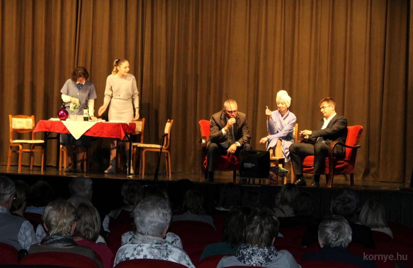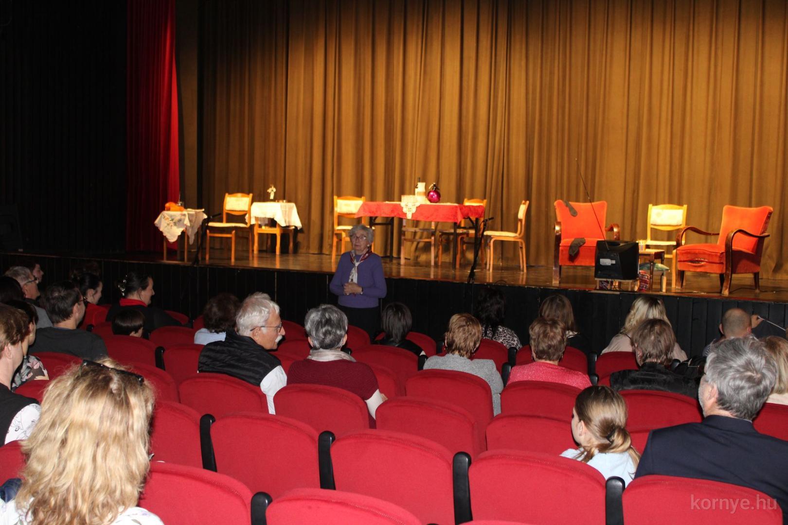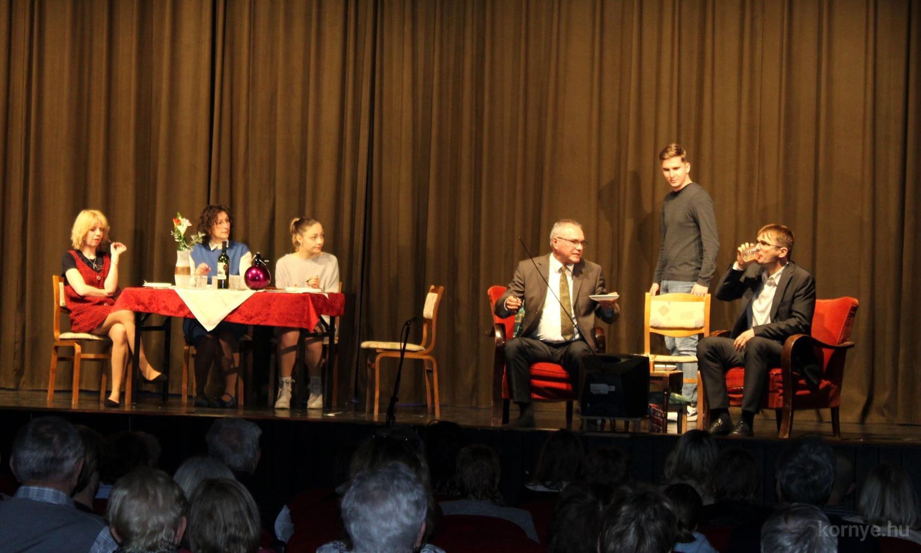 Ez a darab 1969-ben keletkezett, és azóta szinte valamennyi színház színpadát, sőt Európa jó néhány színpadát is megjárta. Merthogy nagyon aktuális. Műfaját Szakonyi Károly komédiának határozta meg, de én úgy gondolom, hogy inkább tragikomédia. Mert – meg fogják látni – bosszantóan nevetséges, ahogyan az emberek viselkednek a színpadon, és tragédia is, hiszen nagyon-nagyon a valóságból vette a helyzeteket, a figurákat, a párbeszédeket. Tulajdonképpen minden jó dráma kérdez valamit. Szakonyi Károly nagyon is aktuális, és most, Advent időszakában különösen az. A szerző azt kérdi tőlünk, hogy tudunk-e egymásra igazán figyelni? Nem felszínesek-e még a legközelebbi kapcsolataink is? És vesszük-e Istennek a jelzéseit, tudunk-e arra is gondolni, arra is figyelni, vagy csak verjük a mellünket, hogy mi aztán igazán hiszünk. Azt hiszem, hogy az előadás után azért hazavisznek valamennyien egy kis elgondolkodni valót, hiszen önmagunkkal szembesít bennünket – köszöntötte a vendégeket Bognár Istvánné, majd a következő két órában a szereplők a Bódog családhoz kalauzolták a nézőt, de – az eseményeket látva – szinte bármely mai család otthonába bekopogtathattunk volna. A történet szerint Bódogék a legkisebb fiuk, Imrus születésnapját ünneplik, de valójában senkit sem érdekel maga az ünnepelt, édesapja még azzal sincs tisztában, hogy 18, vagy 19 éves? A család tagjai leginkább a televízió előtt ülnek, mindenki beszél, de senki sem figyel a másikra. A darab egyik kulcsfigurája egy különös albérlő, Emberfi, aki Krisztus-szerű „figura”: csodákat tesz, vízből bort csinál, meggyógyítja a béna szomszédot, Szűcs urat, de Imruson kívül senki sem figyel rá.