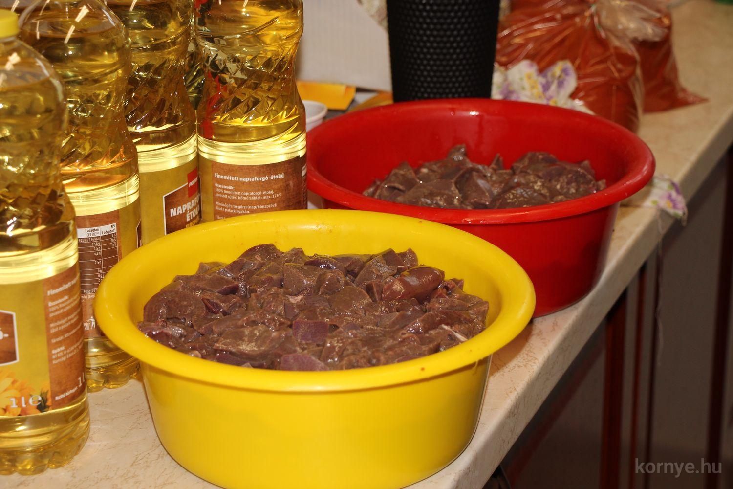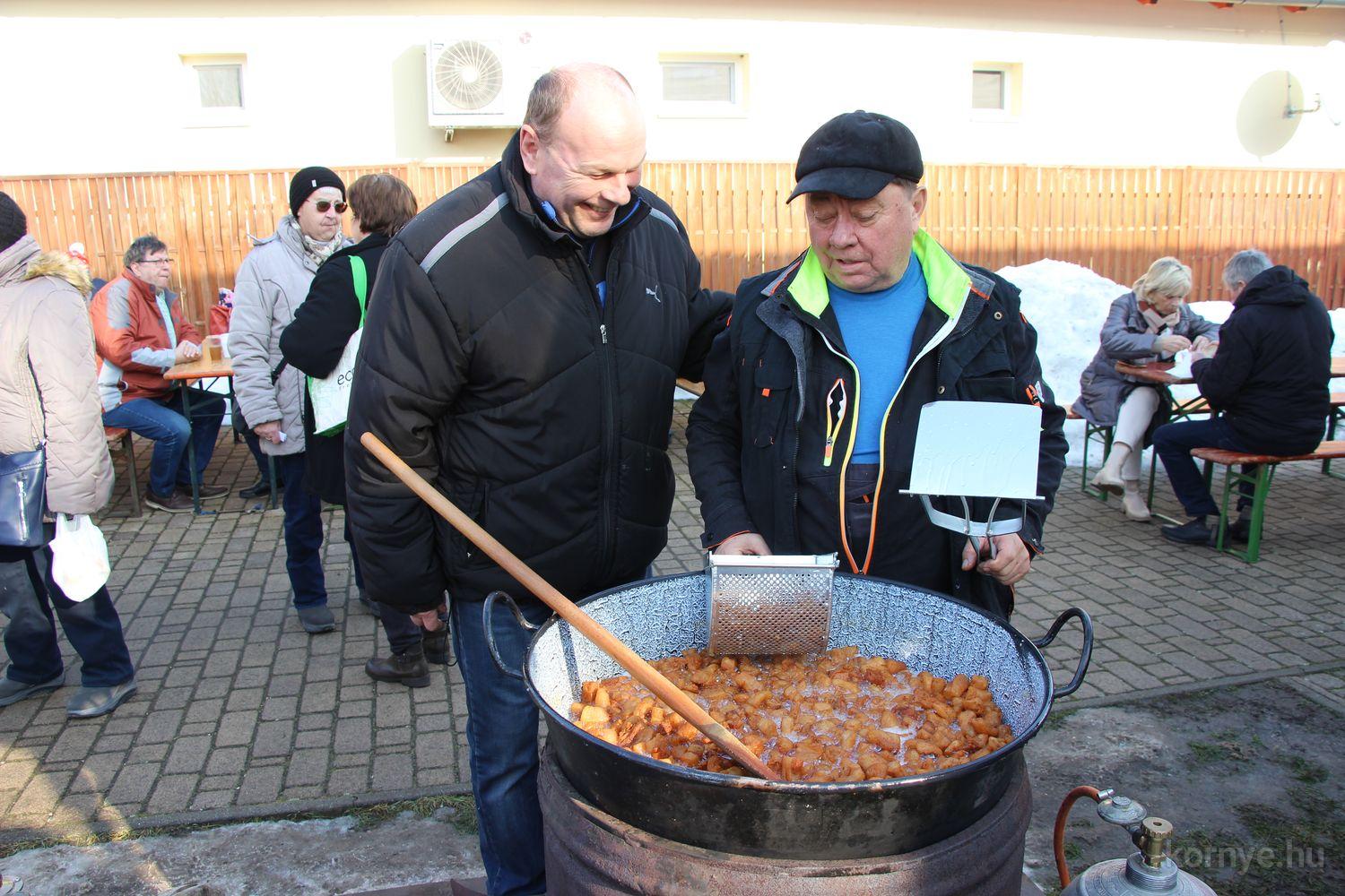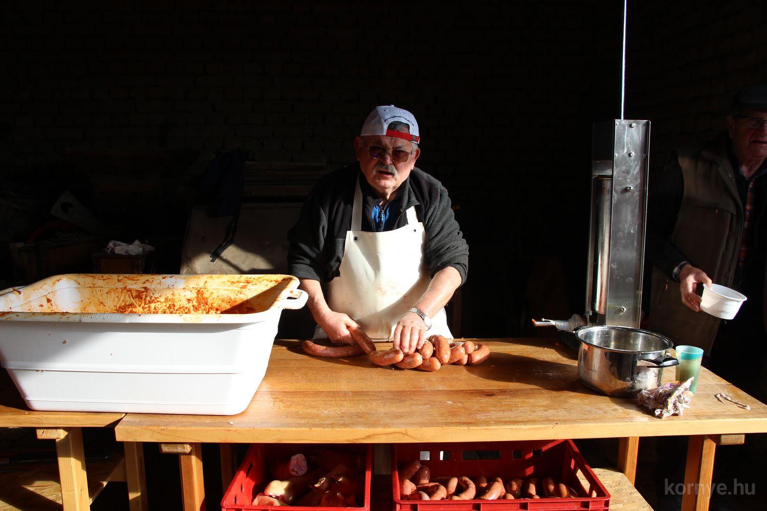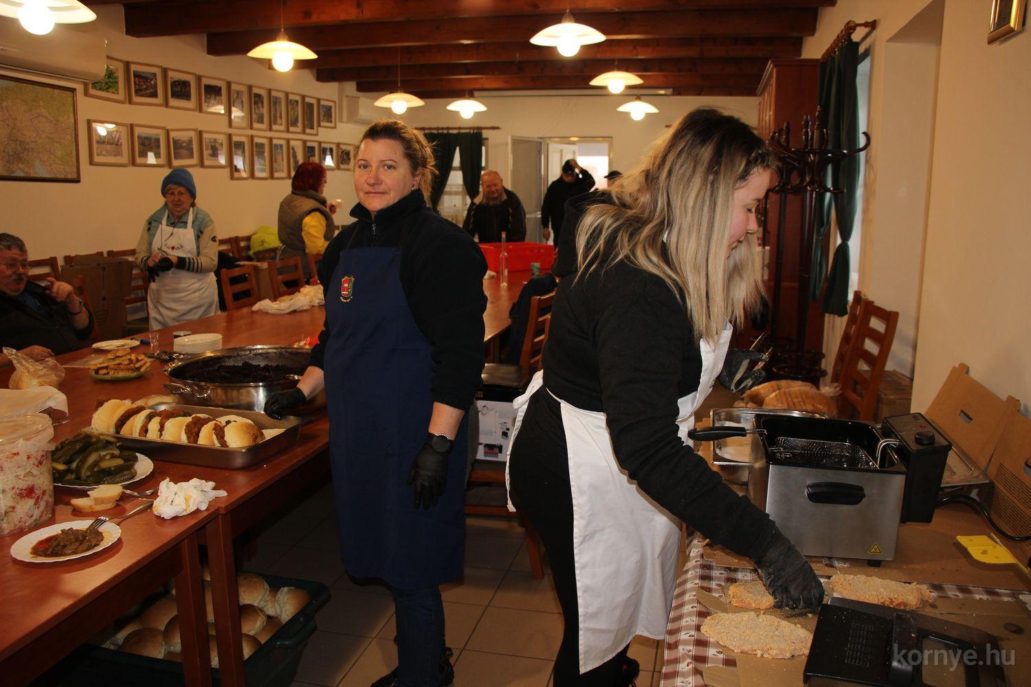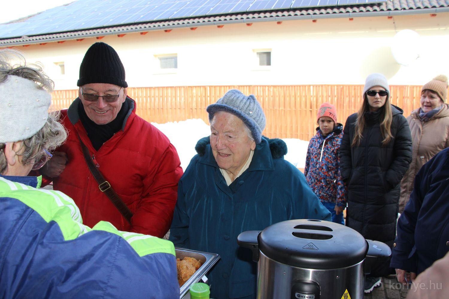 Mindeközben szorgoskodtak az asszonyok, akik már előző nap sütöttek: hájas lekvárost, töpörtyűs pogácsát, sörkiflit, kínáltak, s ahogy az lenni szokott, dolgoztak a férfikéz alá, készítették elő az alapanyagokat a majdani ízletes, sváb hagyományok szerinti disznótoros falatokhoz, melynek hírére 11 órától folyamatosan „telt házasnak” bizonyult a tájház udvara.
