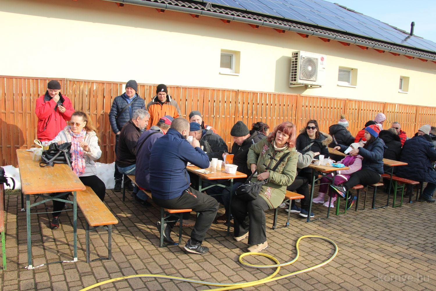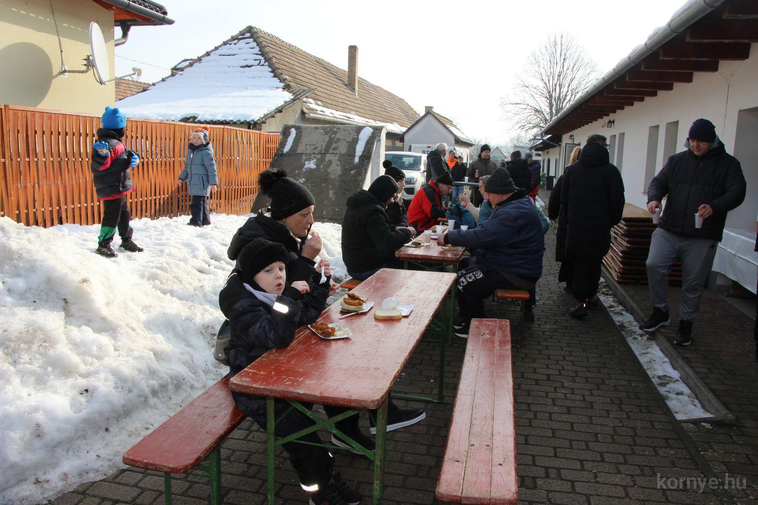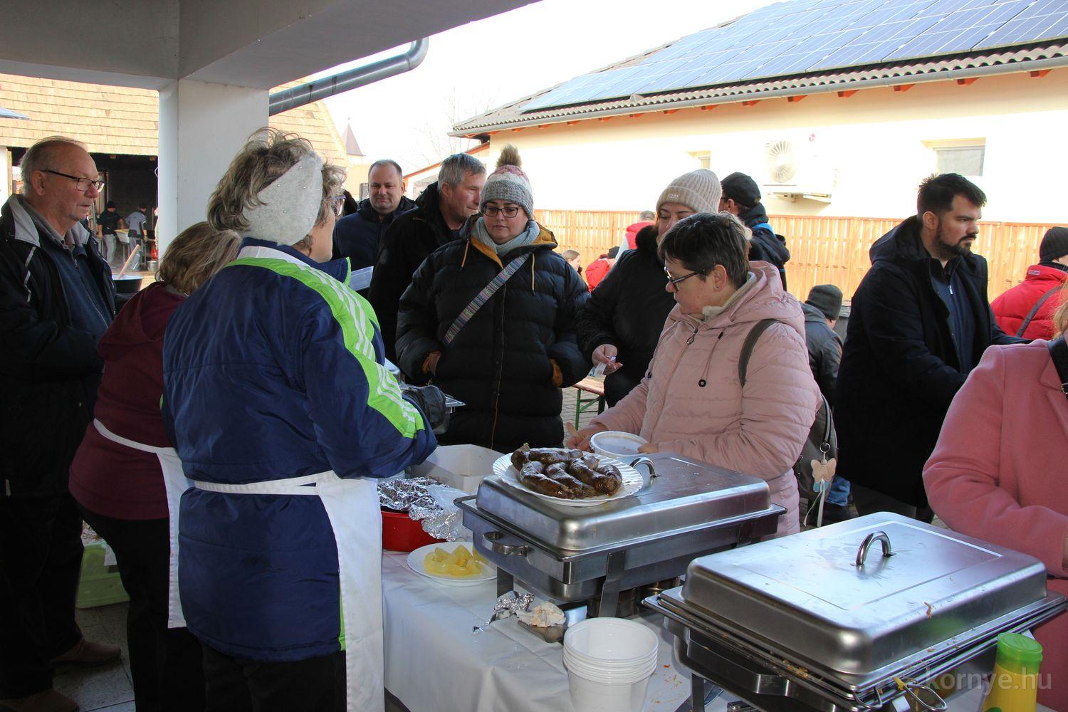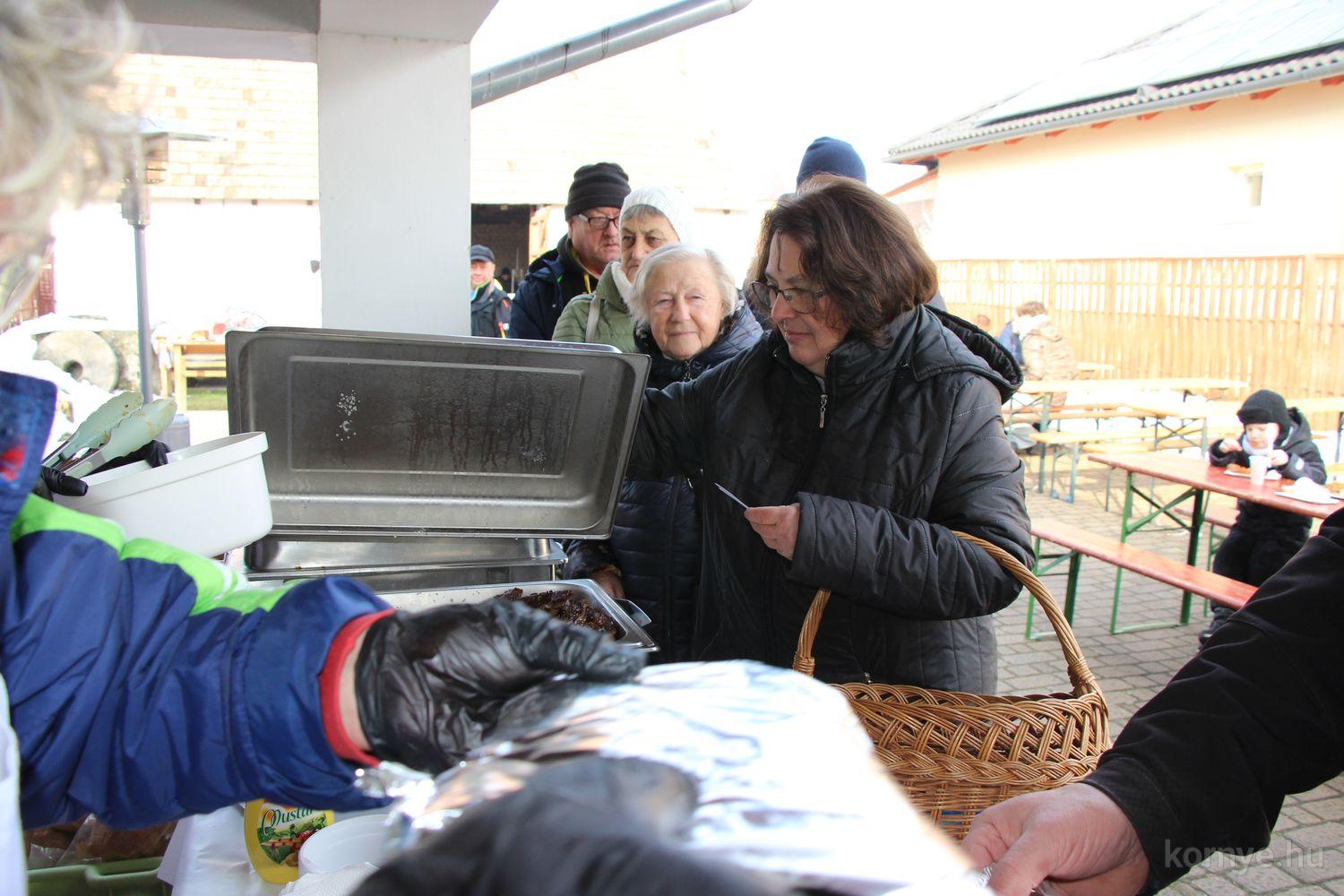 A hagyományőrző disznóvágás és finomságok hírére nem csupán helyből, de a szomszédos településekről, Tatabányáról, Oroszlányból, Vértessomlóról, Várgesztesről, Bokodról is érkeztek, többen rutinosan éthordókkal, tároló edényekkel, hiszen – mint mondták – így már „meg is főzték” a vasárnapi ízletes ebédet.