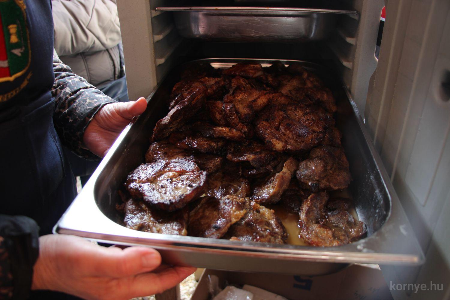 A negyedik disznóvágás során a két tekintélyes méretű állatnak és a szorgos férfi, női kezeknek köszönhetően az előző éveknél lényegesen nagyobb mennyiségben készültek a finomságok: 150 kiló sütőkolbász, 80 kg májas hurka, 50 kg pecsenye és oldalas, 180 db retró rántott húsos szendvics és 50 kiló káposztából, ugyanennyi húsból, megszámlálhatatlan gombócból a toroskáposzta. A disznótoros finomságokra vágyók pontosan 468 kóstolójegyet vásároltak, a helyben fogyasztók számára a jó ebédhez a nótát a Stockerei Trio szolgáltatta.