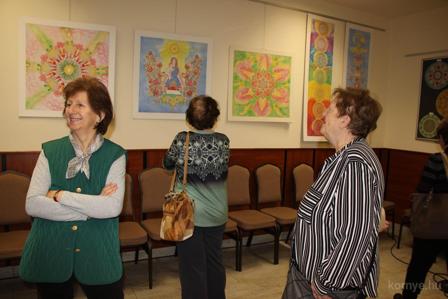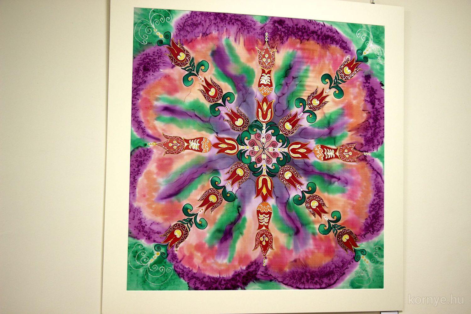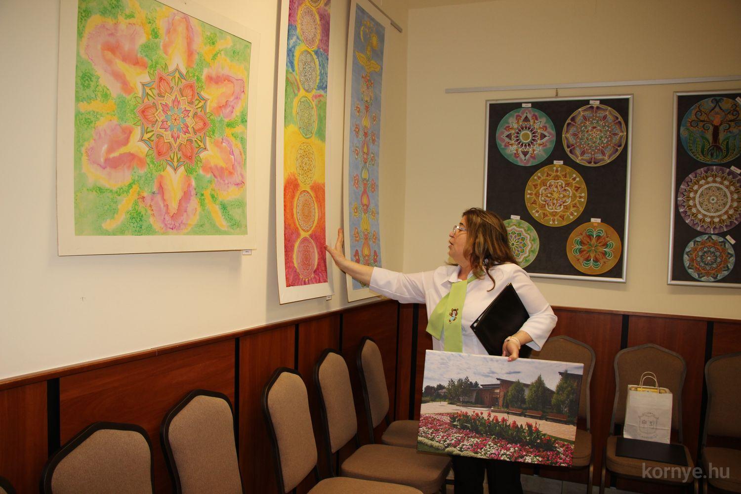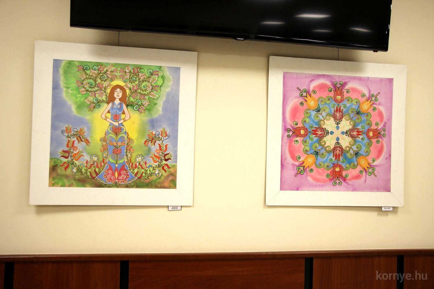 Lélekgyógyász és selyemfestő. Ez sok mindent elárul. A gyógyító és művészeti tevékenységet is, ami a selyemfestéseknek a megalkotása, legyen szó mandaláról, vagy képekről, amelyek valamit levetítenek, megjelenítenek, árasztanak az emberek felé. Ezekben gyógyító kódok vannak, de hogyan jut el odáig egy ember, hogy ilyeneket készítsen? – tette fel a kérdést az alkotásokat ajánló Szokolai Tibor, majd a választ így osztotta meg a jelenlévőkkel: a Kedvesemnek az 1990-es évek elején volt egy műtéti beavatkozást követő halál közeli élménye, amely során olyan szeretetet, olyan békét, olyan harmóniát tapasztalt meg, amit nem lehet szavakkal kifejezni. Akkor indult el ez a lélek állapotváltozás. Mindig is nagyon jó volt a kézügyessége, korábban mesterfodrászként versenyeket nyert, és elindult egy úton, a fény kiárasztásának az útján. Sokat képezte magát, reiki és agykontroll, angyal tanfolyamokat végzett, táltos iskolába járt, mindezeket azért, hogy a szívét, a lelkét felkészítve még magasabb tudással, még nagyobb alázattal és szeretettel áraszthassa a fényt, Isten fényét. Ezek az alkotások, amelyek 2012-től születtek, az egyediségük, a színviláguk, az ősképek, az őskódok által olyan erővel bírnak, amit szavakkal nem lehet kifejezni, de ha odaáll az ember egy kép elé, akkor megszólítja őt, és áthatja a szívét, a lelkét.
