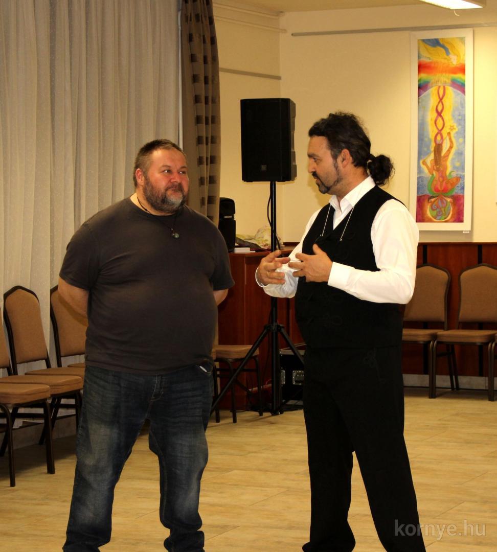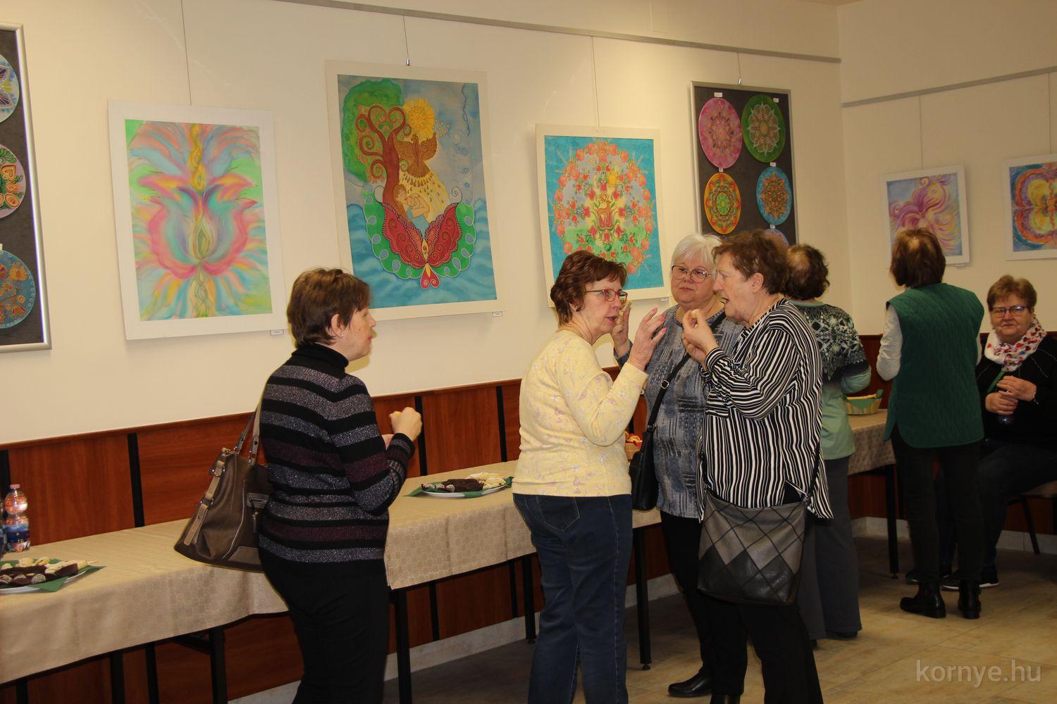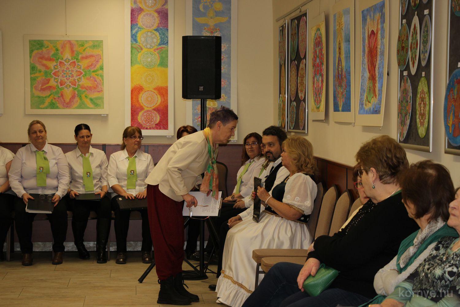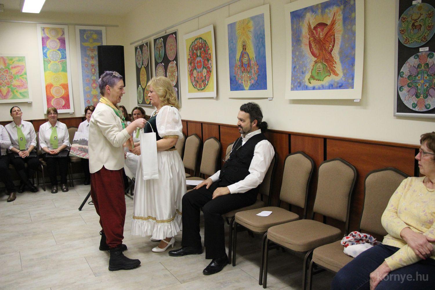 Lélekgyógyász és selyemfestő. Ez sok mindent elárul. A gyógyító és művészeti tevékenységet is, ami a selyemfestéseknek a megalkotása, legyen szó mandaláról, vagy képekről, amelyek valamit levetítenek, megjelenítenek, árasztanak az emberek felé. Ezekben gyógyító kódok vannak, de hogyan jut el odáig egy ember, hogy ilyeneket készítsen? – tette fel a kérdést az alkotásokat ajánló Szokolai Tibor, majd a választ így osztotta meg a jelenlévőkkel: a Kedvesemnek az 1990-es évek elején volt egy műtéti beavatkozást követő halál közeli élménye, amely során olyan szeretetet, olyan békét, olyan harmóniát tapasztalt meg, amit nem lehet szavakkal kifejezni. Akkor indult el ez a lélek állapotváltozás. Mindig is nagyon jó volt a kézügyessége, korábban mesterfodrászként versenyeket nyert, és elindult egy úton, a fény kiárasztásának az útján. Sokat képezte magát, reiki és agykontroll, angyal tanfolyamokat végzett, táltos iskolába járt, mindezeket azért, hogy a szívét, a lelkét felkészítve még magasabb tudással, még nagyobb alázattal és szeretettel áraszthassa a fényt, Isten fényét. Ezek az alkotások, amelyek 2012-től születtek, az egyediségük, a színviláguk, az ősképek, az őskódok által olyan erővel bírnak, amit szavakkal nem lehet kifejezni, de ha odaáll az ember egy kép elé, akkor megszólítja őt, és áthatja a szívét, a lelkét.