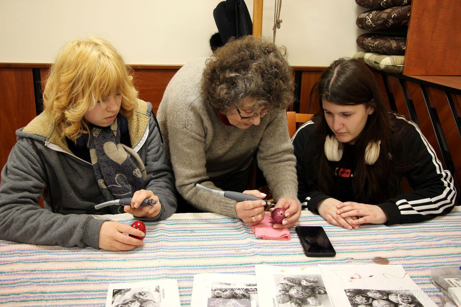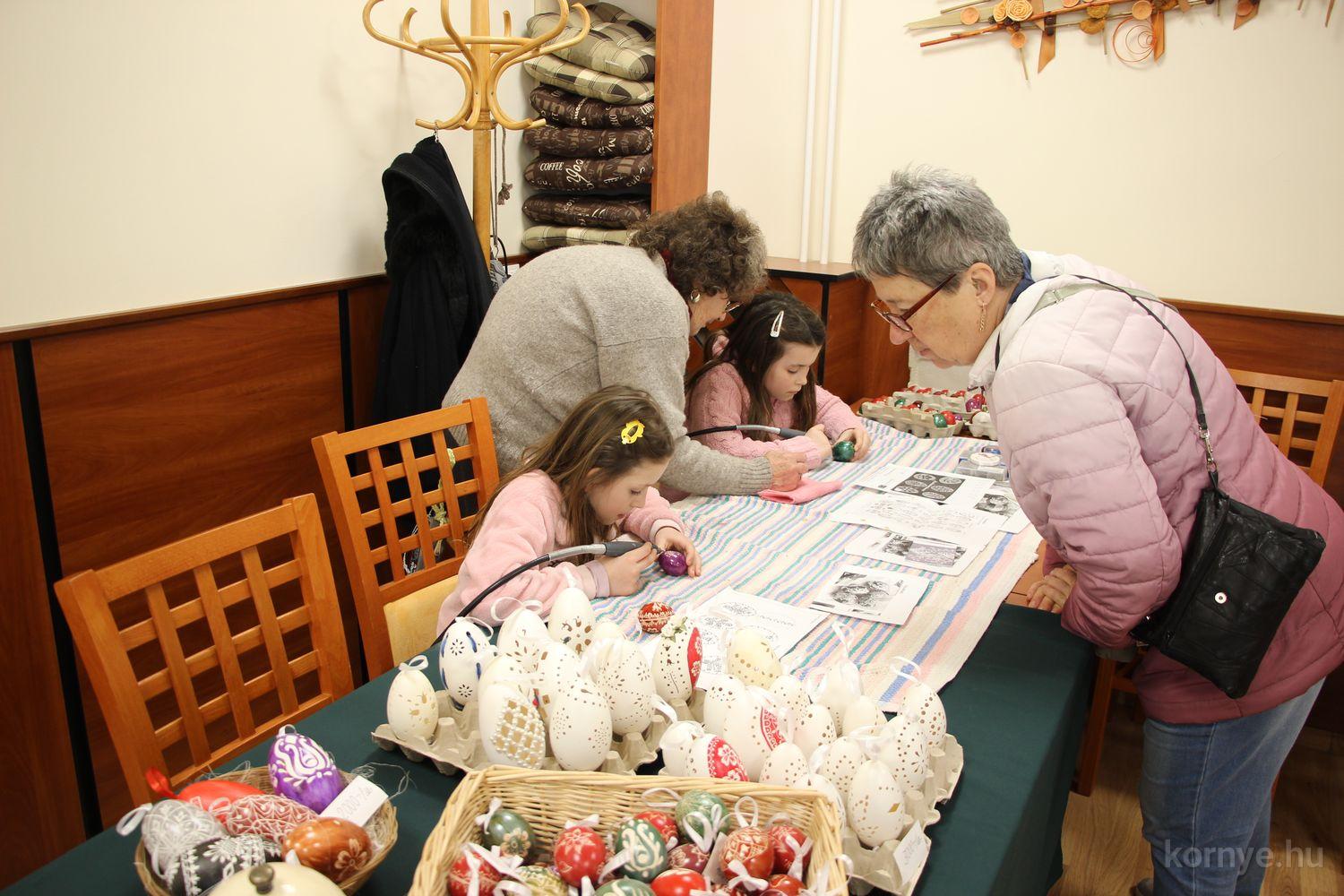 Mindeközben Földesné Bálint Ilona Népi kézművesnél, a rendezvény visszatérő vendégénél is díjtalanul gravírozhatták a színezett tyúktojásokat a gyerekek, felnőttek, és falatozhattak a „Süssünk, főzzünk valamit!” Klub finomságaiból.