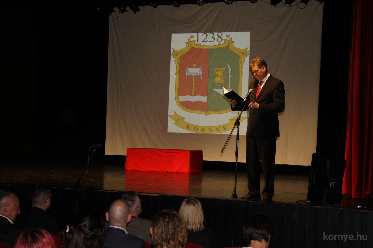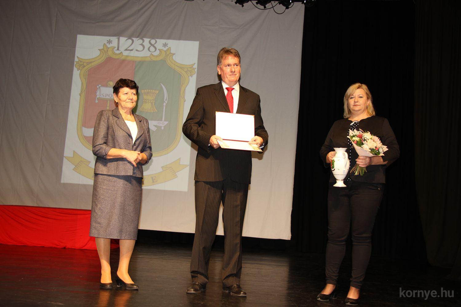 Az ünnepségen rendhagyó módon díjátadásra is sor került, mivel az augusztus 20-ai ünnepségen egyéb elfoglaltsága miatt nem lehetett jelen, és nem vehette át a számára megítélt díjat Dr. Tar Edit, községünk ismert, megbecsült polgára, aki számtalan mozgásszervi problémával küszködő környeinek is segített az eltelt 35 év alatt, és nyugdíjasként is aktívan folytatja a gyógyító munkát. Környe Község Önkormányzata a község egészségügyi ellátása érdekében kifejtett magas színvonalú munkájának elismeréseként Dr. Tar Editnek a „Közegészségügyi díjat” adományozta, az elismerést Beke László polgármester és Tirhold Kármen alpolgármester adta át.
