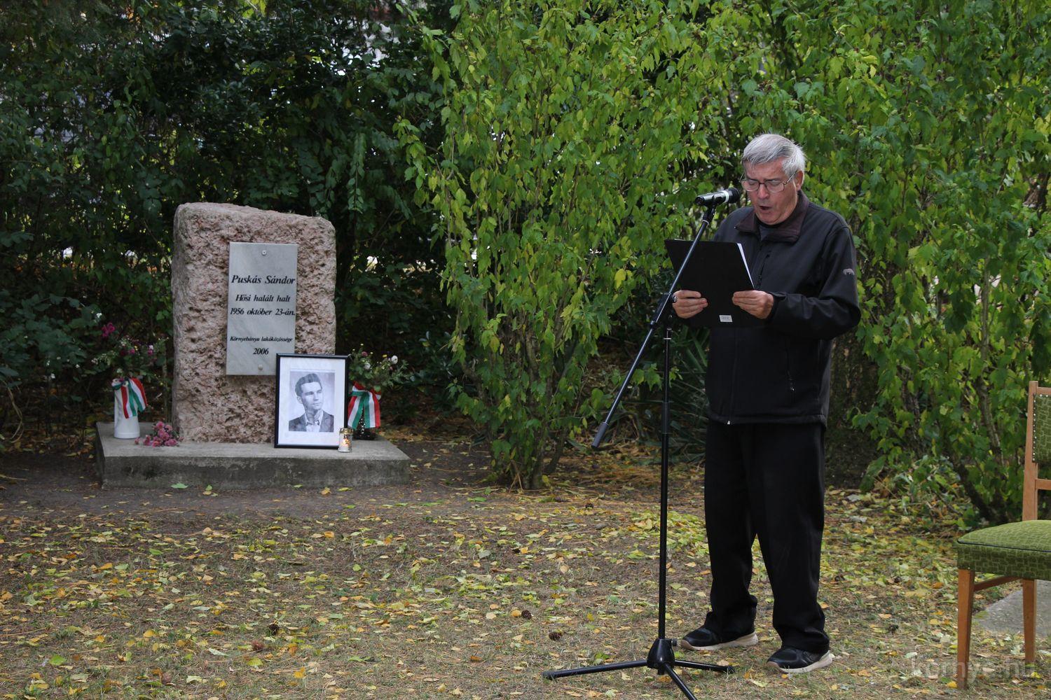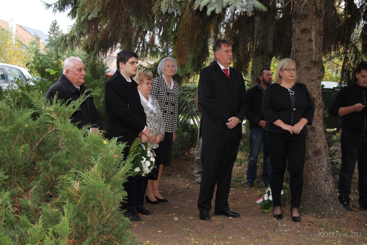 A Környei Magyar Dalkör tagjai Bozó Kucskár Anikó felkészítésében citeramuzsikával, énekekkel, Domina József szavalatával tisztelgett 1956 hősei előtt, Bolemányi Magdolna a 22 évesen elhunyt fiatalember alakját idézte fel, majd az emlékezők az emlékműnél helyezték el a kegyelet virágait, mécseseit.
