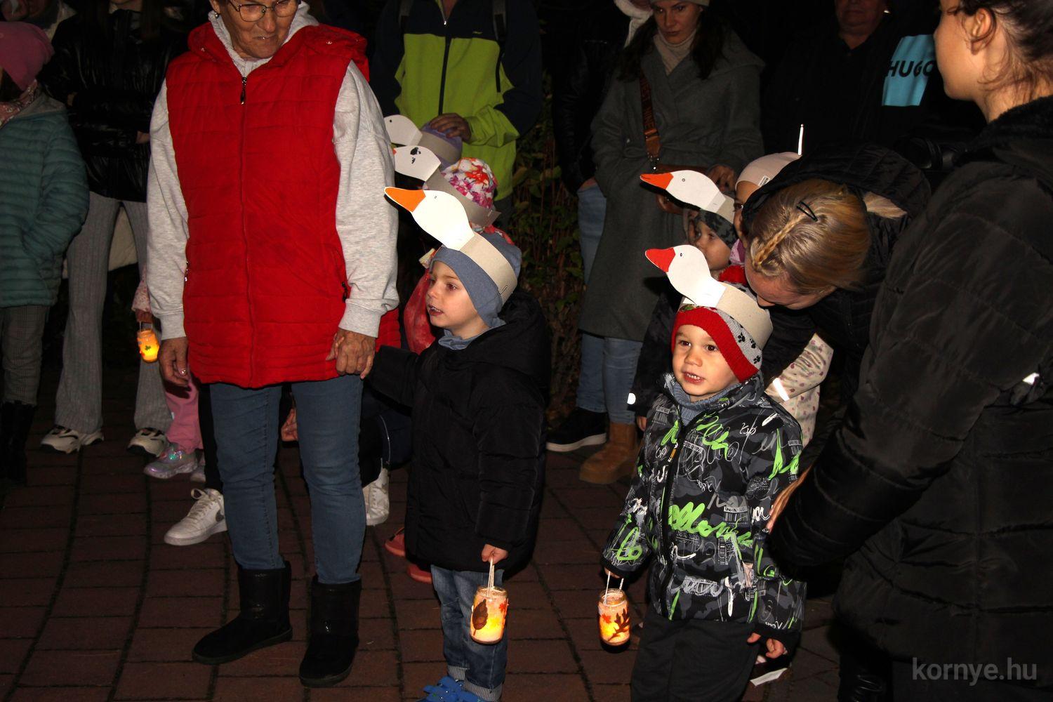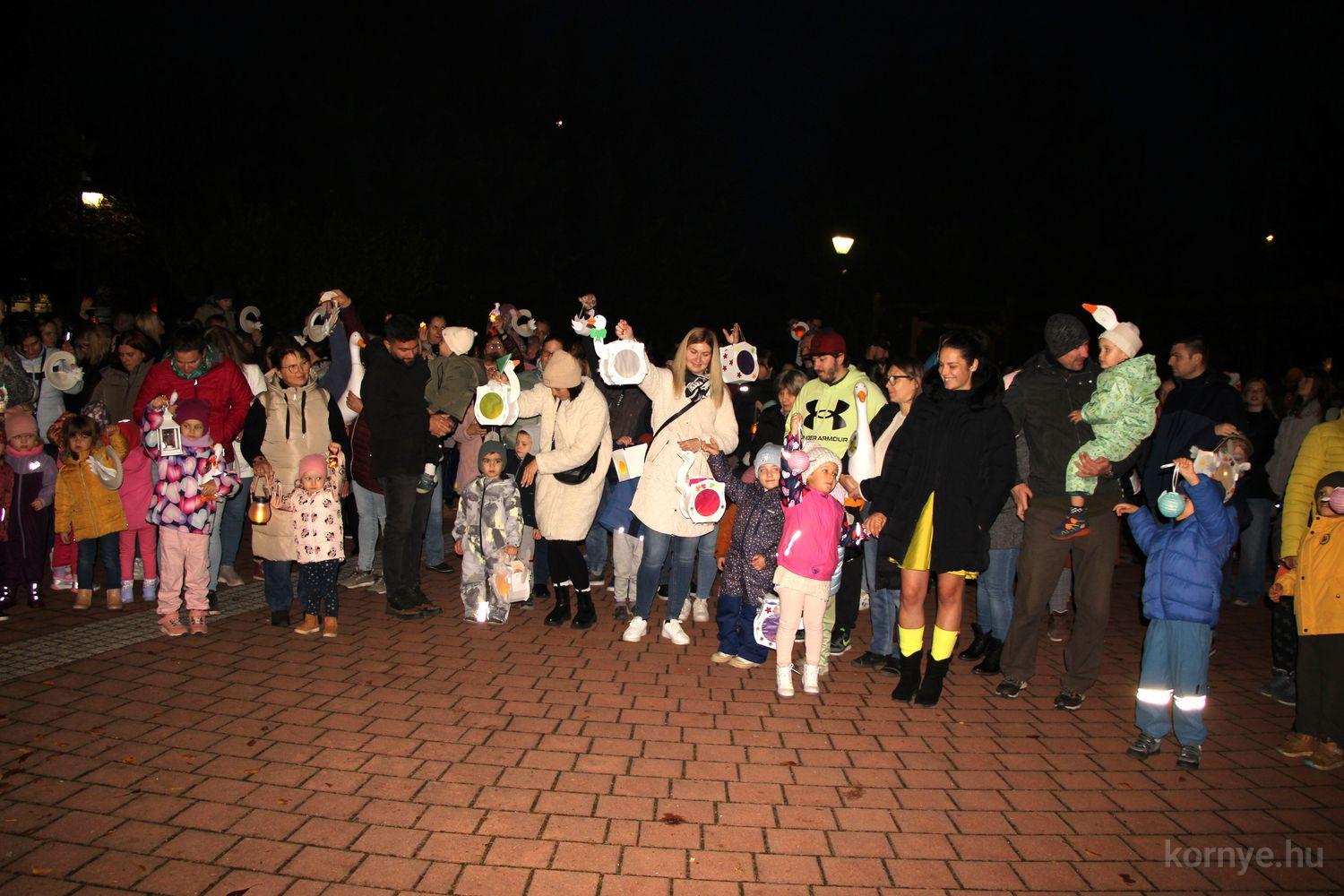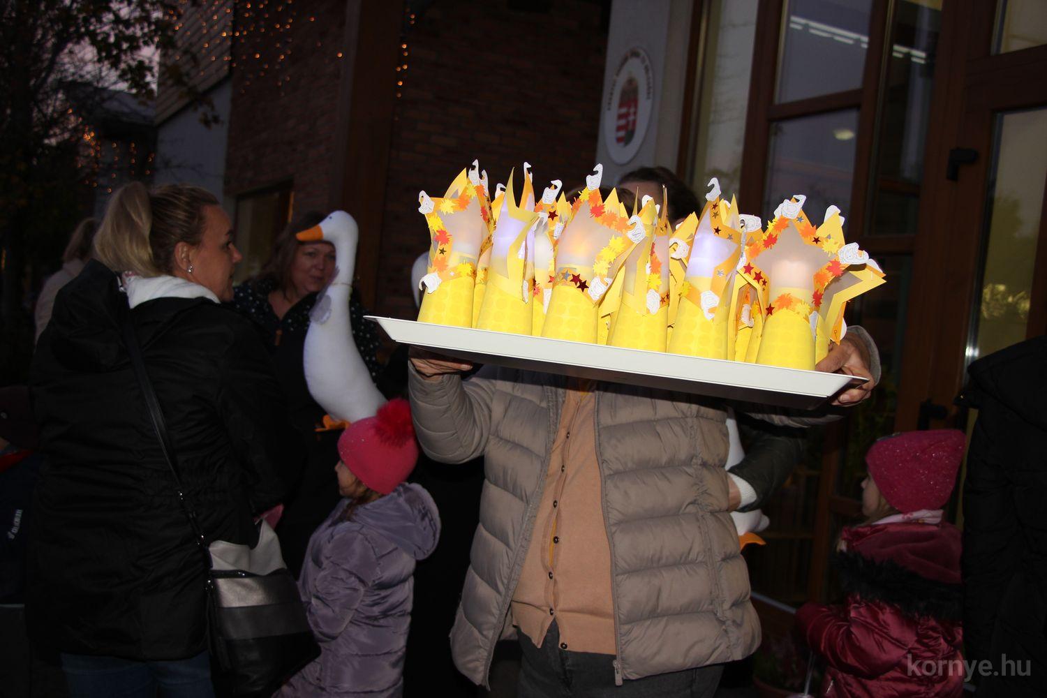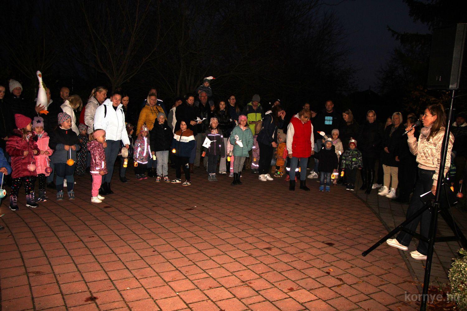 A rendezvény záró programjaként érkezett el november 11-e, amikor a csoportok gyermekei, anyukák, apukák, testvérek, nagyszülők, dalcsokrokkal, mondókákkal és a szebbnél-szebb lámpácskákkal indultak el a térre a szeretet lángjaival, ahol több száz fénypont jelezte a hatalmas érdeklődést, a közös együttlét örömét. A téren Troll Kriszti óvónéni mesélte el Márton legendáját, aki egy jóságos katonából lett püspökké, mert a libák gágogása elárulta a hollétét az embereknek. A családokat a Márton napi népi hiedelmekkel is megismertette, hiszen ez a nap volt a téli pihenő kezdete, libalakomákkal ünnepelték. Úgy tartották, ha november 11-én száraz az idő, akkor hosszú lesz a tél, és ezen a napon nem volt szabad takarítani, mosni, teregetni, az állatok pusztulását okozni.