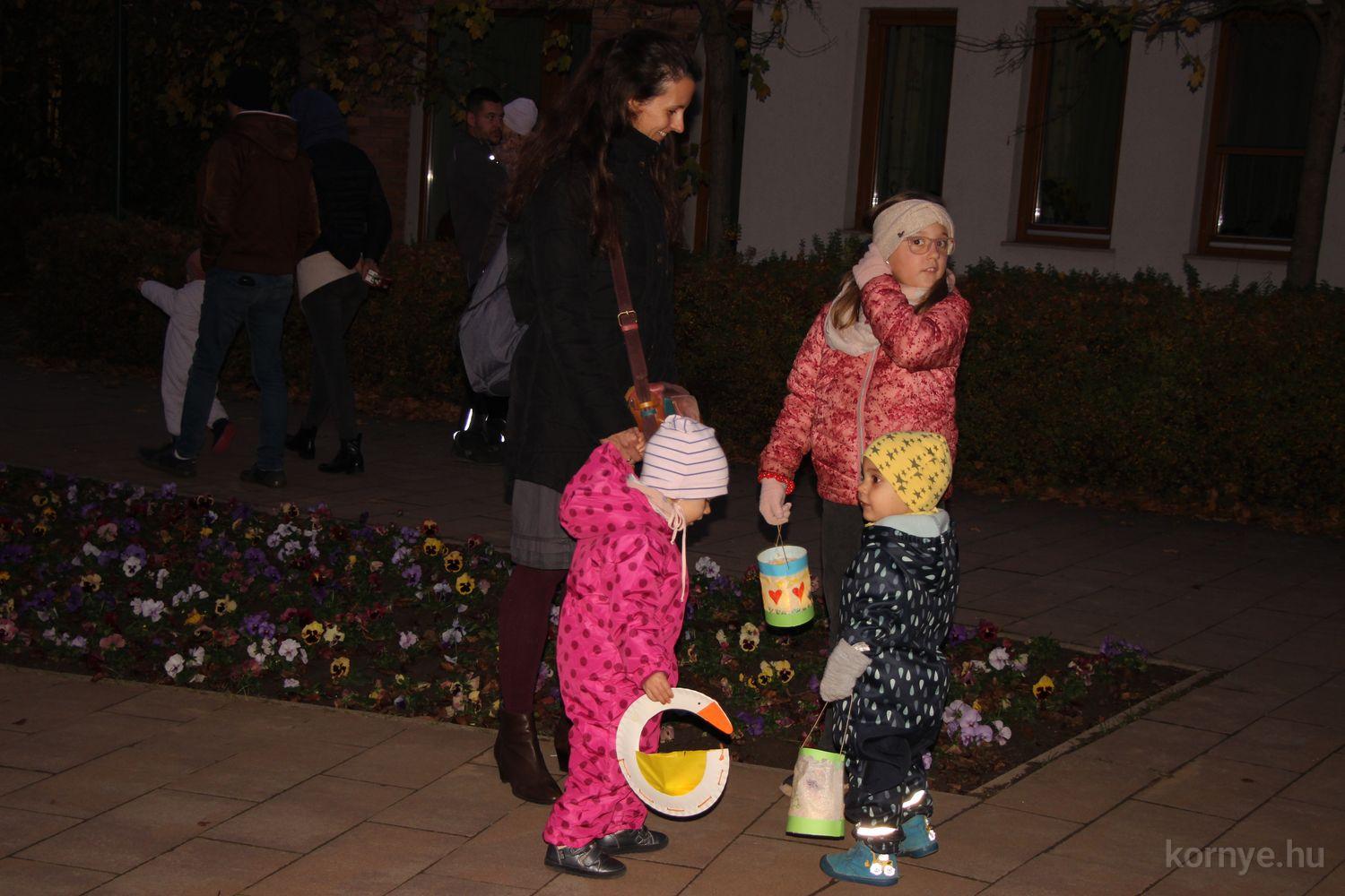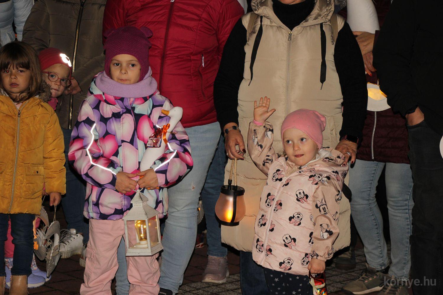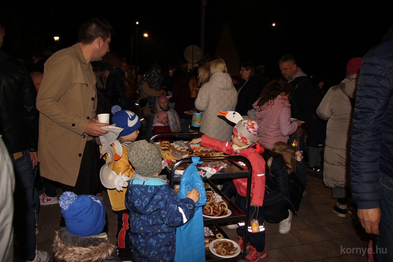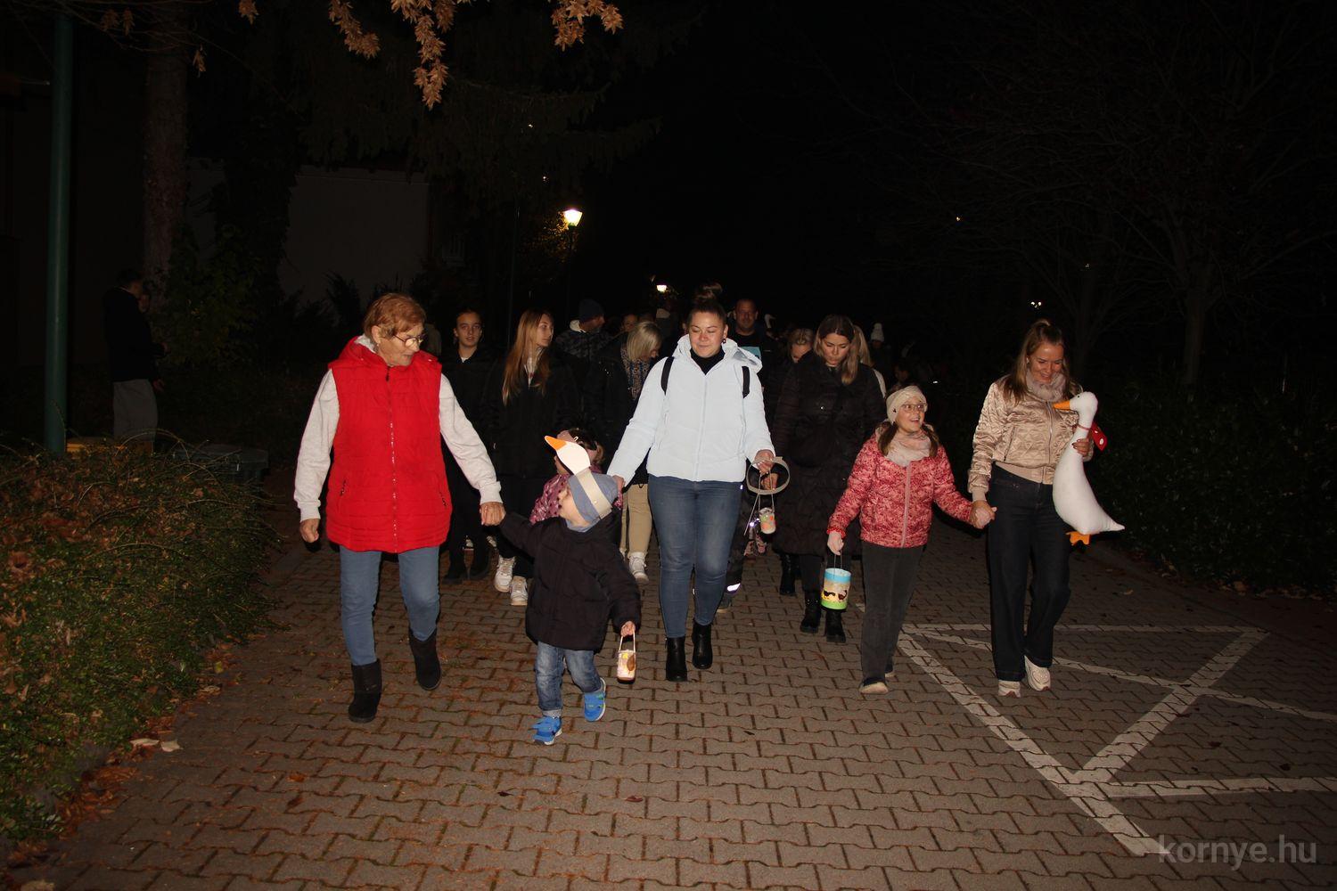 A rendezvény záró programjaként érkezett el november 11-e, amikor a csoportok gyermekei, anyukák, apukák, testvérek, nagyszülők, dalcsokrokkal, mondókákkal és a szebbnél-szebb lámpácskákkal indultak el a térre a szeretet lángjaival, ahol több száz fénypont jelezte a hatalmas érdeklődést, a közös együttlét örömét. A téren Troll Kriszti óvónéni mesélte el Márton legendáját, aki egy jóságos katonából lett püspökké, mert a libák gágogása elárulta a hollétét az embereknek. A családokat a Márton napi népi hiedelmekkel is megismertette, hiszen ez a nap volt a téli pihenő kezdete, libalakomákkal ünnepelték. Úgy tartották, ha november 11-én száraz az idő, akkor hosszú lesz a tél, és ezen a napon nem volt szabad takarítani, mosni, teregetni, az állatok pusztulását okozni.