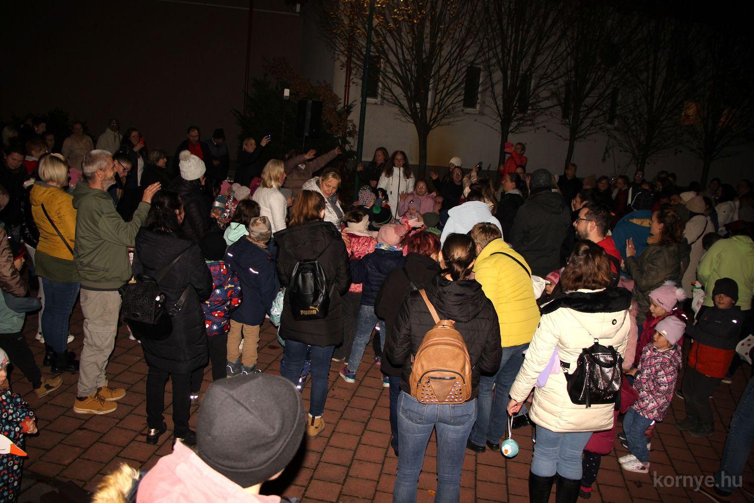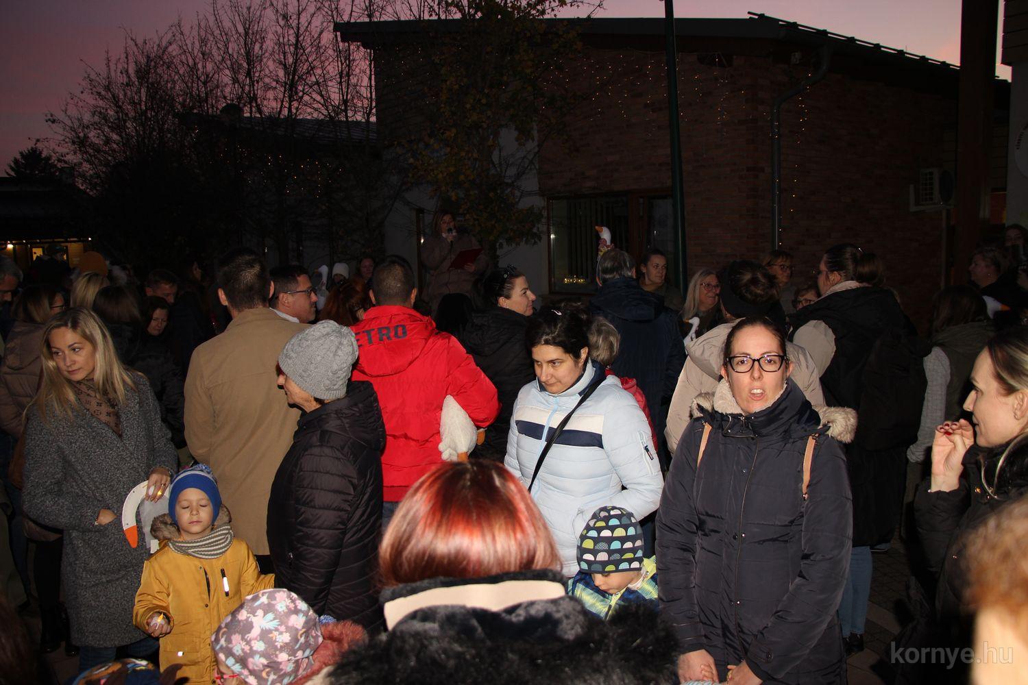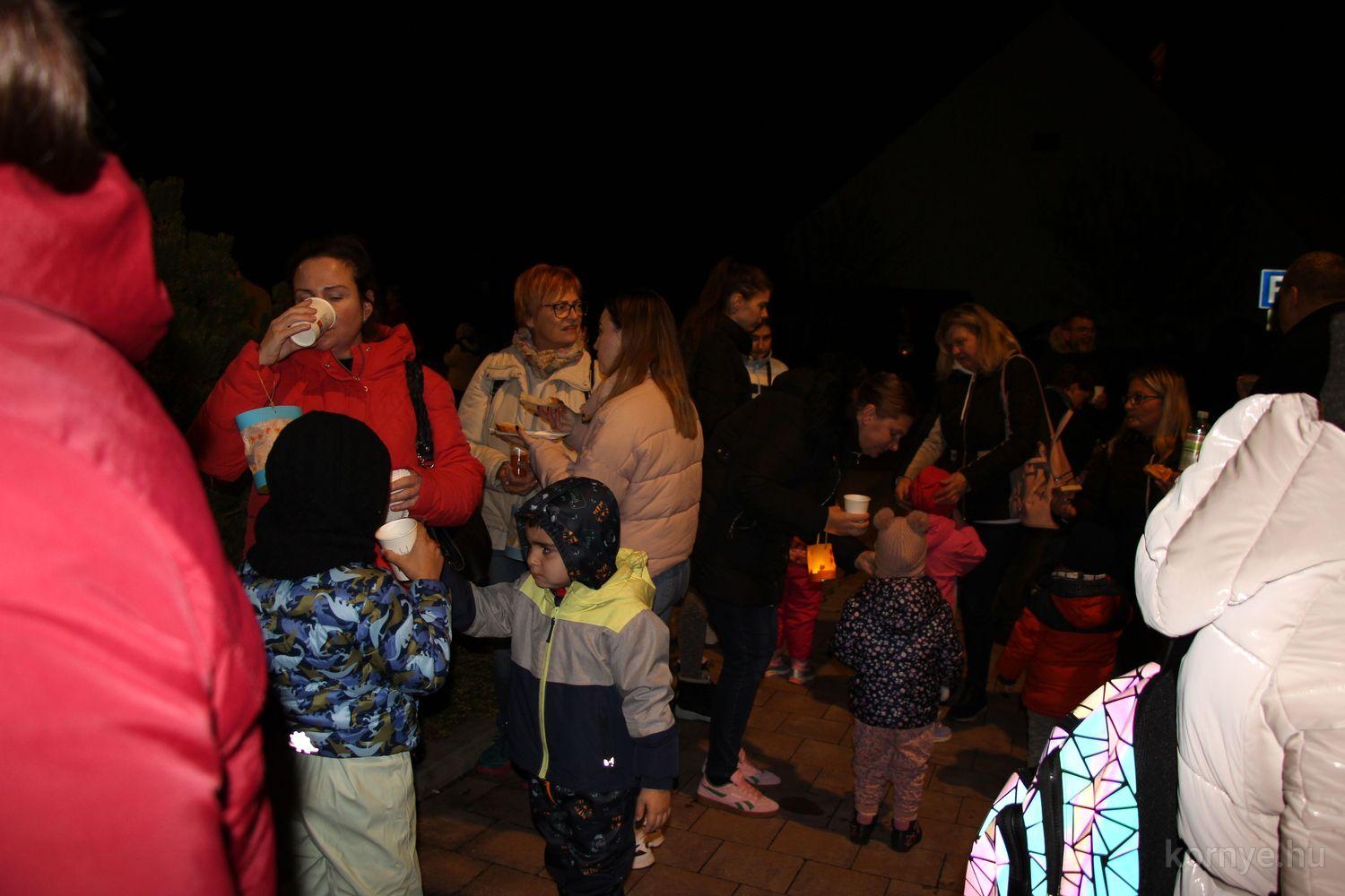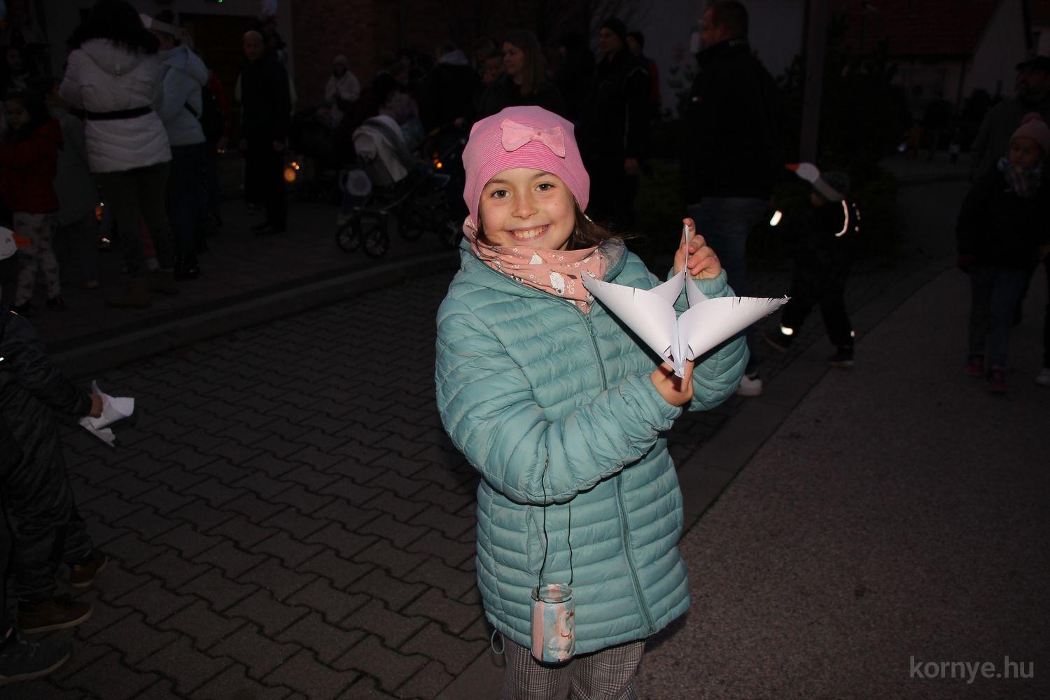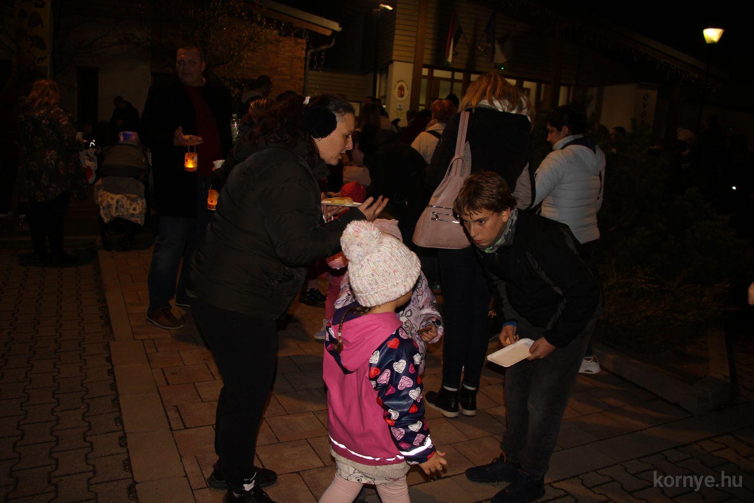 A rendezvény záró programjaként érkezett el november 11-e, amikor a csoportok gyermekei, anyukák, apukák, testvérek, nagyszülők, dalcsokrokkal, mondókákkal és a szebbnél-szebb lámpácskákkal indultak el a térre a szeretet lángjaival, ahol több száz fénypont jelezte a hatalmas érdeklődést, a közös együttlét örömét. A téren Troll Kriszti óvónéni mesélte el Márton legendáját, aki egy jóságos katonából lett püspökké, mert a libák gágogása elárulta a hollétét az embereknek. A családokat a Márton napi népi hiedelmekkel is megismertette, hiszen ez a nap volt a téli pihenő kezdete, libalakomákkal ünnepelték. Úgy tartották, ha november 11-én száraz az idő, akkor hosszú lesz a tél, és ezen a napon nem volt szabad takarítani, mosni, teregetni, az állatok pusztulását okozni.