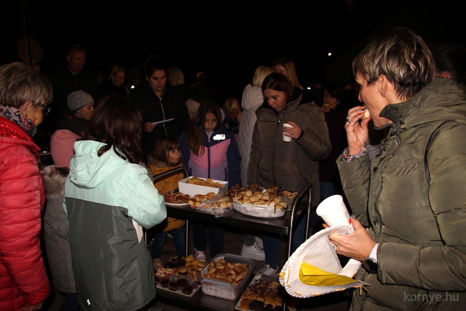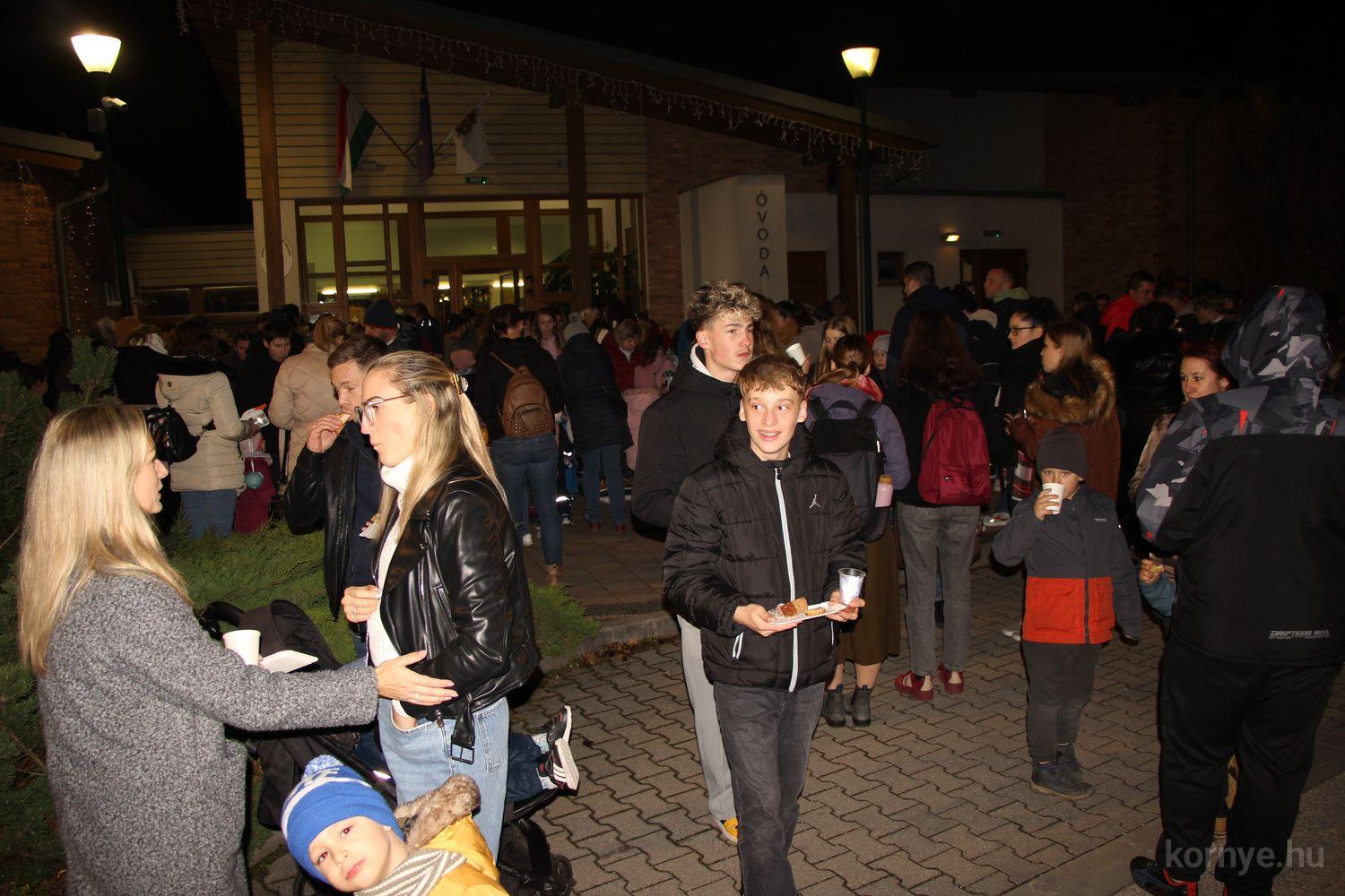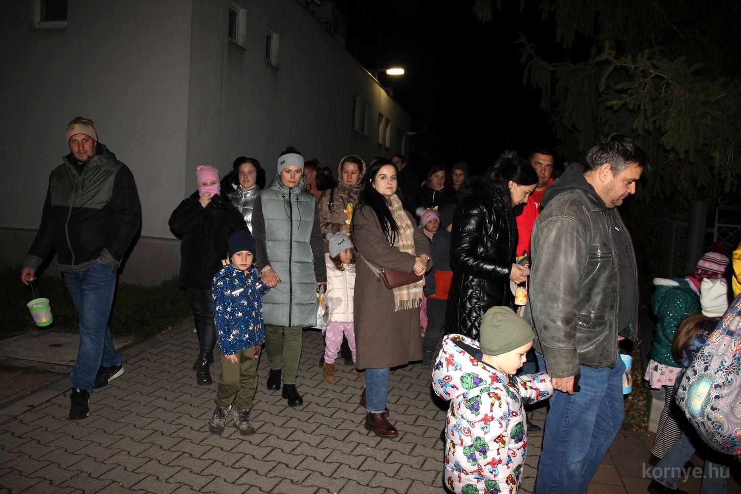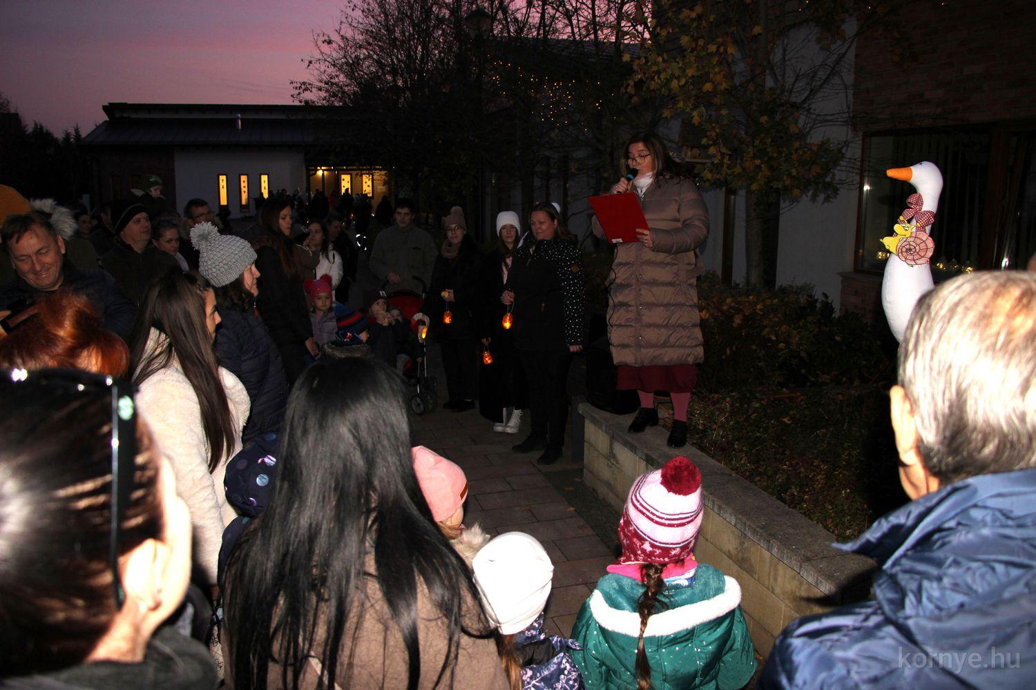 A rendezvény záró programjaként érkezett el november 11-e, amikor a csoportok gyermekei, anyukák, apukák, testvérek, nagyszülők, dalcsokrokkal, mondókákkal és a szebbnél-szebb lámpácskákkal indultak el a térre a szeretet lángjaival, ahol több száz fénypont jelezte a hatalmas érdeklődést, a közös együttlét örömét. A téren Troll Kriszti óvónéni mesélte el Márton legendáját, aki egy jóságos katonából lett püspökké, mert a libák gágogása elárulta a hollétét az embereknek. A családokat a Márton napi népi hiedelmekkel is megismertette, hiszen ez a nap volt a téli pihenő kezdete, libalakomákkal ünnepelték. Úgy tartották, ha november 11-én száraz az idő, akkor hosszú lesz a tél, és ezen a napon nem volt szabad takarítani, mosni, teregetni, az állatok pusztulását okozni.
